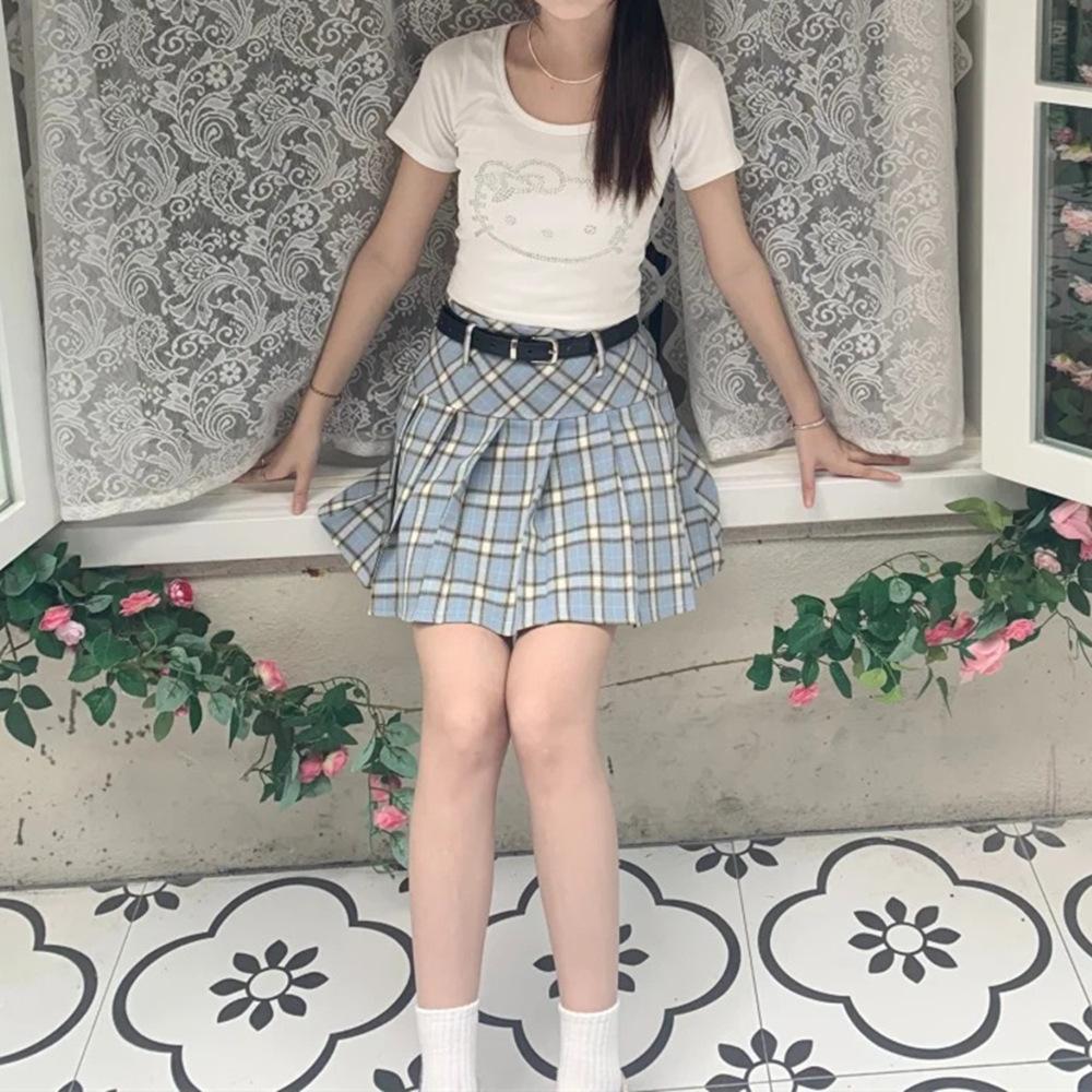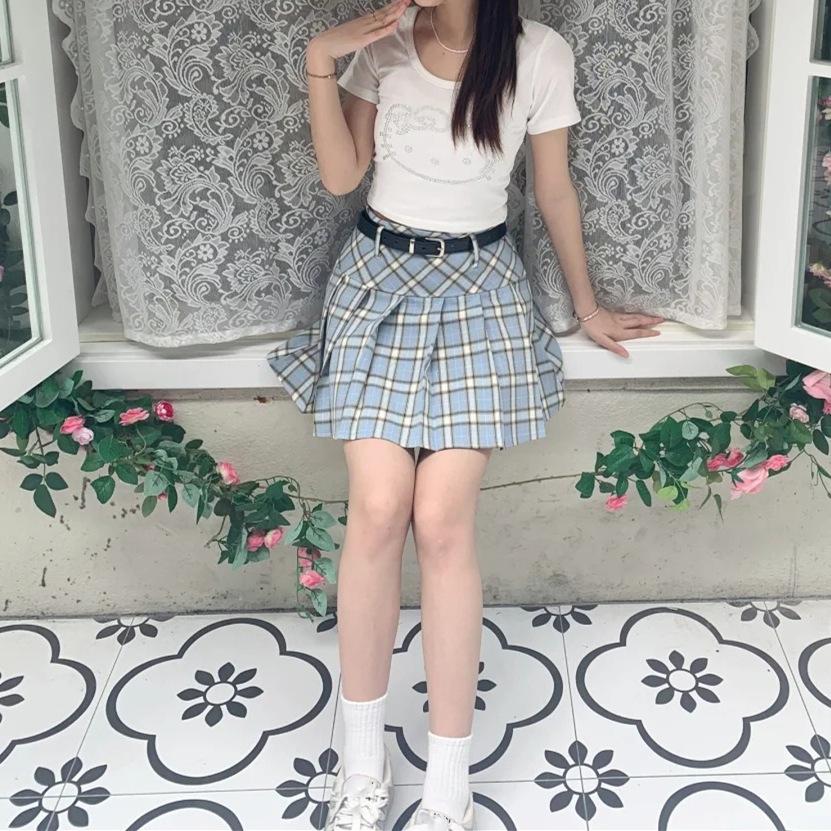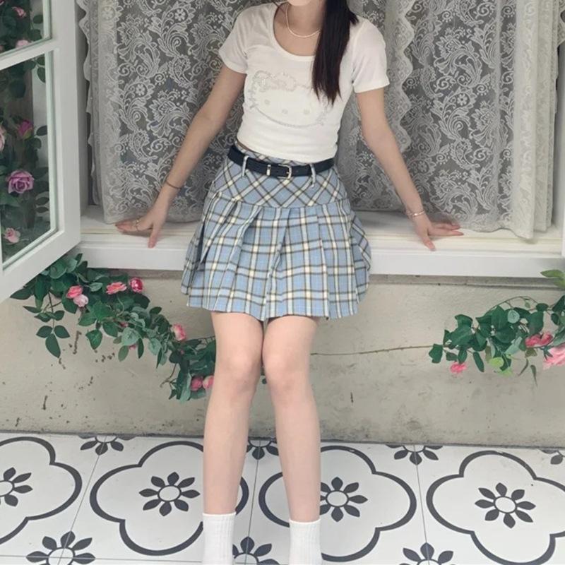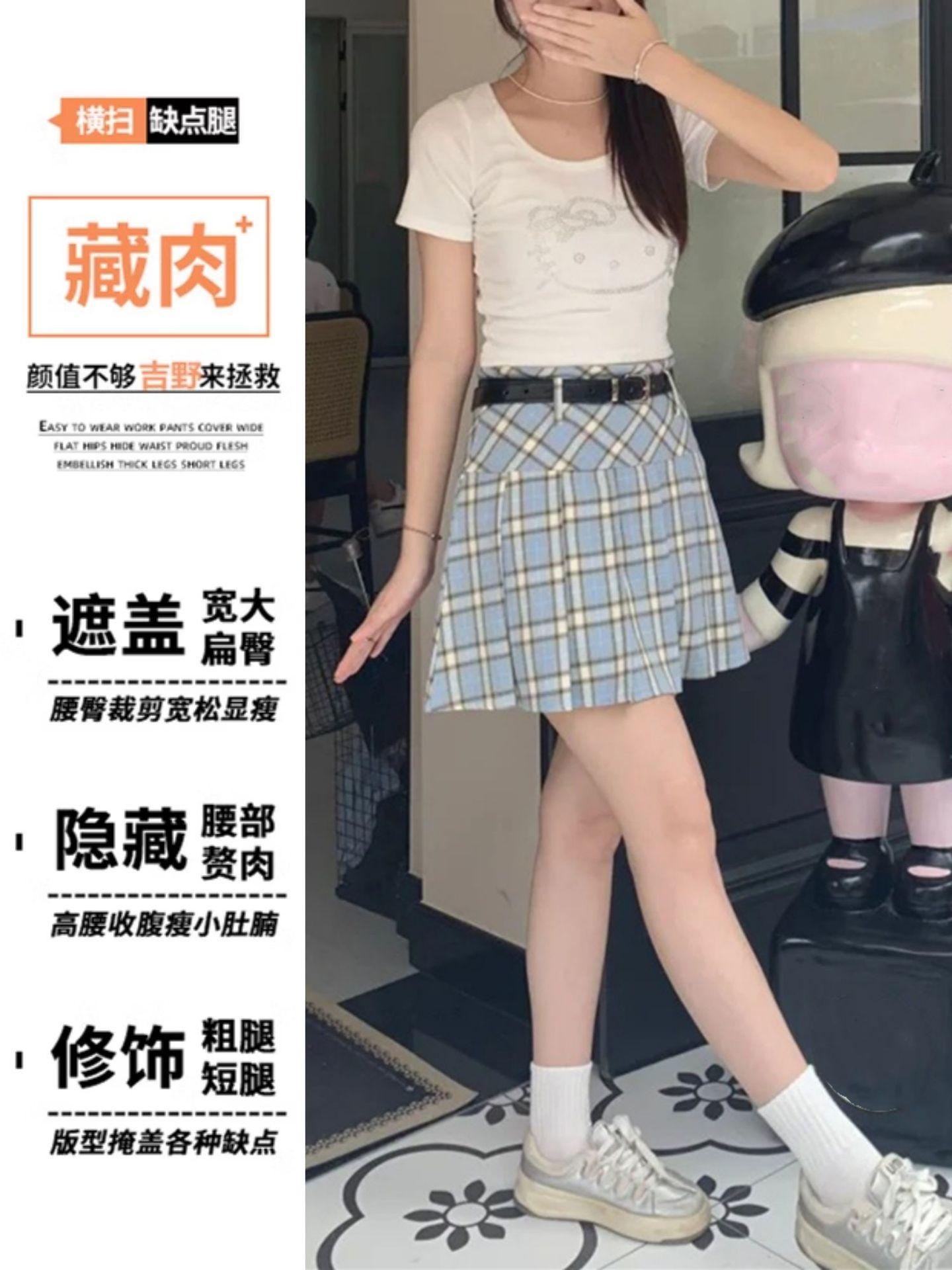Falda Azul a Cuadros Estilo Colegio Pequeño para Mujer Talla Grande Chica Gordita Falda Corta Antideslumbrante Cintura Alta Falda Plisada a Cuadros