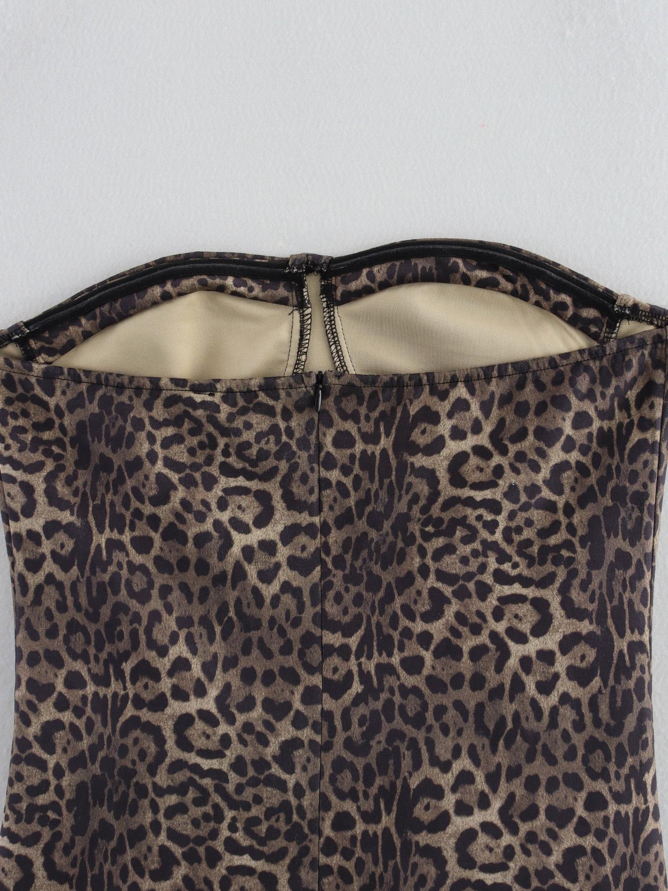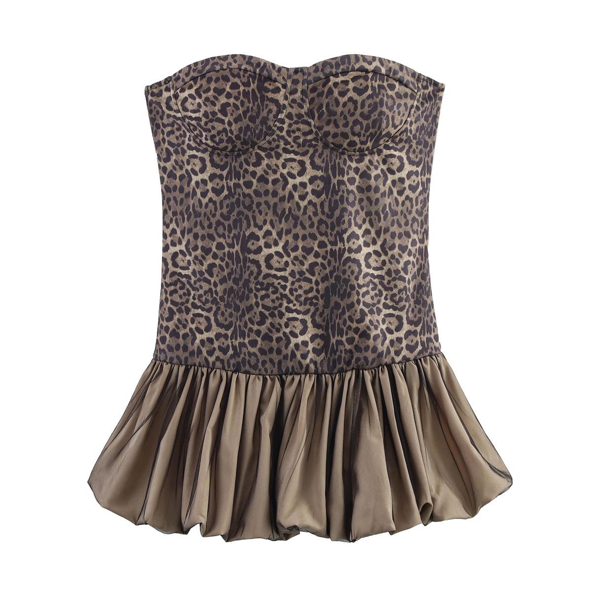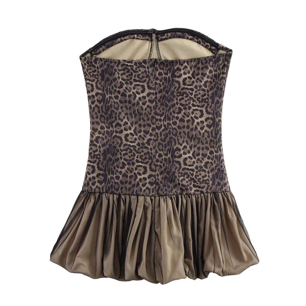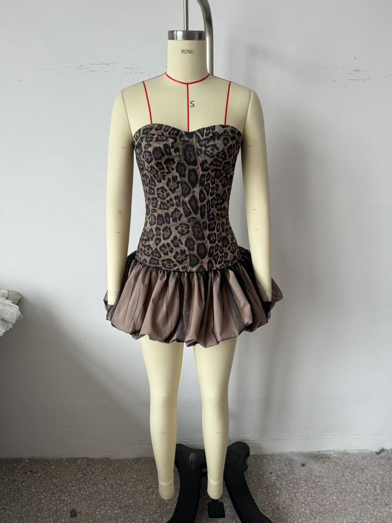 Exportación Transfronteriza Ropa de Mujer Verano 2025 Estilo Europeo y Americano Vestido de Moda Entallado a la Cintura con Estampado de Leopardo para Mujer C45087