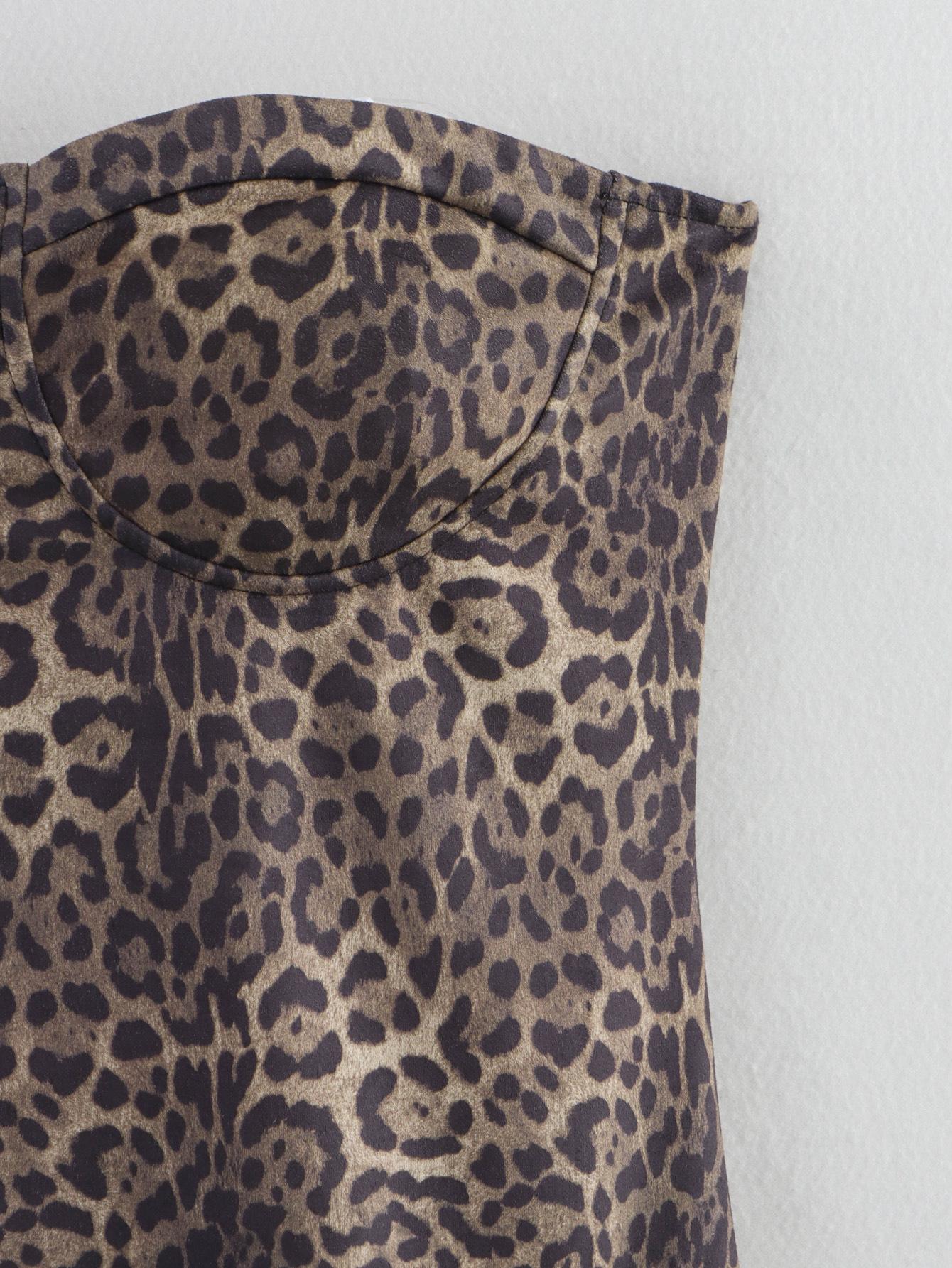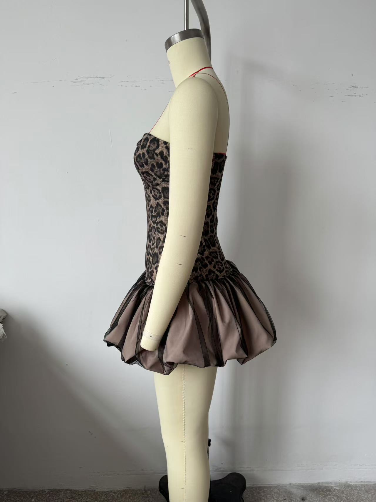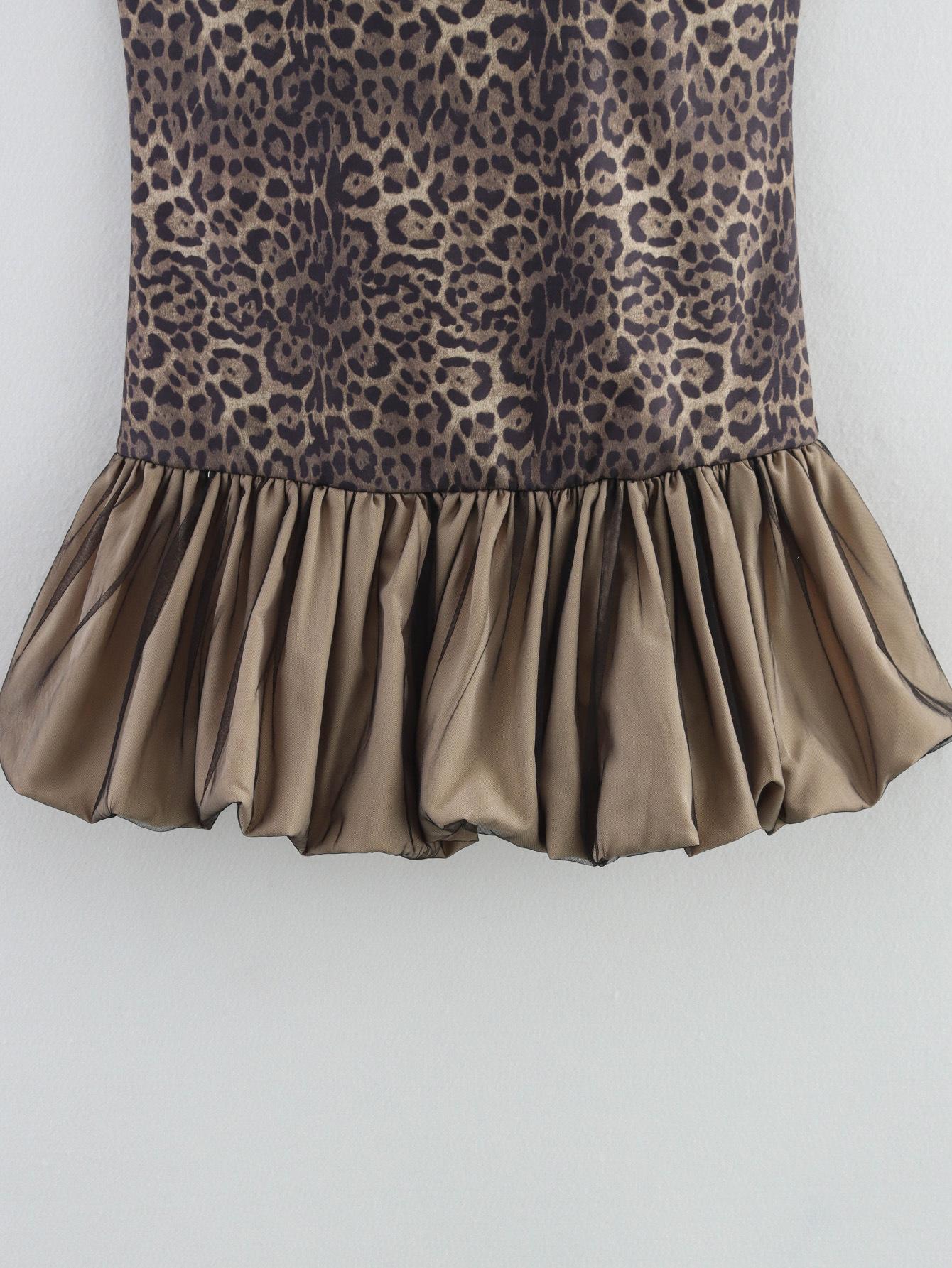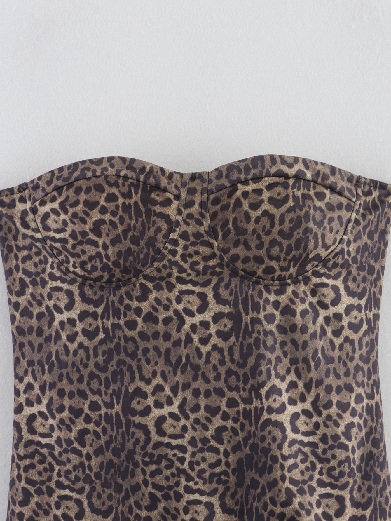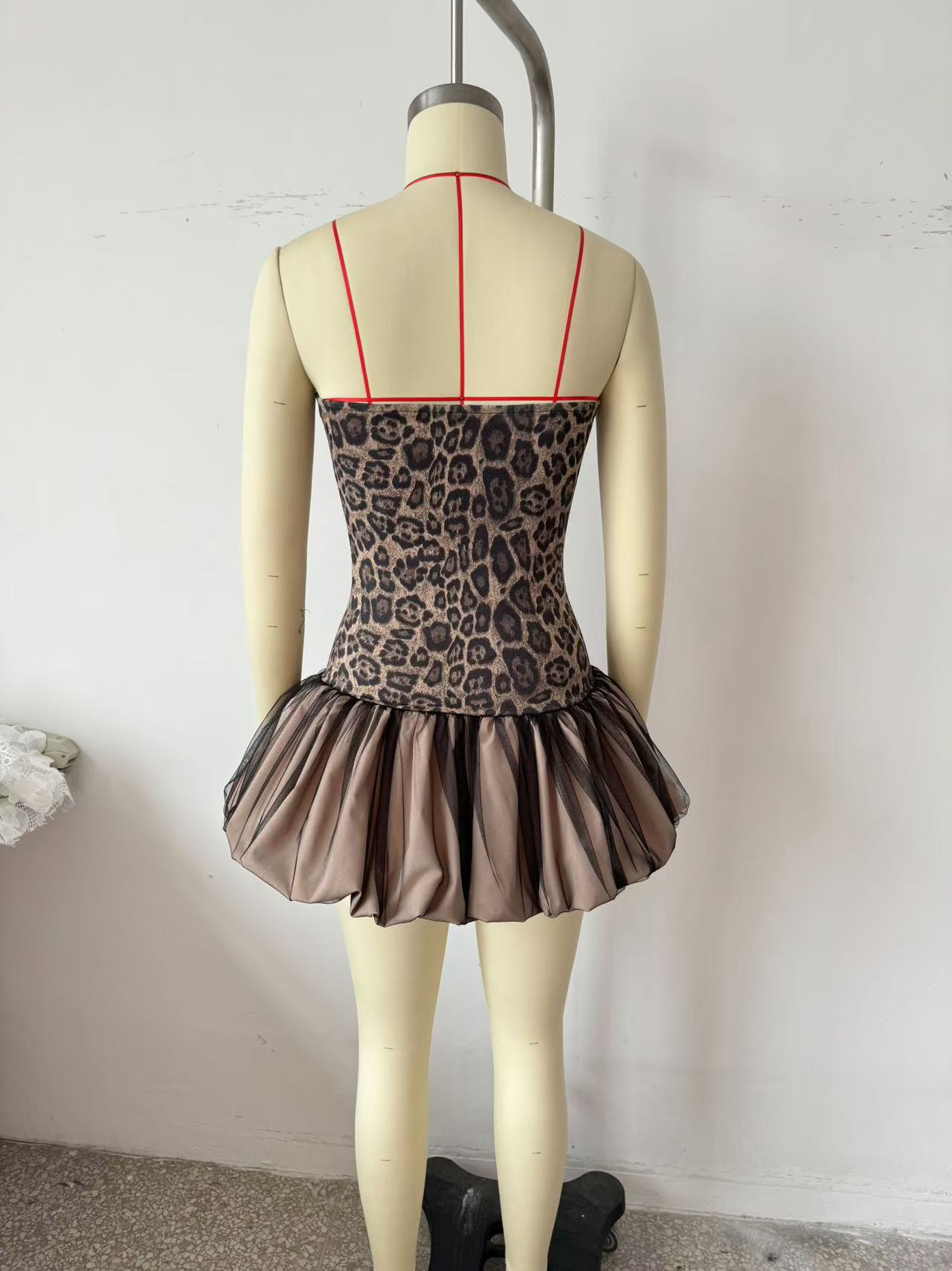 Exportación Transfronteriza Ropa de Mujer Verano 2025 Estilo Europeo y Americano Vestido de Moda Entallado a la Cintura con Estampado de Leopardo para Mujer C45087