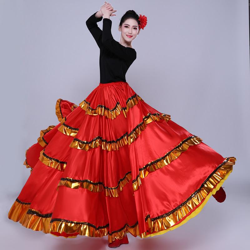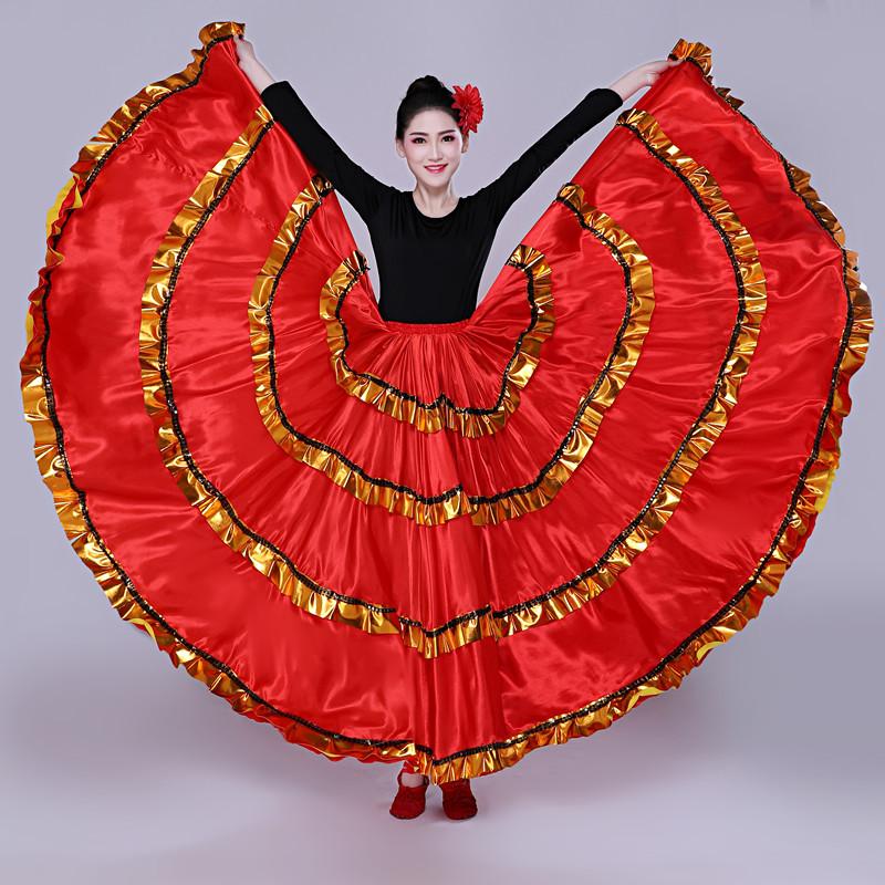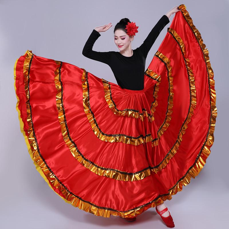 Falda Española Falda Grande de Vuelo Abertura Danza Adulto Femenino Vestido de Actuación Falda de Danza Moderna Falda de Danza de Corrida Actuación Danza