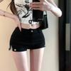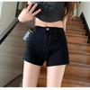 Jeans Elásticos Cintura Baja Slim Pantalones Negros Shorts Ajustados Pierna Recta Ancha Hot Pants Mujer Verano 2025 Nuevo Estilo