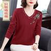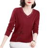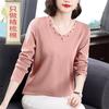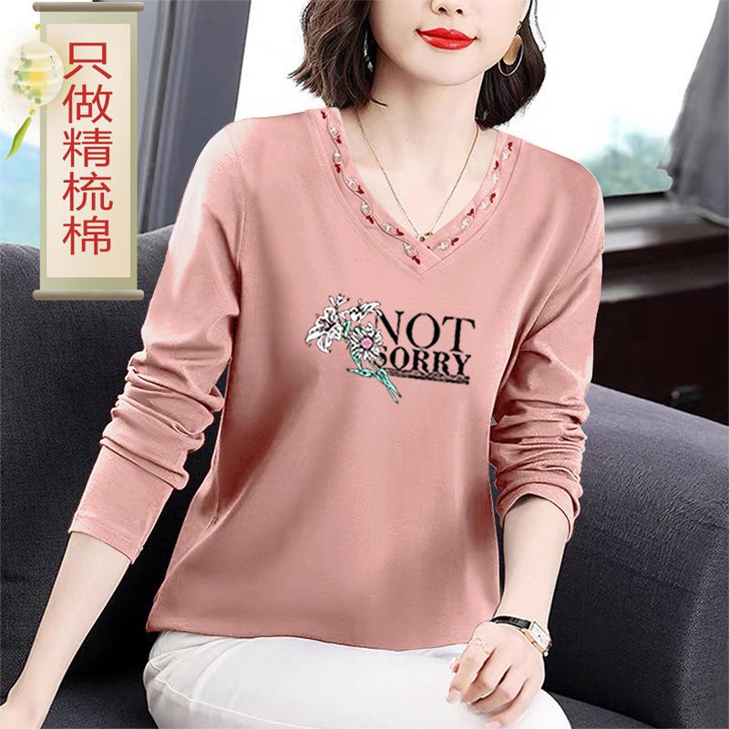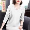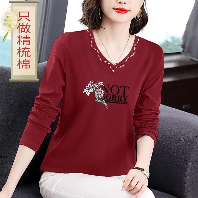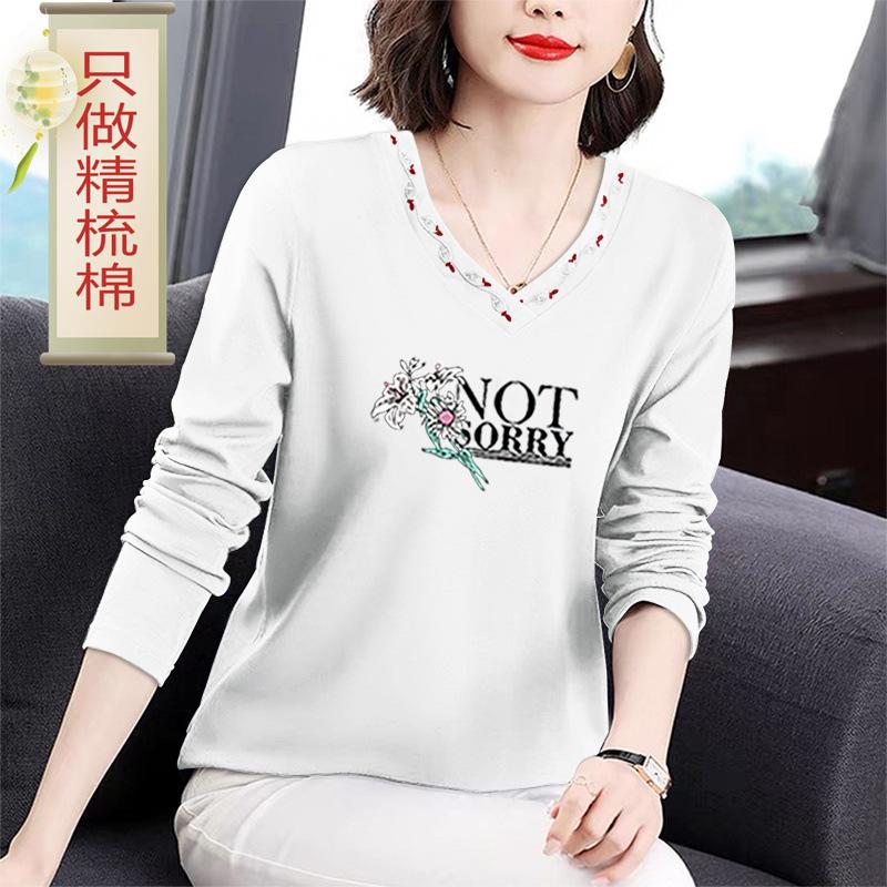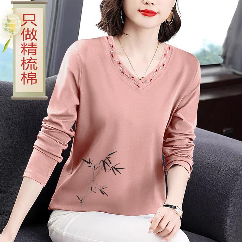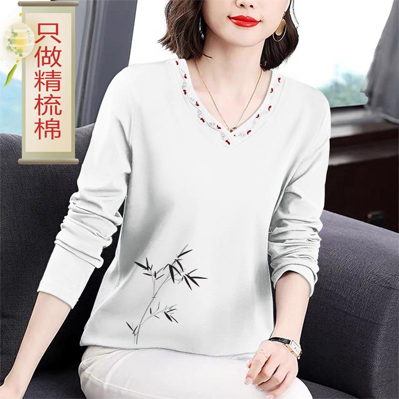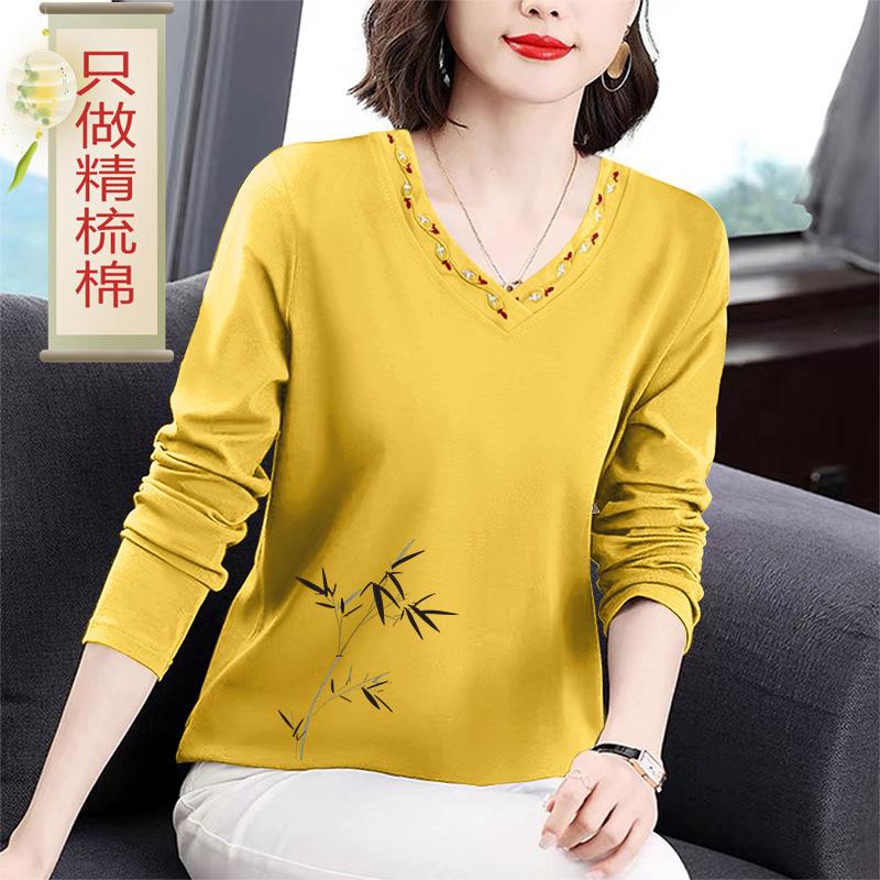Camisa de manga larga algodón ropa de mujer primavera y otoño estilo occidental decoración joven madre cuerpo algodón camisa base cuello bordado top