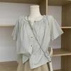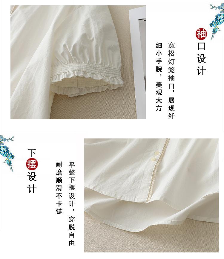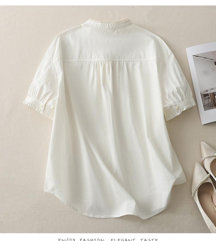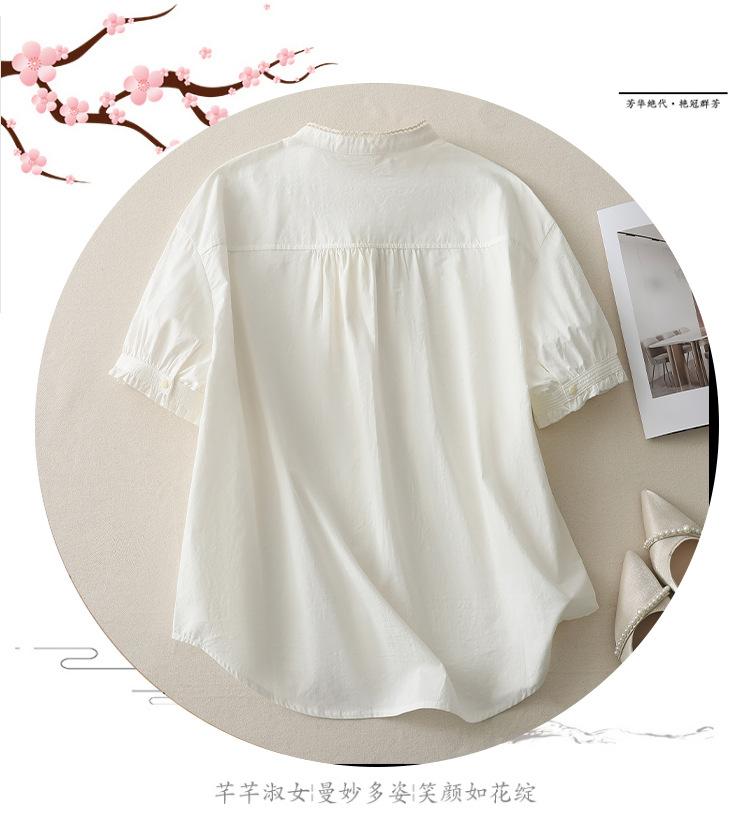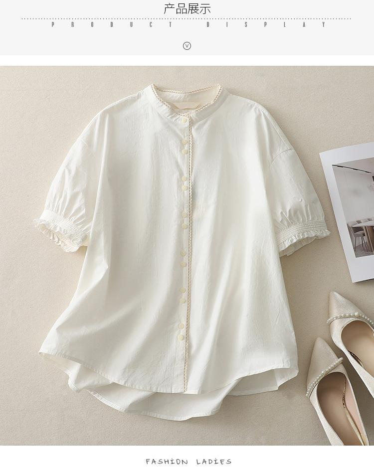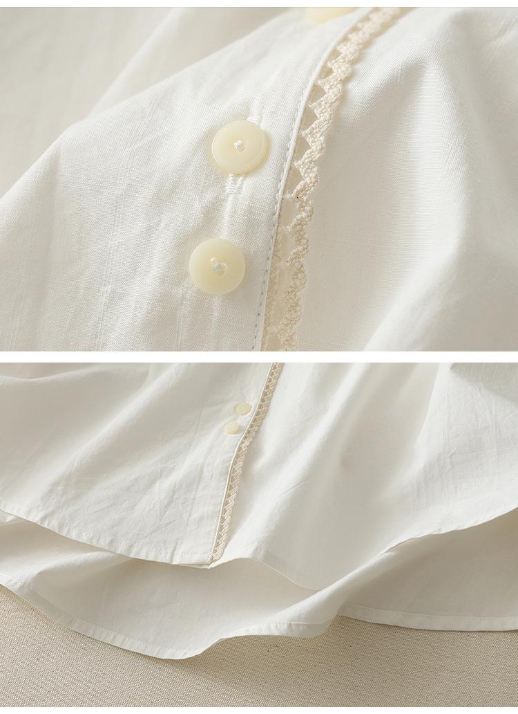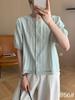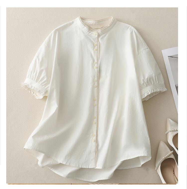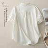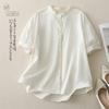 Foto Real# Camisa de Manga Corta Amarilla Fresca Estilo Japonés para Mujer Diseño de Algodón Puro Nicho con Encaje Camisa de Cuello Redondo para Verano