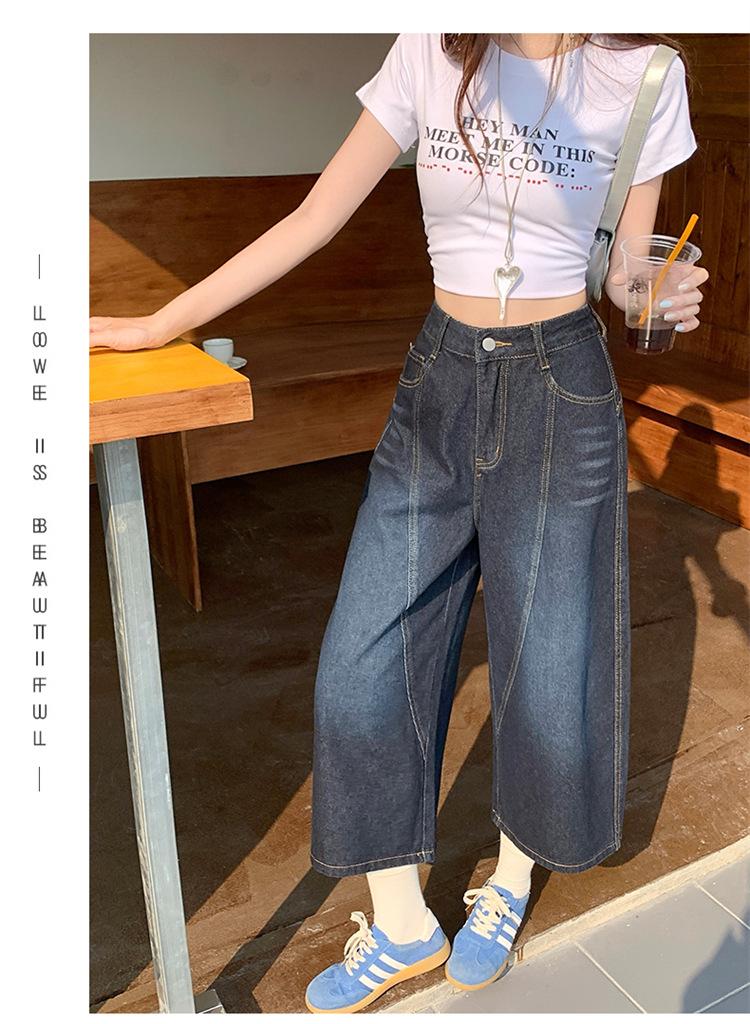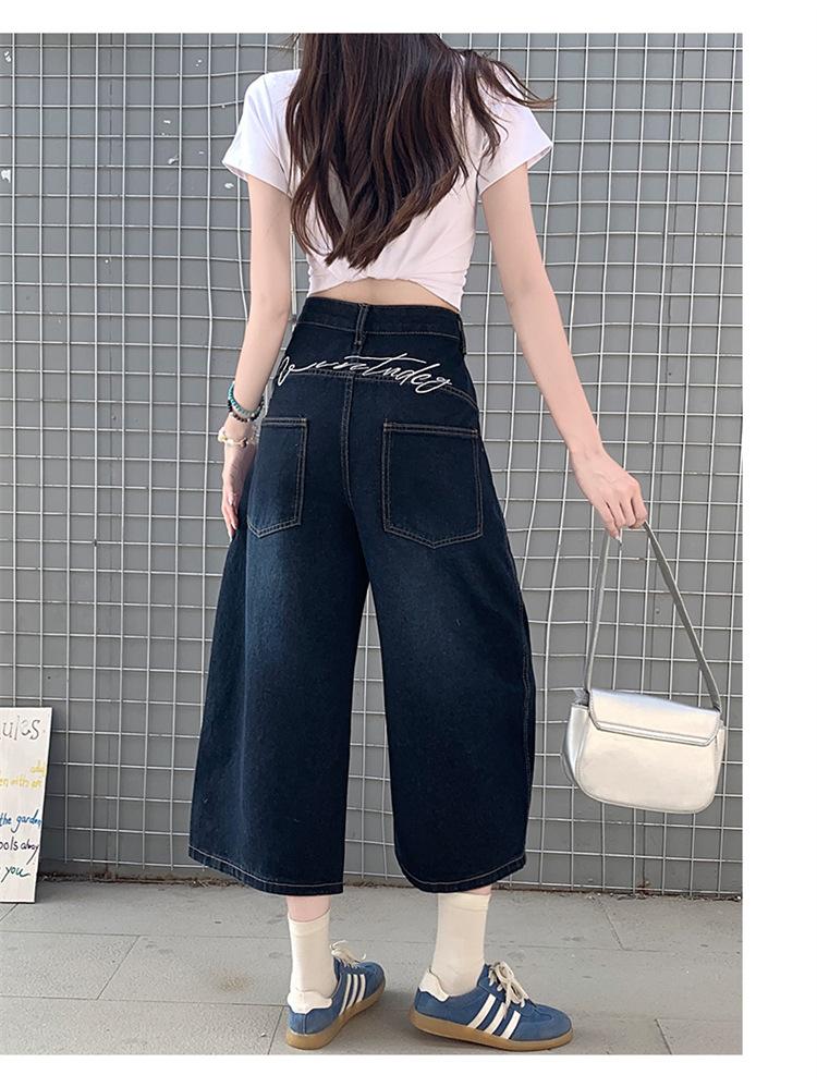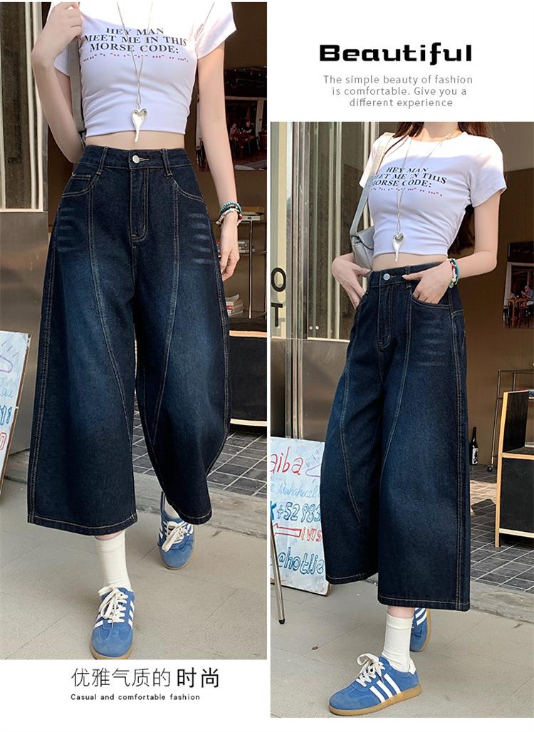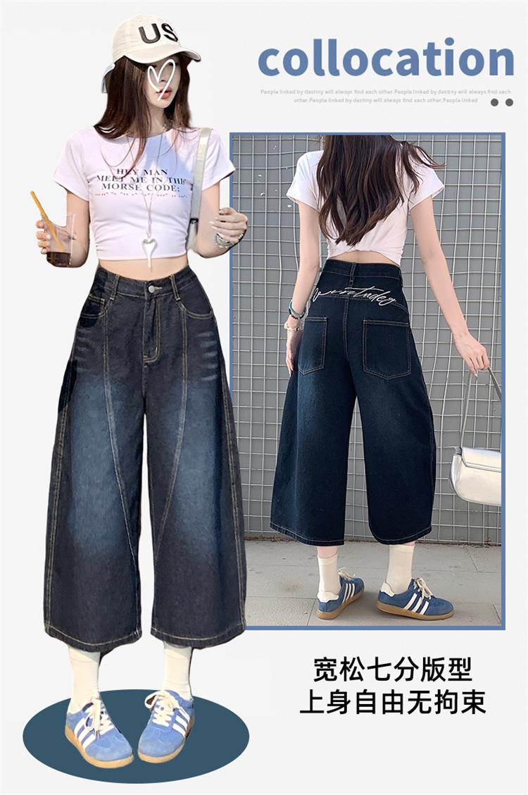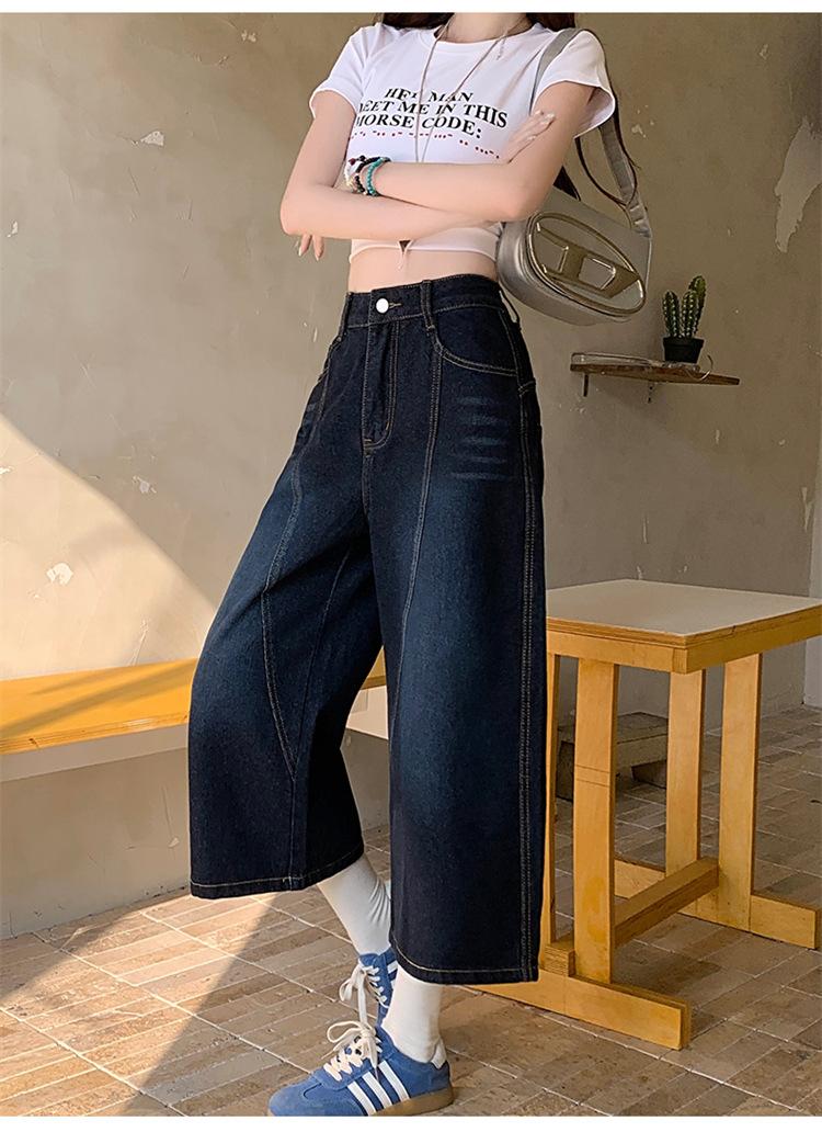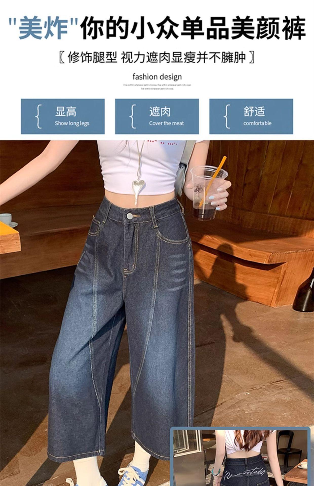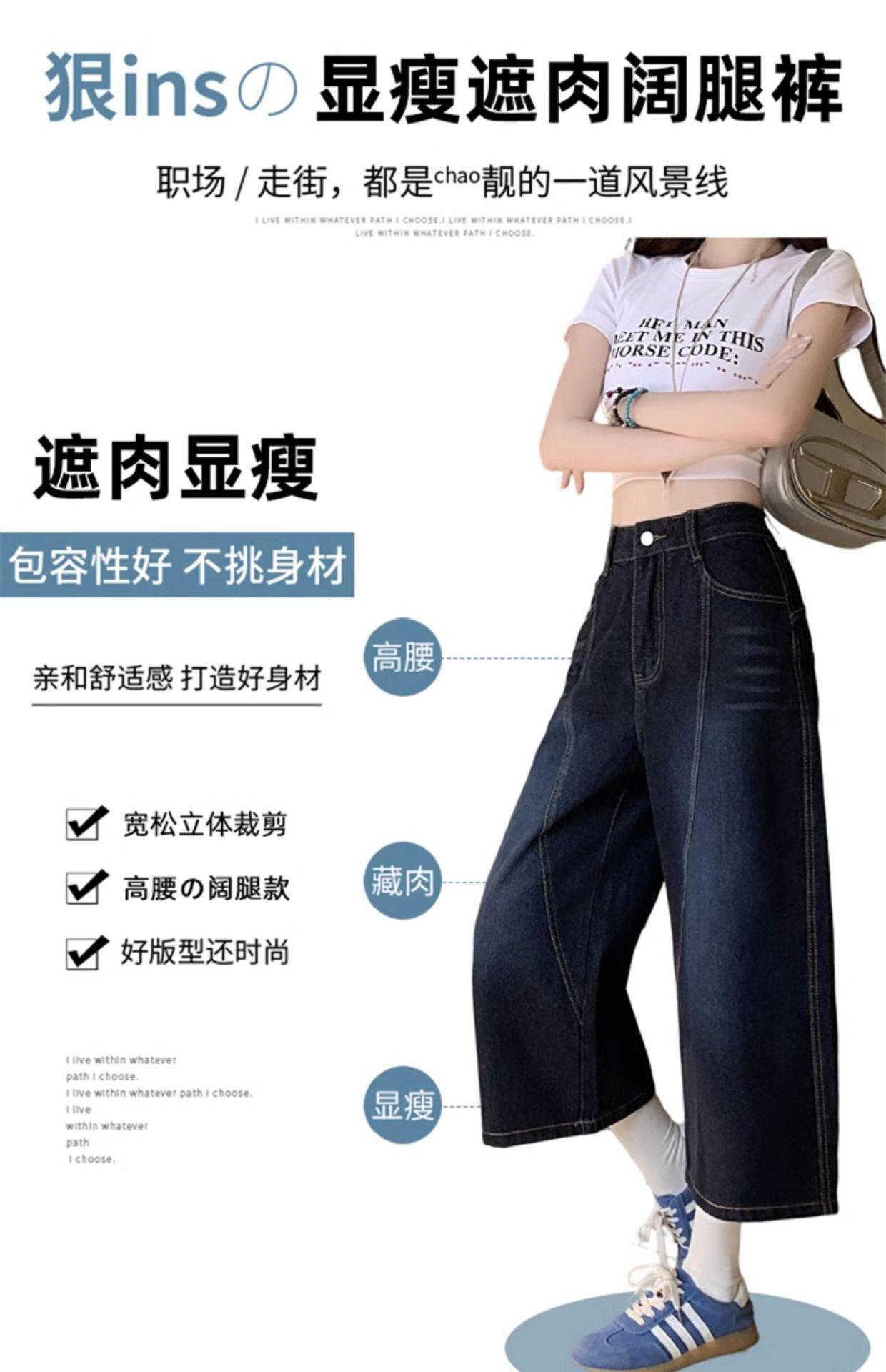 Jeans Cortos Americanos Retro de Talla Grande para Mujer, Verano Sueltos de Cintura Alta Adelgazantes Rectos de Pierna Ancha Curvos de Largo Medio para Mujeres Gorditas