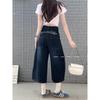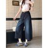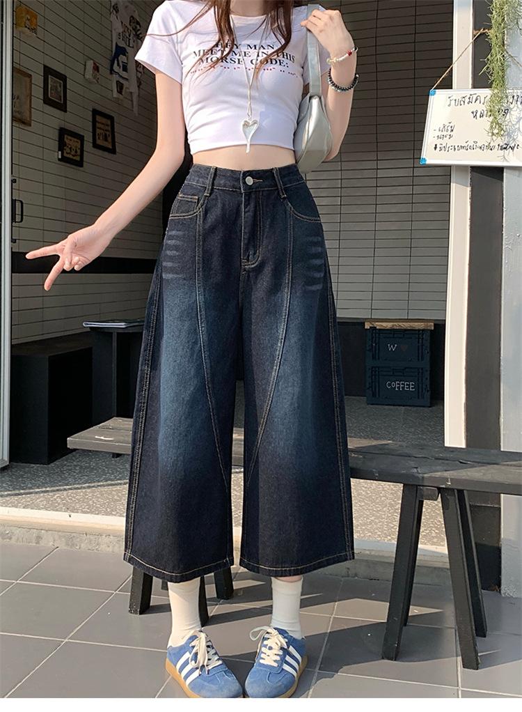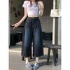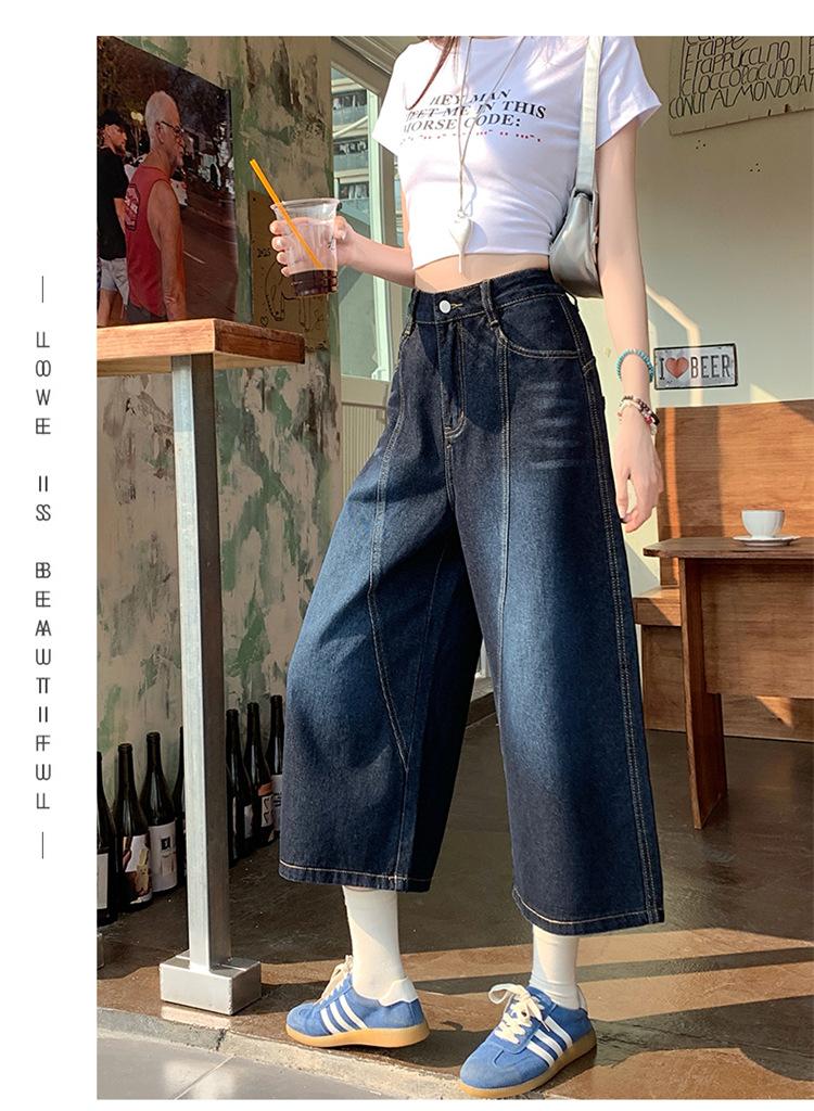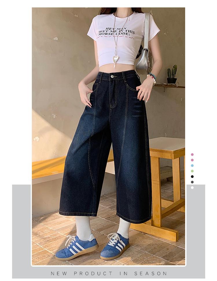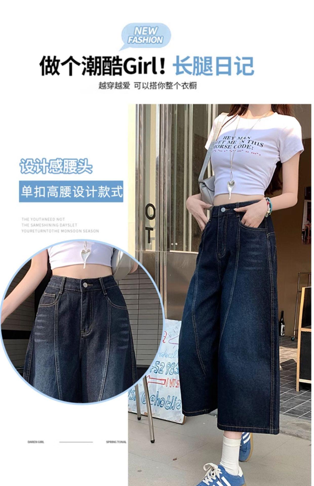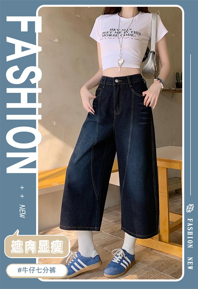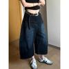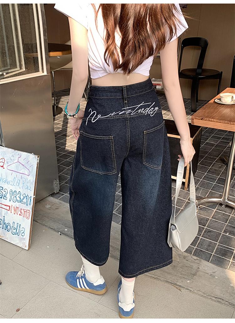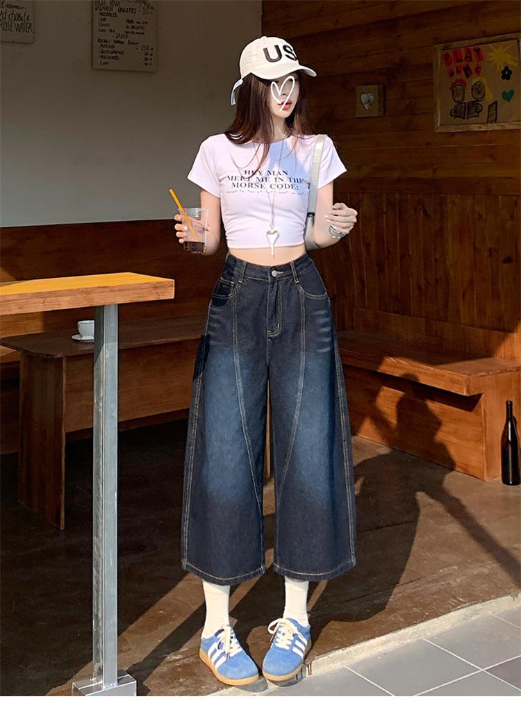 Jeans Cortos Americanos Retro de Talla Grande para Mujer, Verano Sueltos de Cintura Alta Adelgazantes Rectos de Pierna Ancha Curvos de Largo Medio para Mujeres Gorditas
