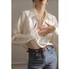 Camisa de Satén Acetato Blanca Francesa de Manga Larga para Mujer Otoño Sentido del Diseño Nicho Chic Hermosa Elegante Camisa Top