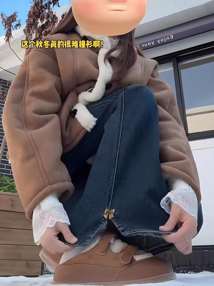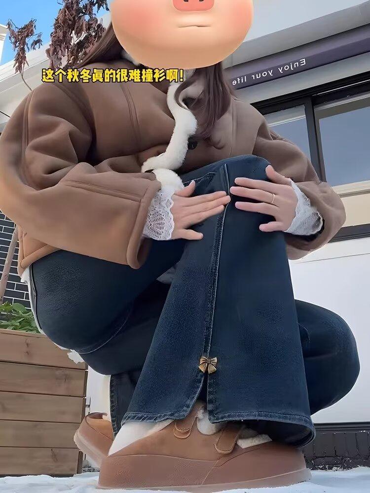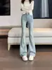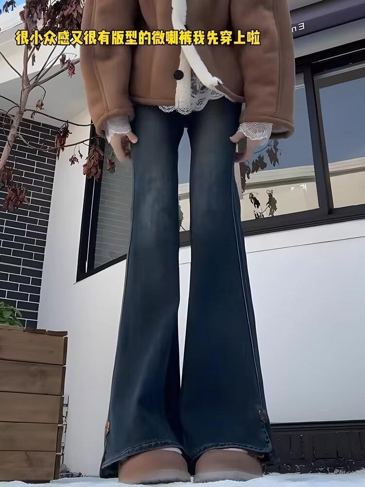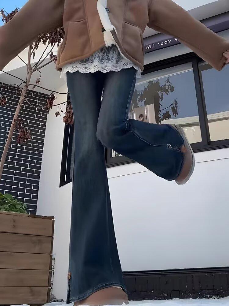 Jeans Retro de Estilo Americano con Abertura Micro-Lar para Mujer 2025 Primavera y Verano Nuevo Cintura Alta Adelgazantes Elásticos Acampanados
