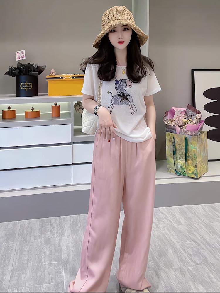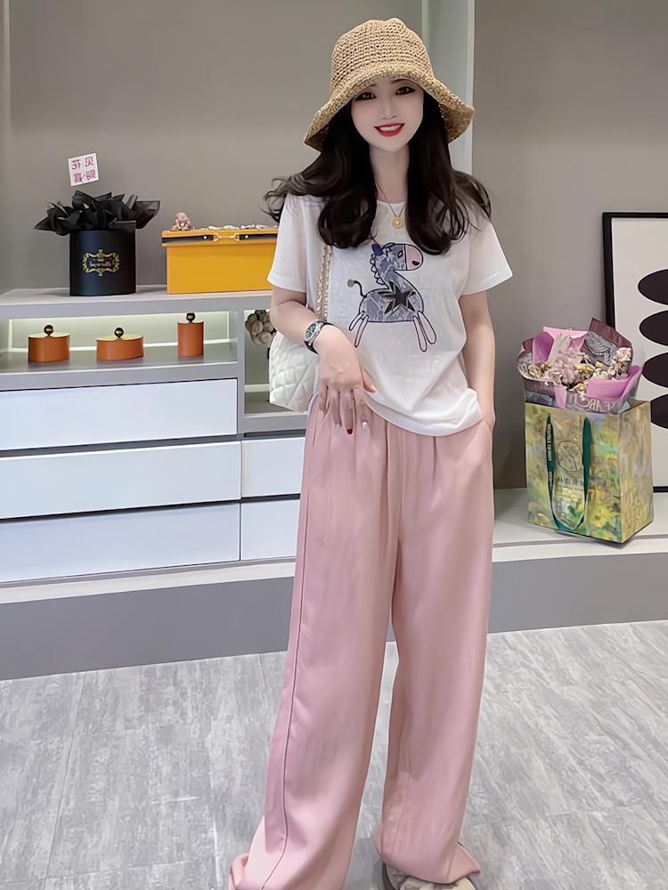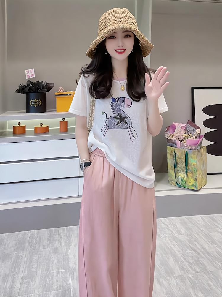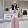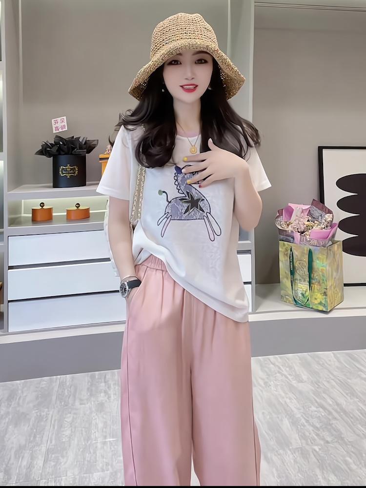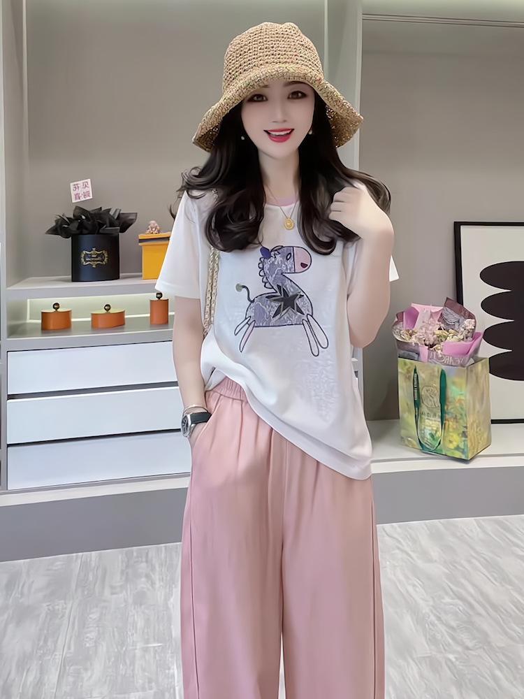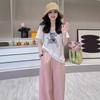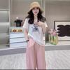 Dulce Chica Verano Estilo Casual Ropa 2025 Nueva Moda Simple Suéter Holgado Cuello Redondo Manga Corta Dos Piezas Ropa de Mujer