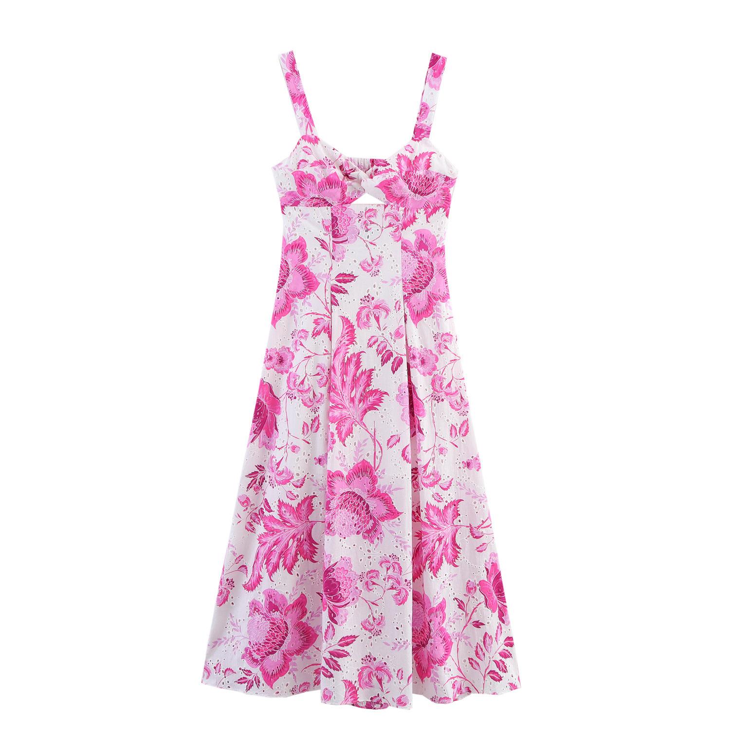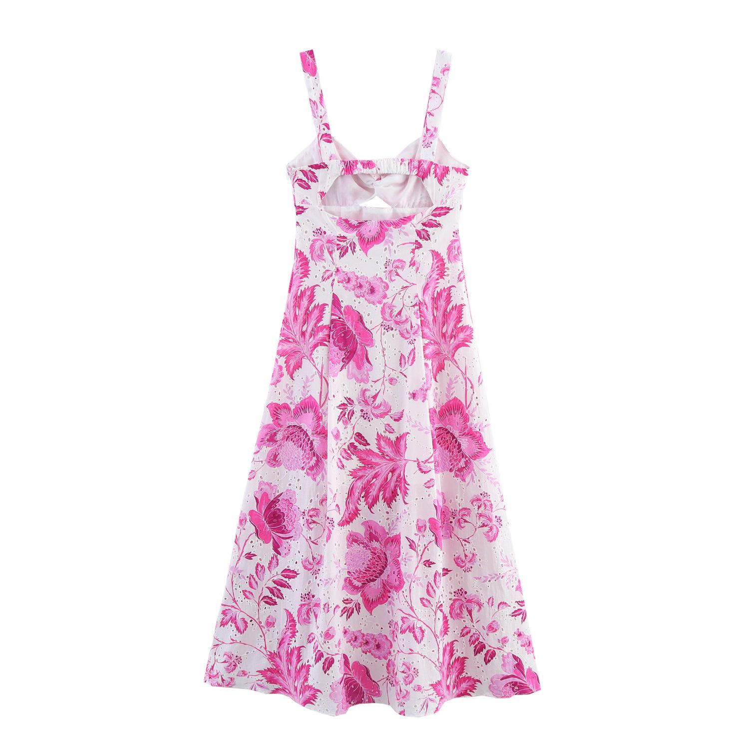 Para Mujer 2025 Verano Nuevo Serie Estilo Resort Europeo y Americano Diseño de Bordado Calado Vestido Largo con Tirantes