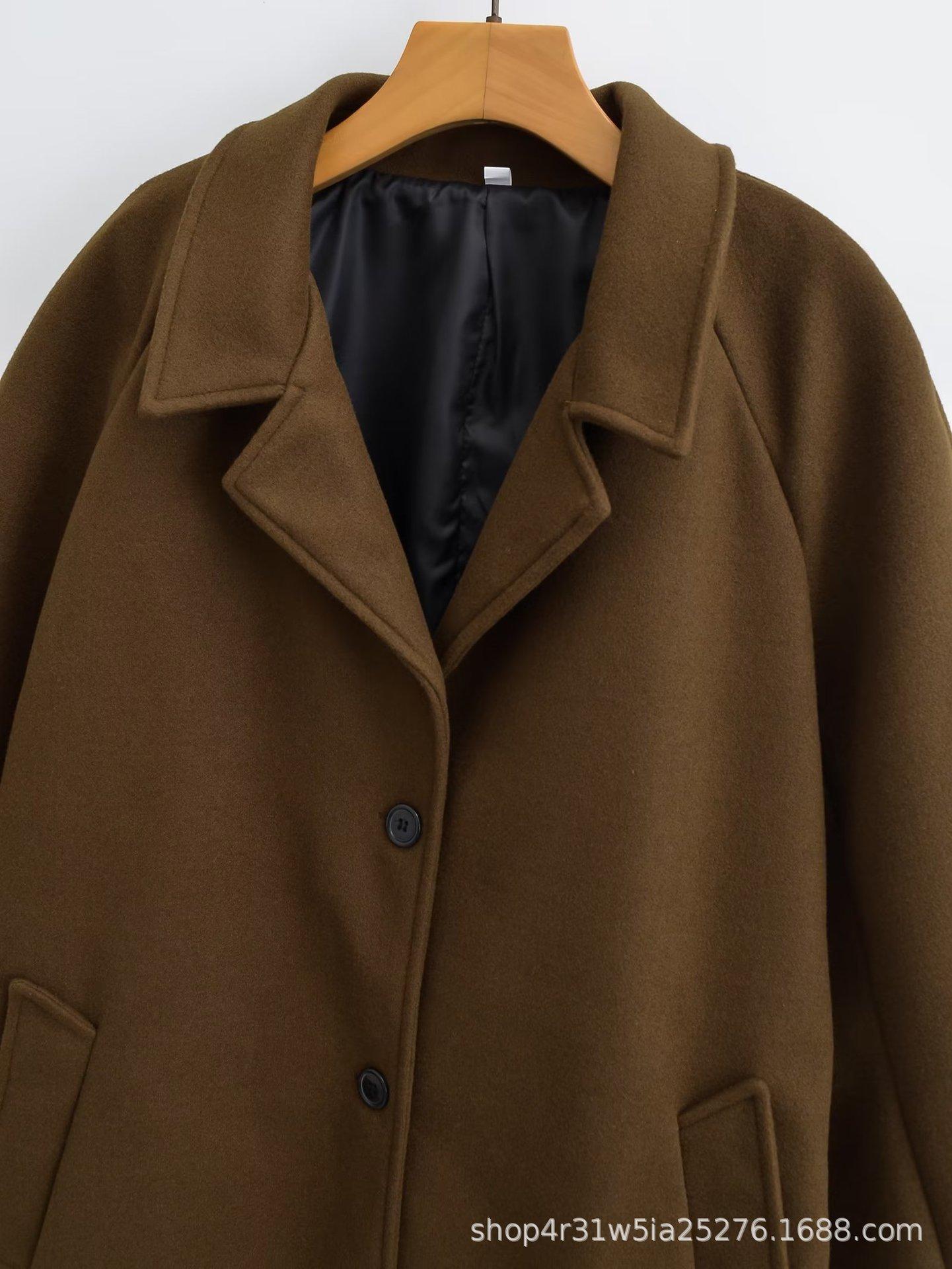 Venta al por mayor transfronteriza Otoño 2023 Nuevo abrigo casual de media longitud de solapa suelta de manga larga de un solo pecho europeo y americano
