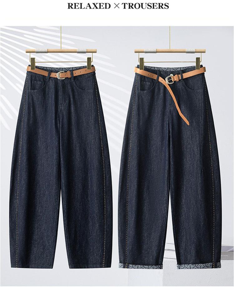 Jeans Machete de Algodón Tencel para Mujer Verano 2025 Nuevo Delgados Cintura Alta Cortos Nueve Puntos Harlan Papá