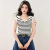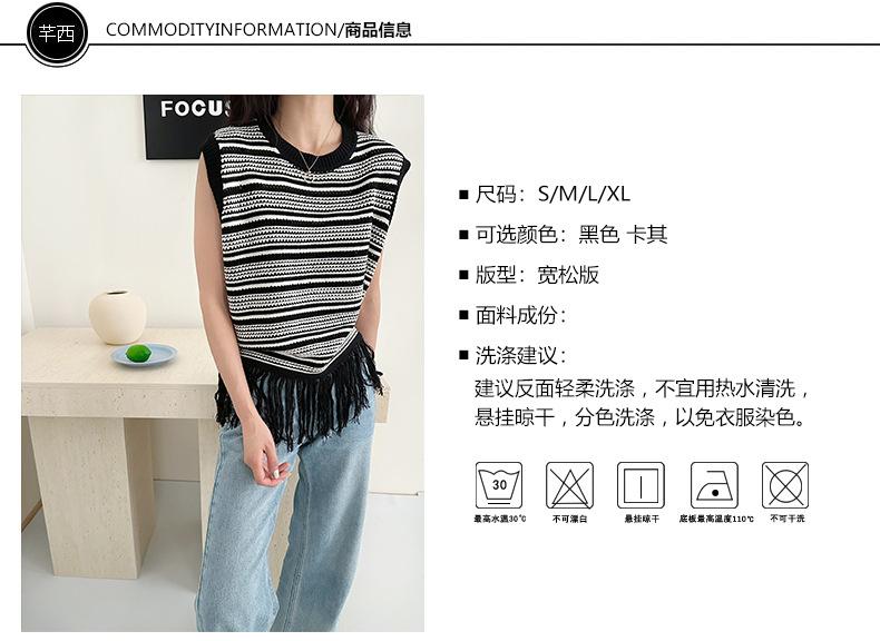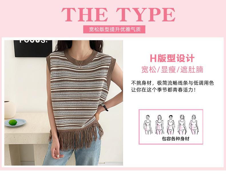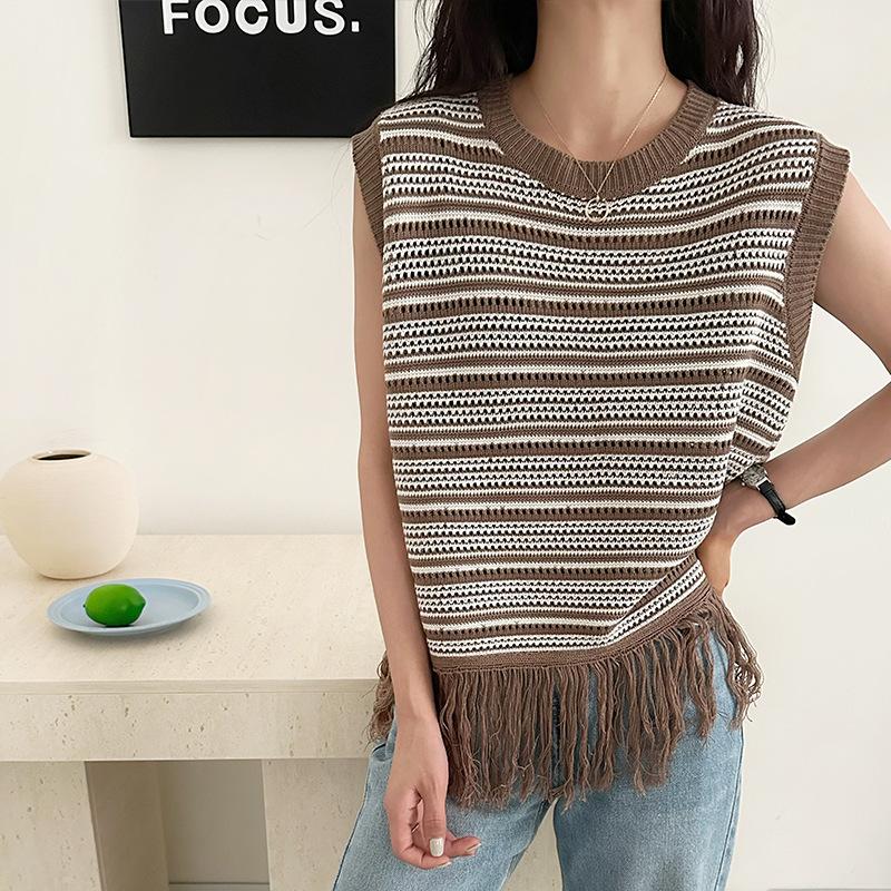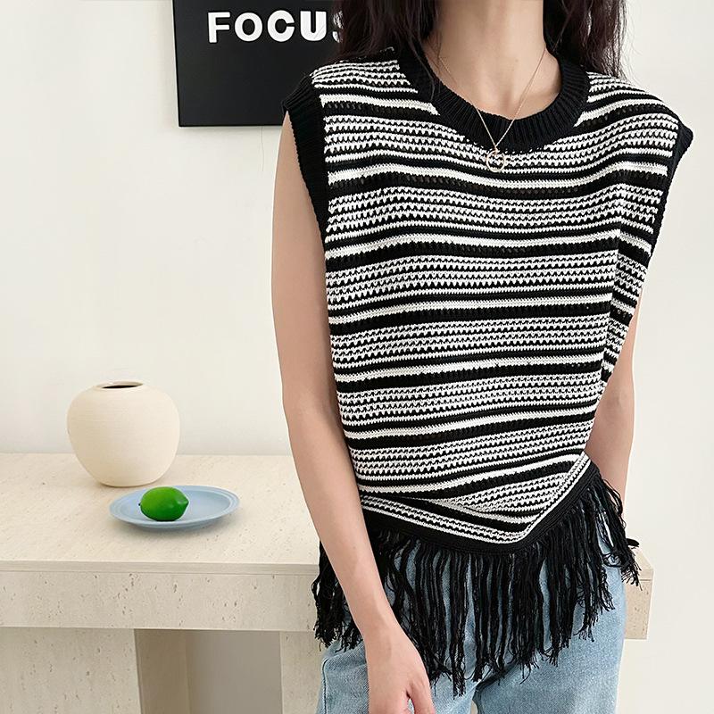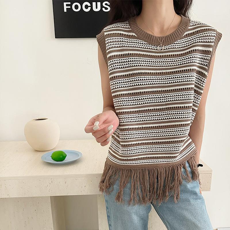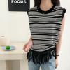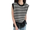 Chaleco de Punto Rayado con Borlas de Diseño para Mujer 2025 Nuevo Verano Estilo Coreano Top Base Fino Blusa Calada