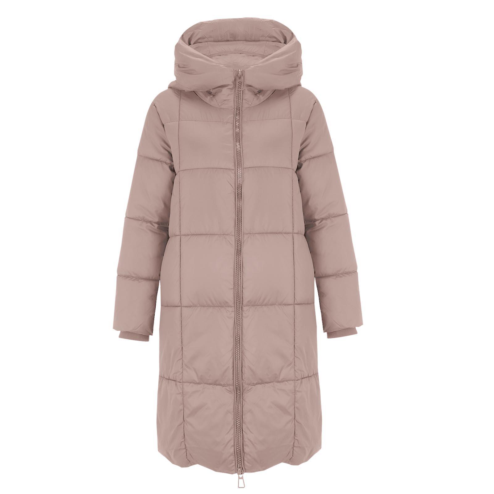 2025 Nuevo Otoño e Invierno Mediano Largo Engrosado Mejorado Talla Grande Moda Casual con Capucha Color Puro Algodón Chaqueta para Mujer