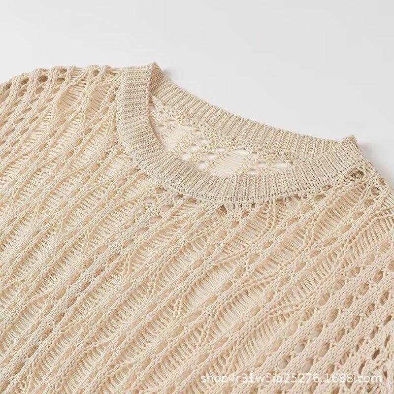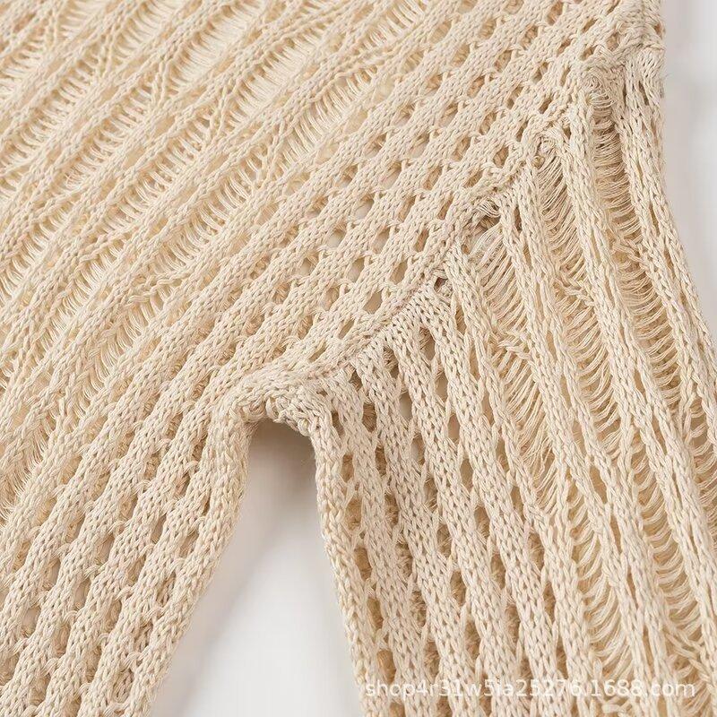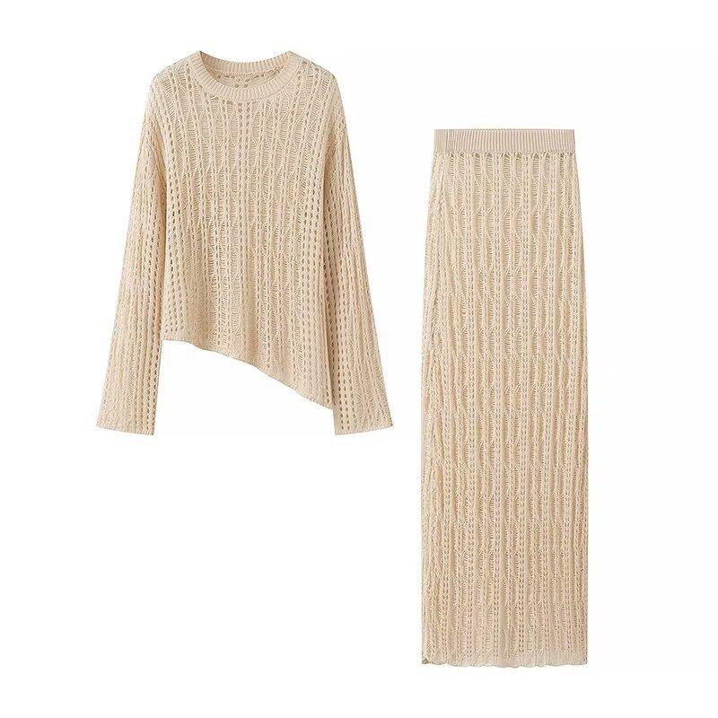 Moda Europea y Americana 2024 Nuevo Otoño para Mujer Cuello Redondo Manga Larga Ajustado Color Sólido Tejido de Punto Traje de Falda para Mujer Venta al por Mayor