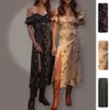 Compra Primavera 2026 Nueva Ropa para Mujer Europea y Americana Transfronteriza Vestido de Moda Elegante Sexy con Abertura Hombros Descubiertos Floral Largo al por mayor en Joom.pro