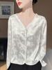 Top de Jacquard Satinado de Color Sólido 2025 Primavera y Verano Nuevo Sencillo Coreano Cuello en V Camisa Ligera para Mujer