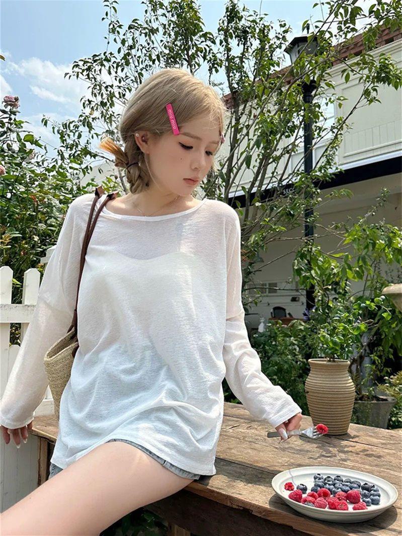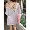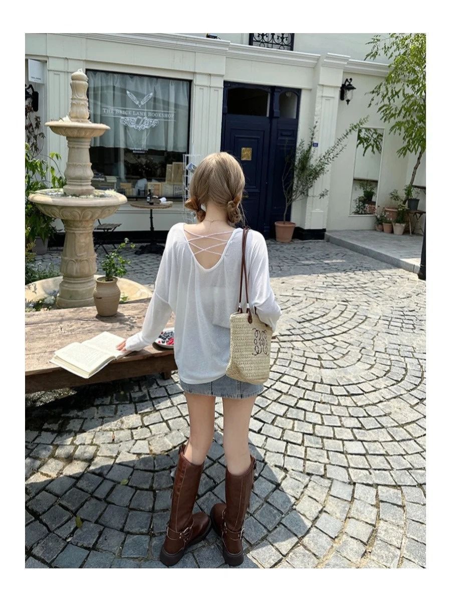 Playera de Manga Larga con Protección Solar para Mujer 2025 Verano Nuevo Diseño Nicho Delgada Sexy Espalda Descubierta Top Cruzado Ins Trend