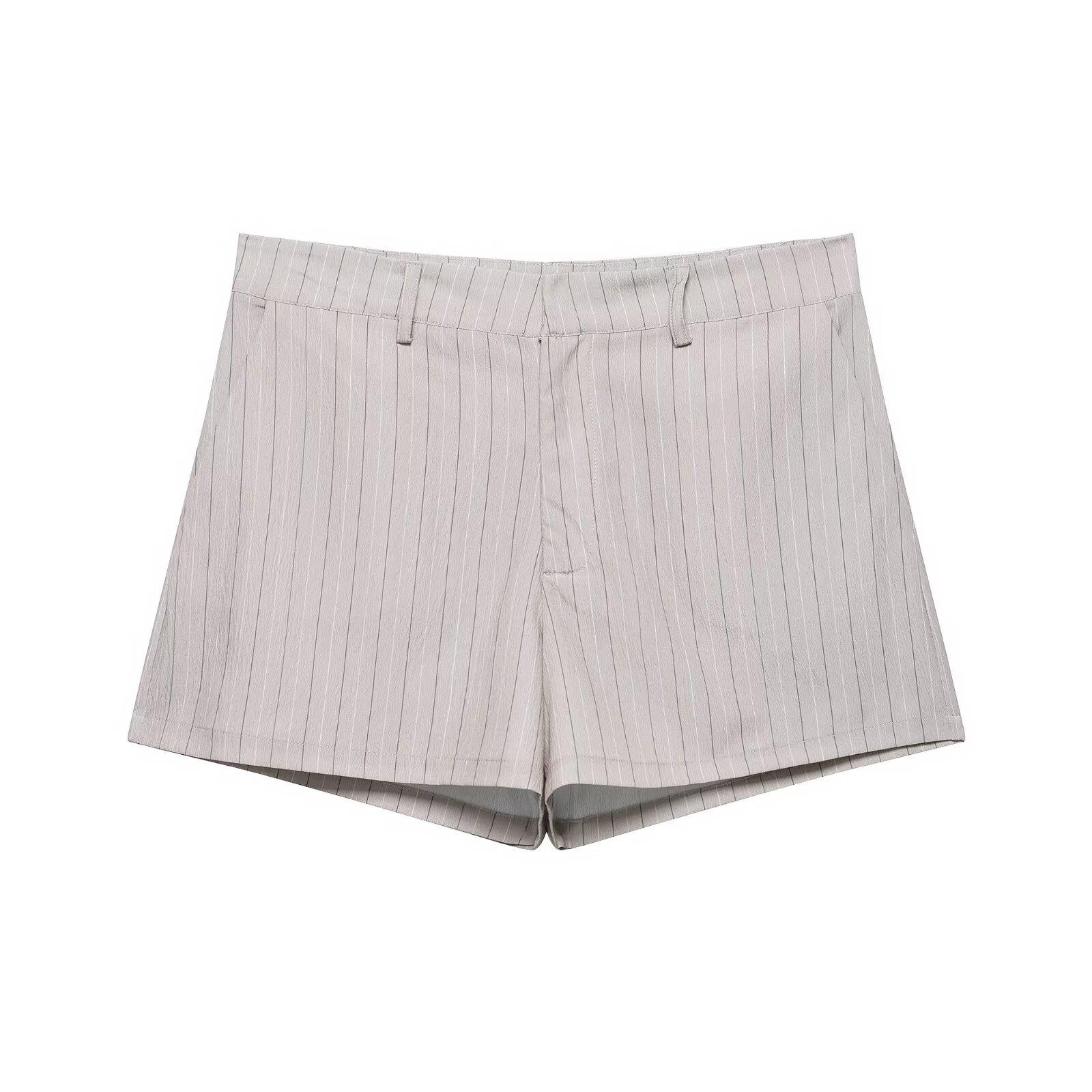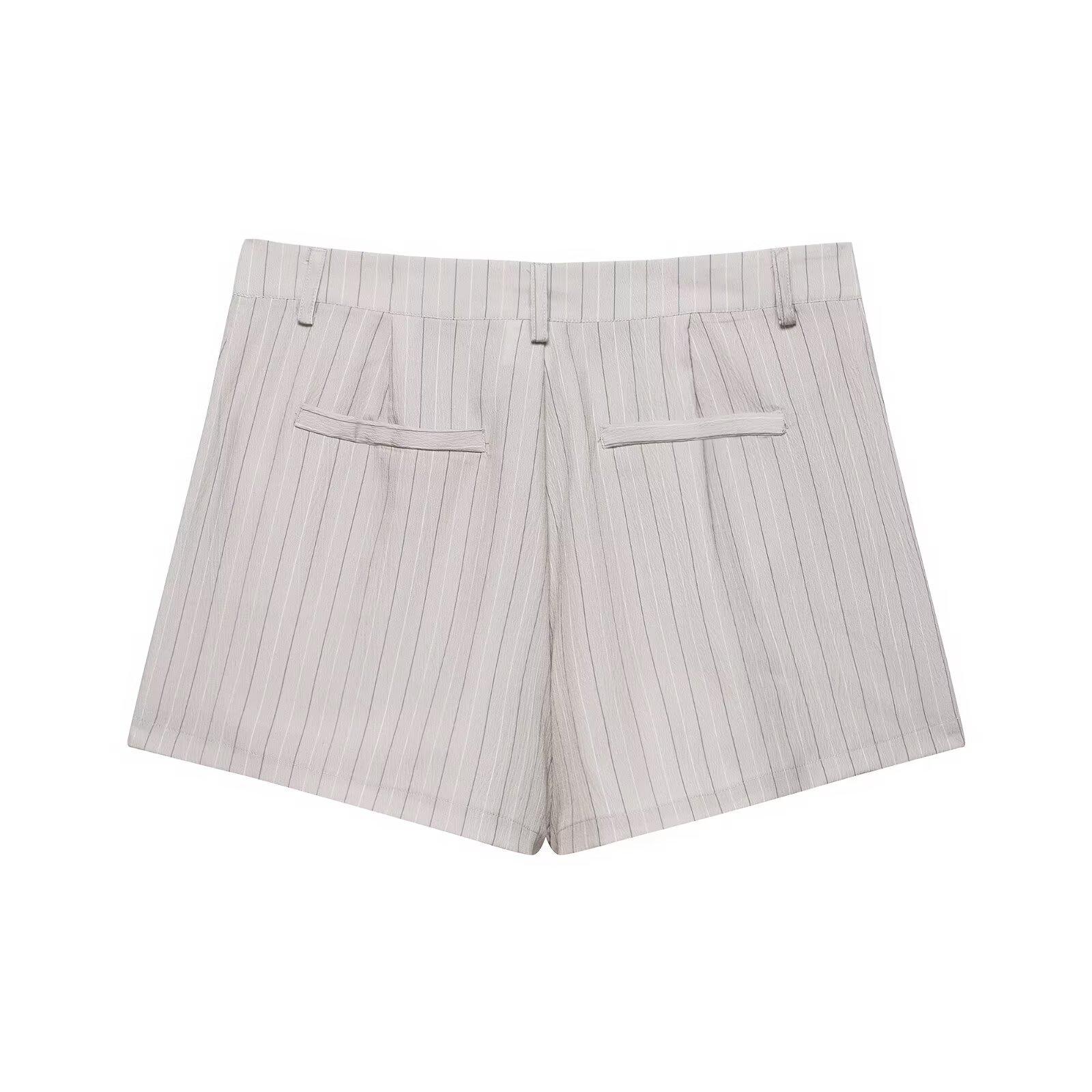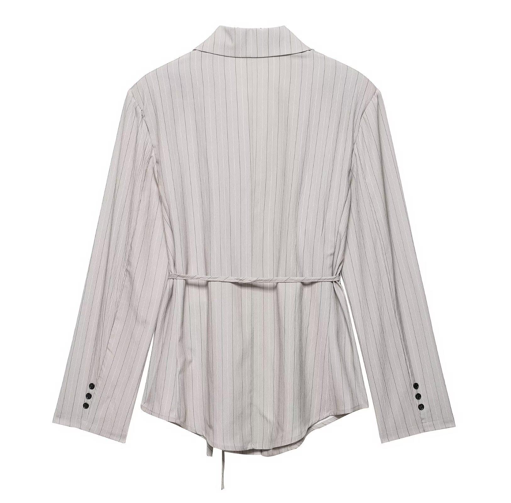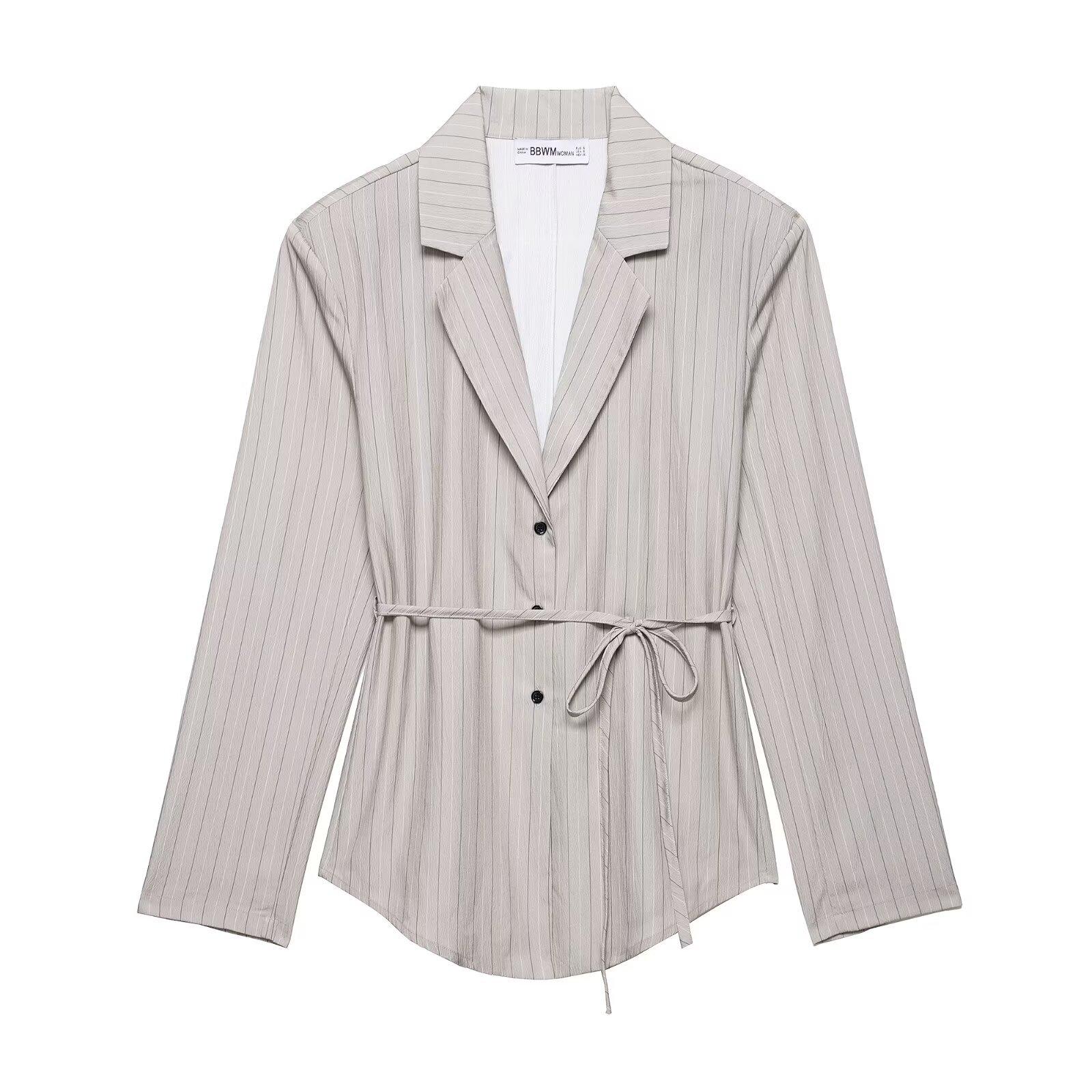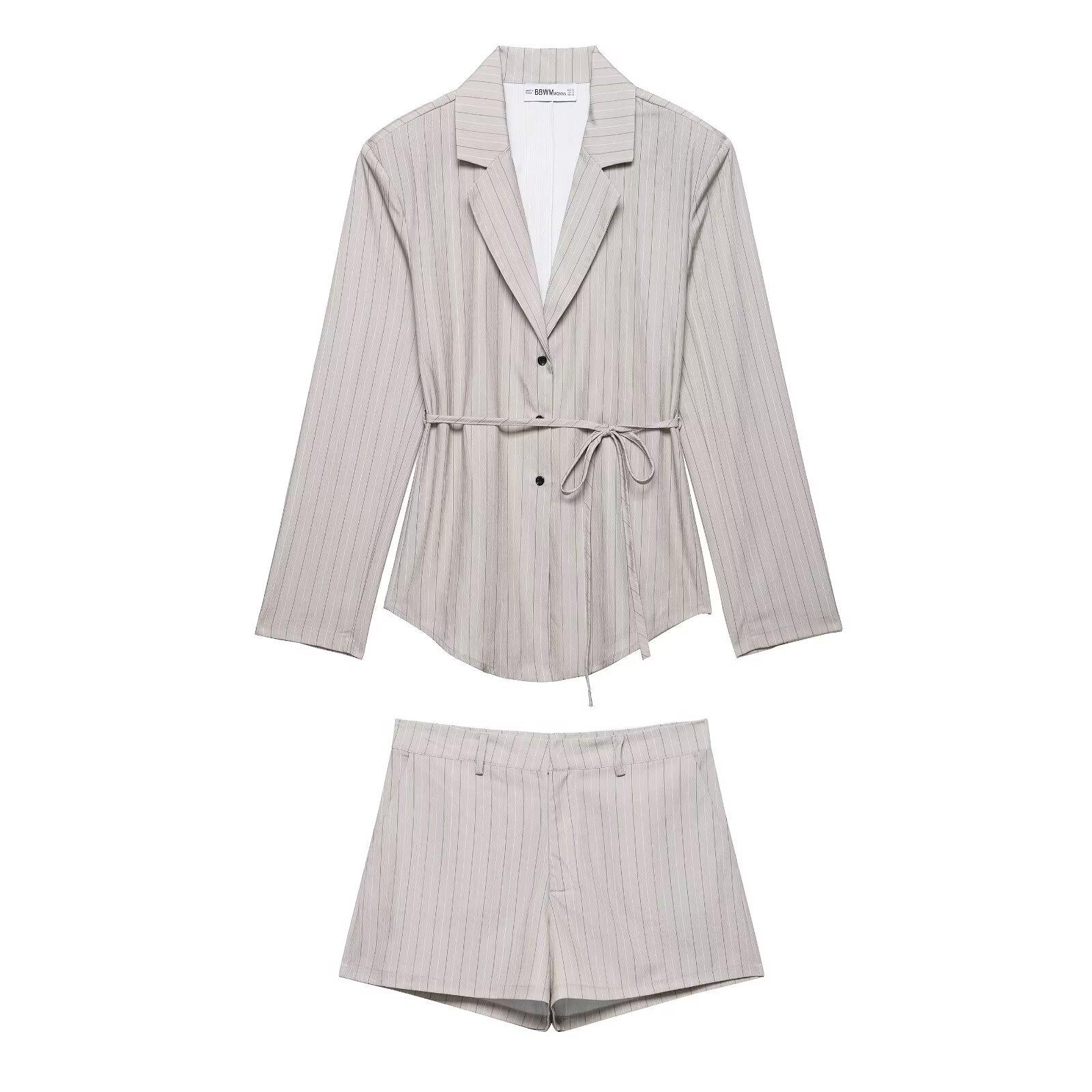 2025 Verano Nuevo Europeo y Americano Transfronterizo Ropa de Mujer Cinturón Traje Rayado Chaqueta Pantalón corto traje w03 6471