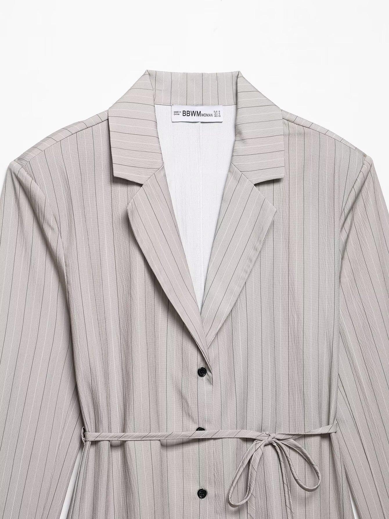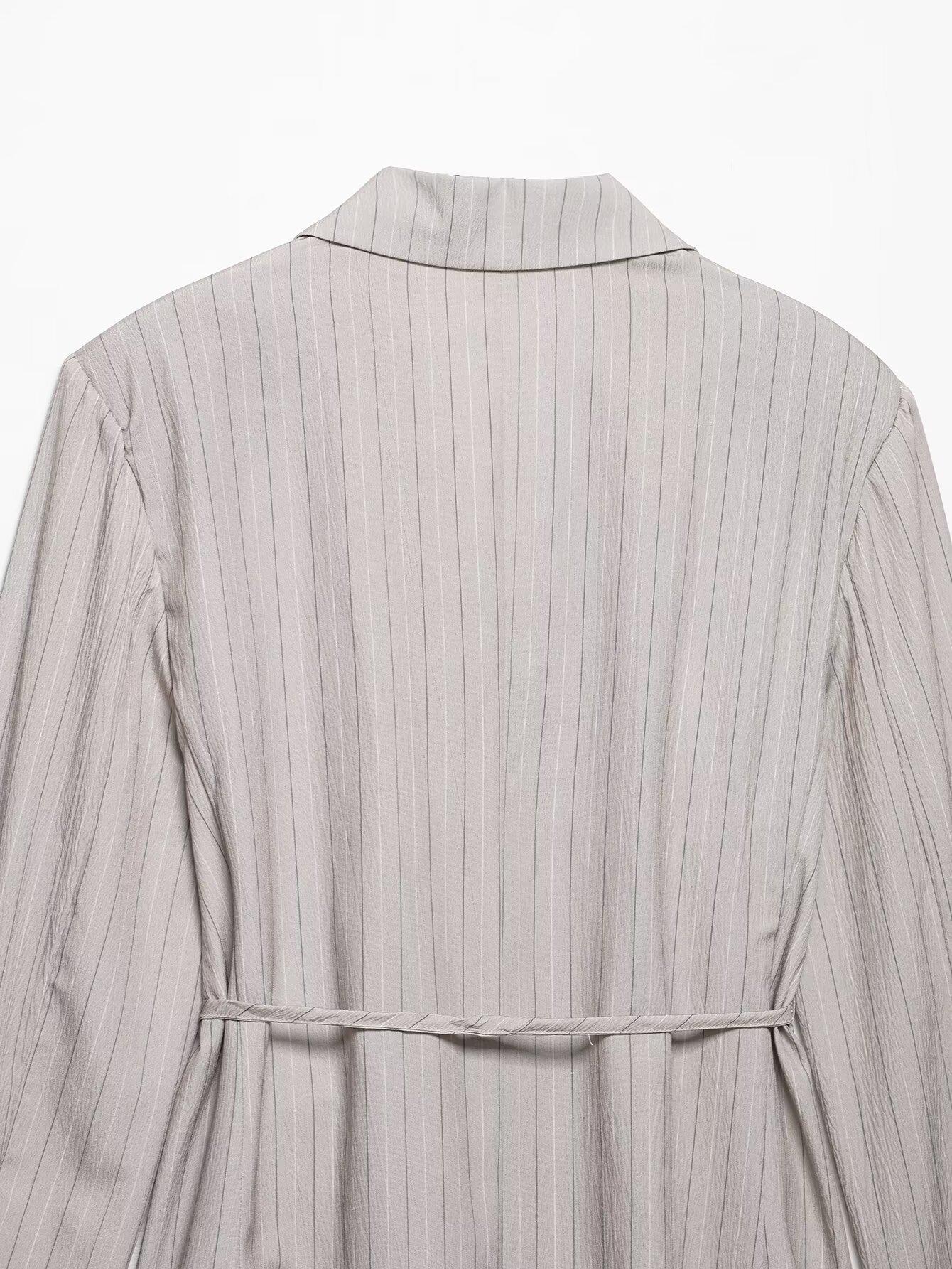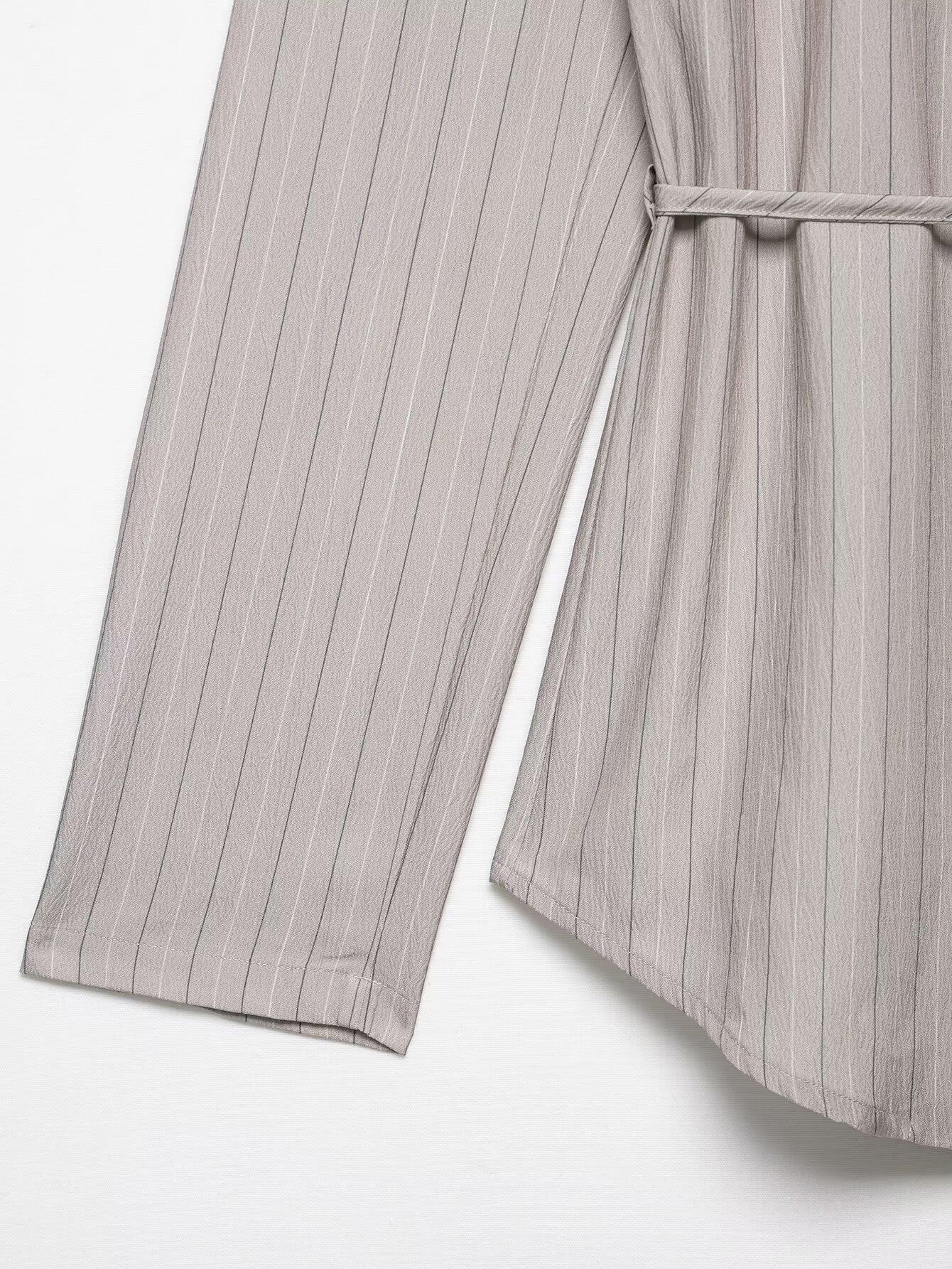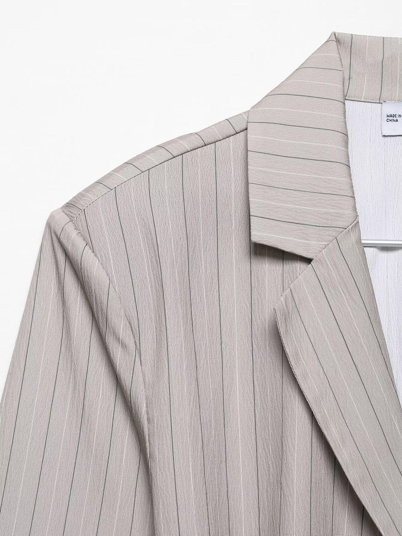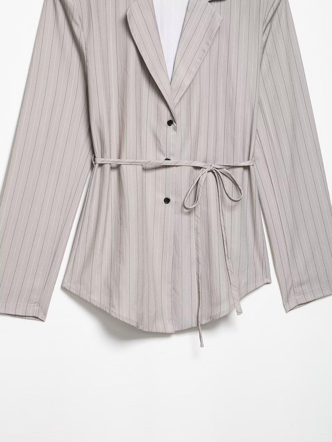 2025 Verano Nuevo Europeo y Americano Transfronterizo Ropa de Mujer Cinturón Traje Rayado Chaqueta Pantalón corto traje w03 6471