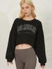 Compra Sudadera Gris Transfronteriza Corta con Abertura en la Cintura Casual Hombro para Mujer Primavera y Otoño Estilo Deportivo Europeo y Americano Holgada Ombliguera Manga Larga al por mayor en Joom.pro