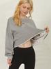Sudadera Gris Transfronteriza Corta con Abertura en la Cintura Casual Hombro para Mujer Primavera y Otoño Estilo Deportivo Europeo y Americano Holgada Ombliguera Manga Larga