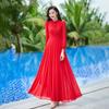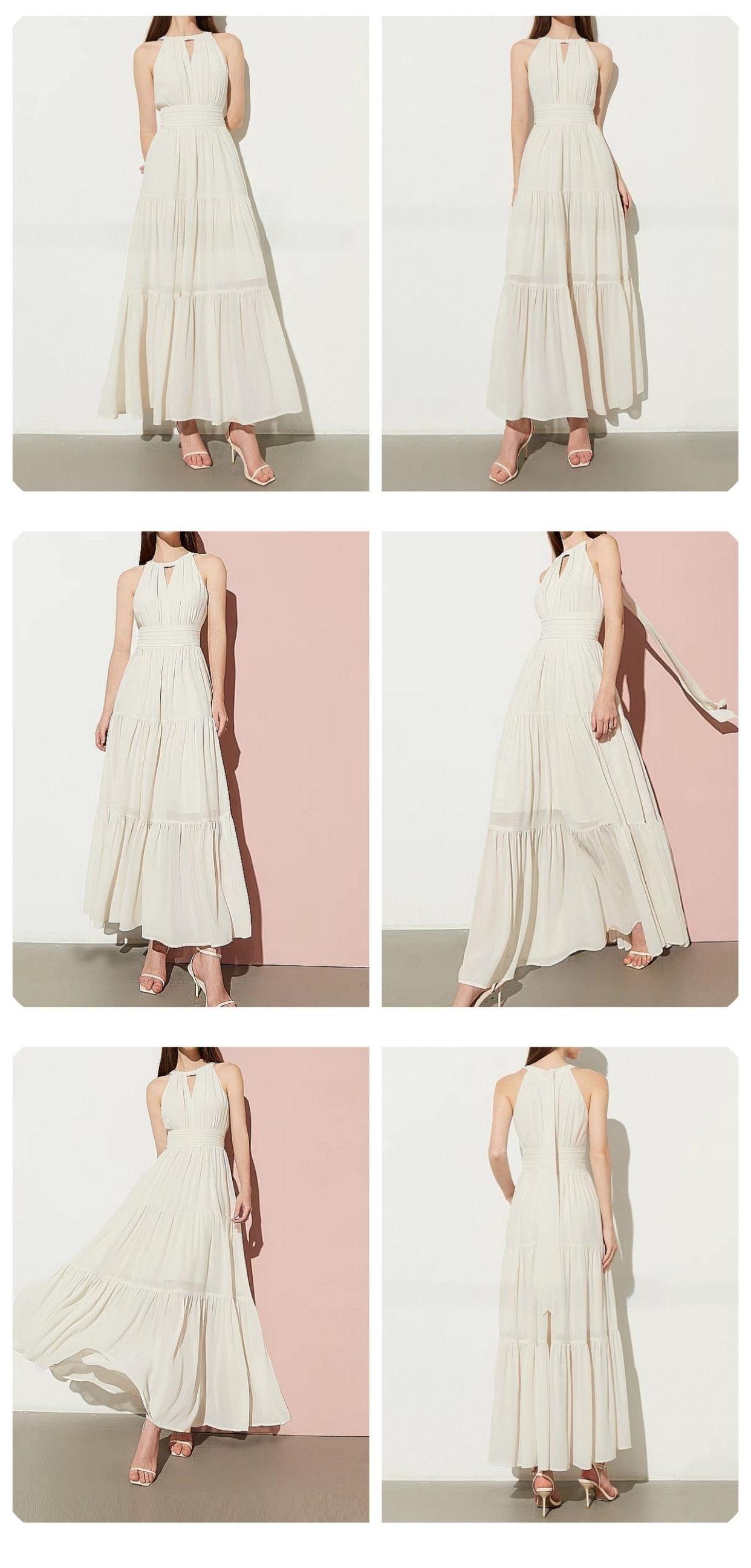 Verano 2025 Nuevo Vestido sin Espalda Cuello Redondo con Cordones Viaje Marítimo Cintura Elegante Chifón Vestido Amplio
