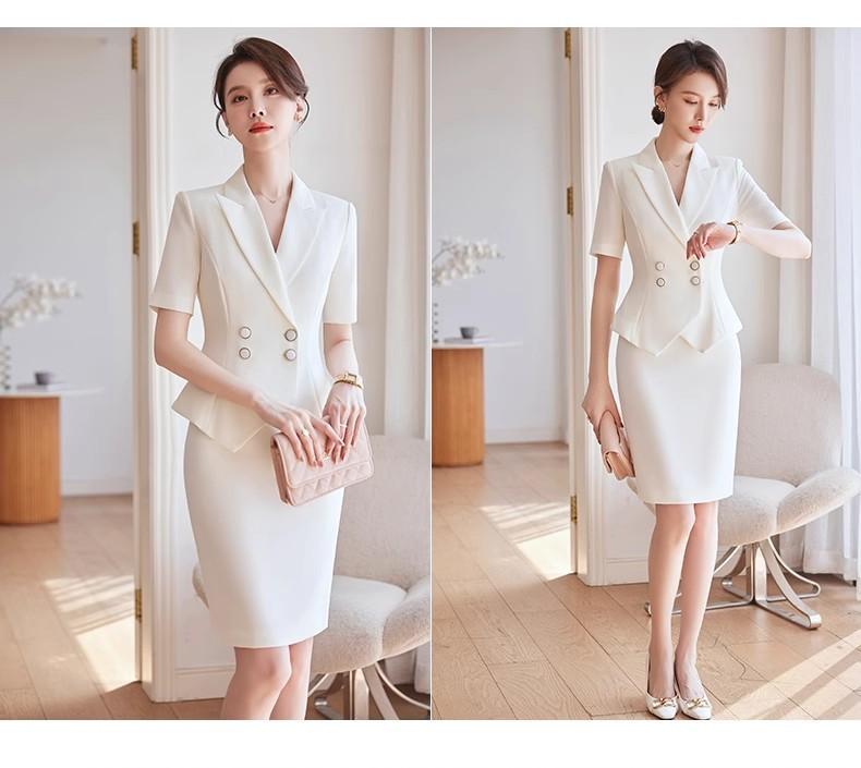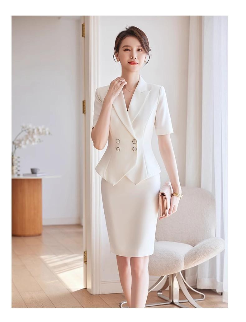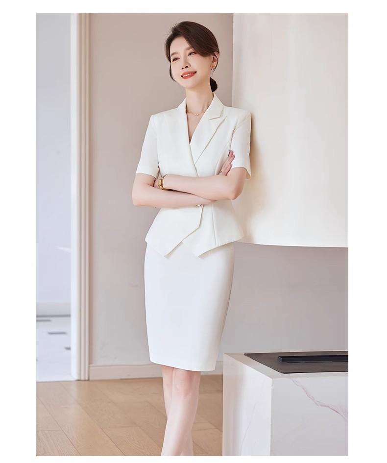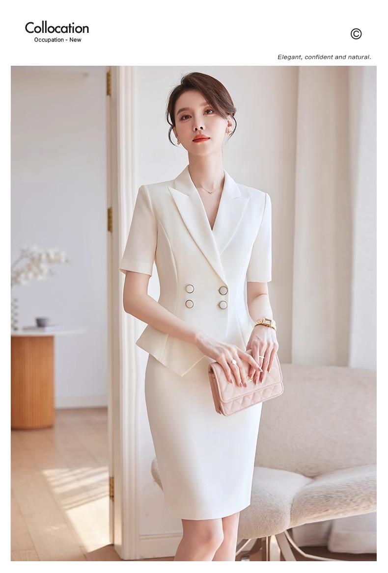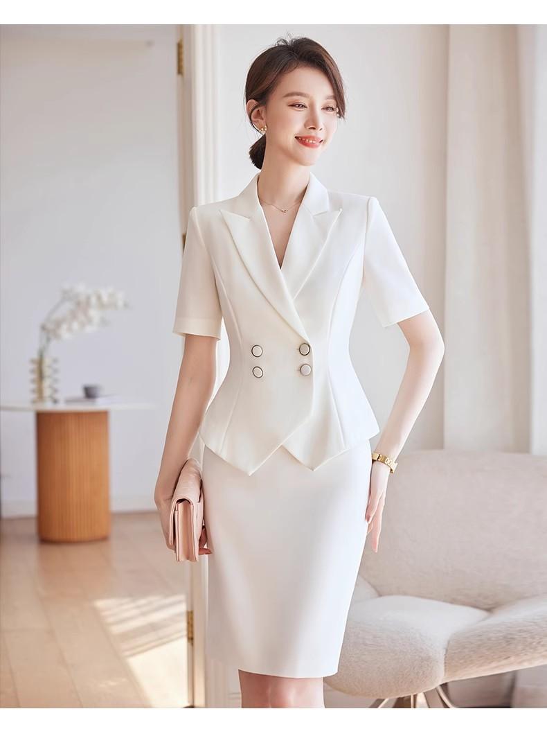 Ropa de Trabajo Temperamento Profesional Alto Sentido Traje de Verano Tienda de Joyería para Mujer Recepción de Hotel Chaqueta de Traje Blanca de Manga Corta