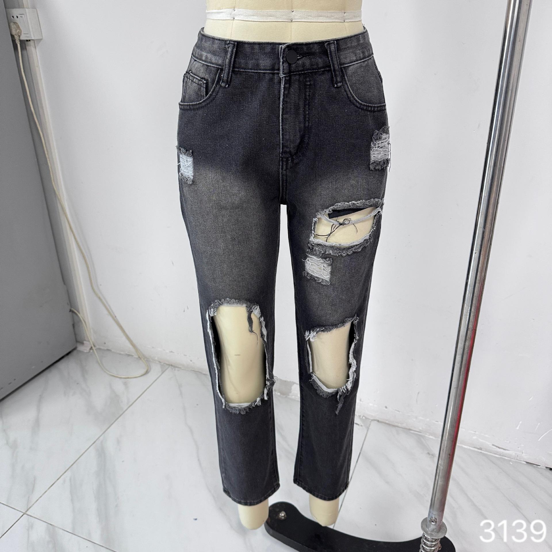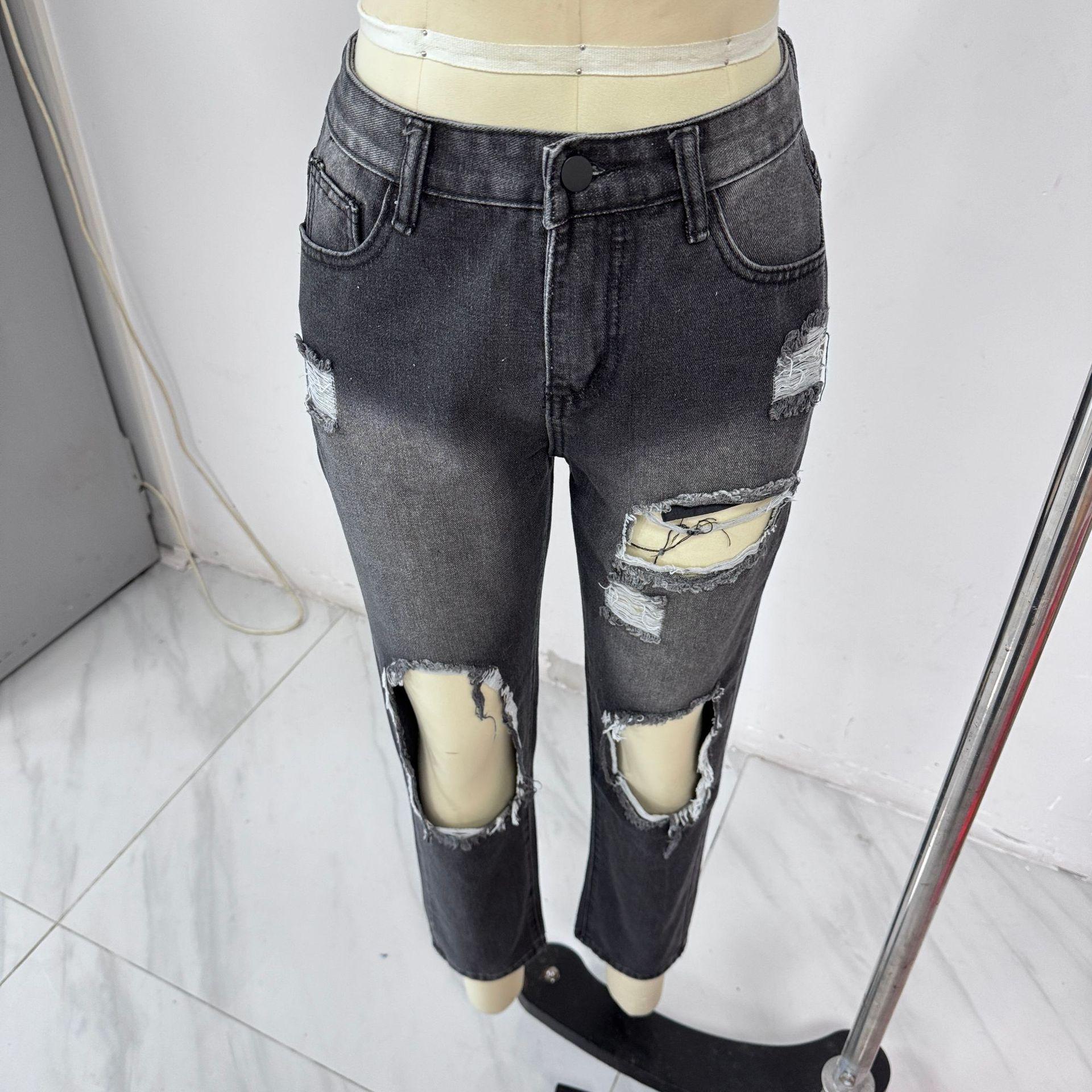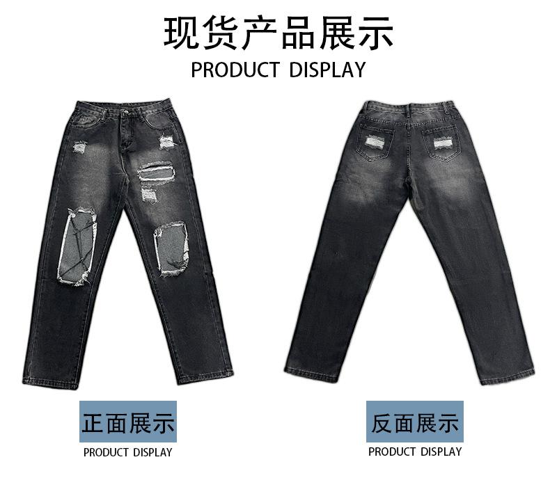 Pantalones de Mezclilla Cortos Casuales Slim Rectos Rasgados de Moda de Suministro Transfronterizo de Comercio Exterior Europeo y Americano