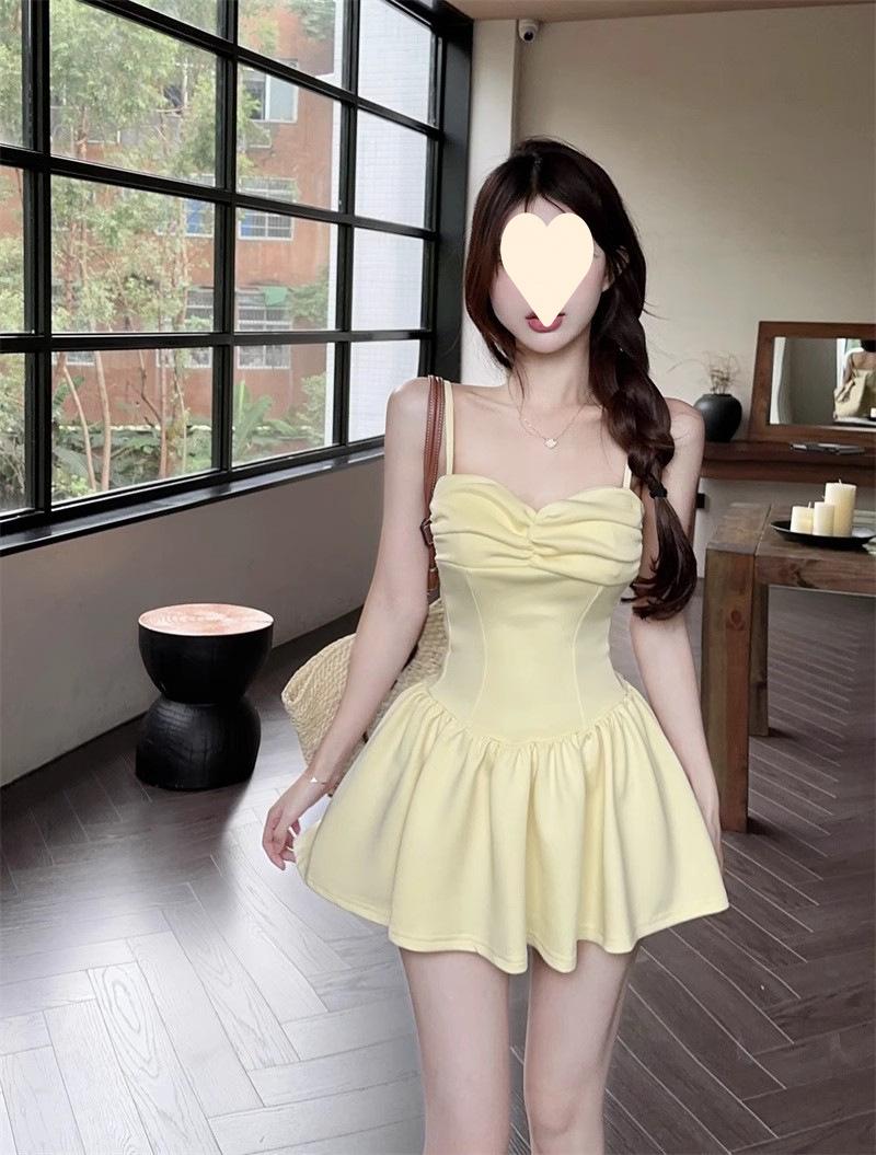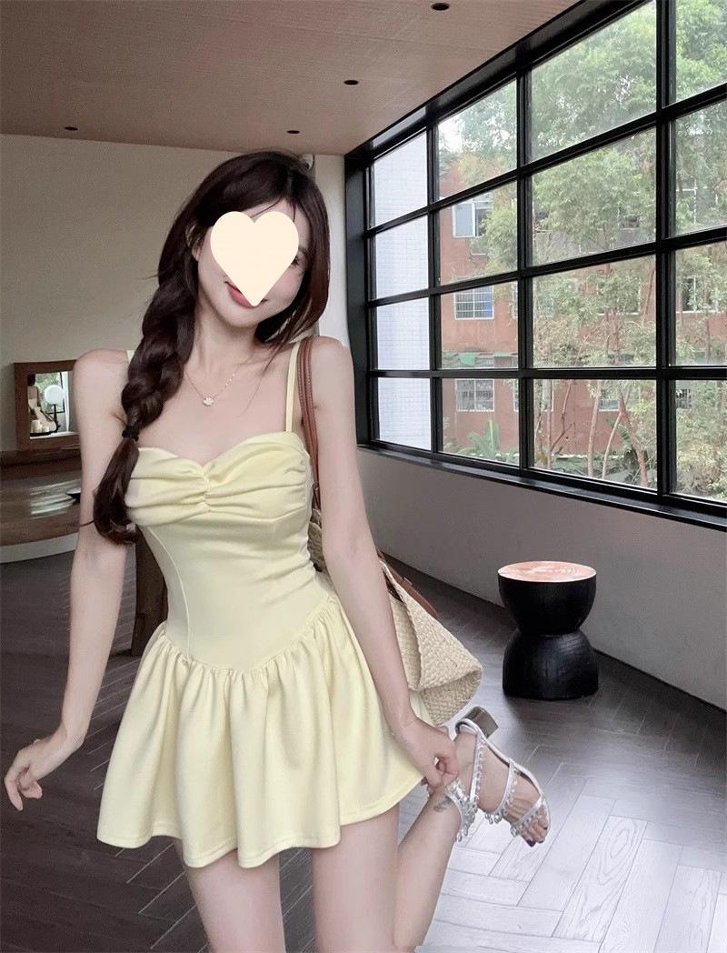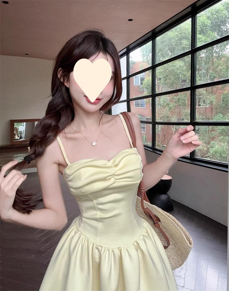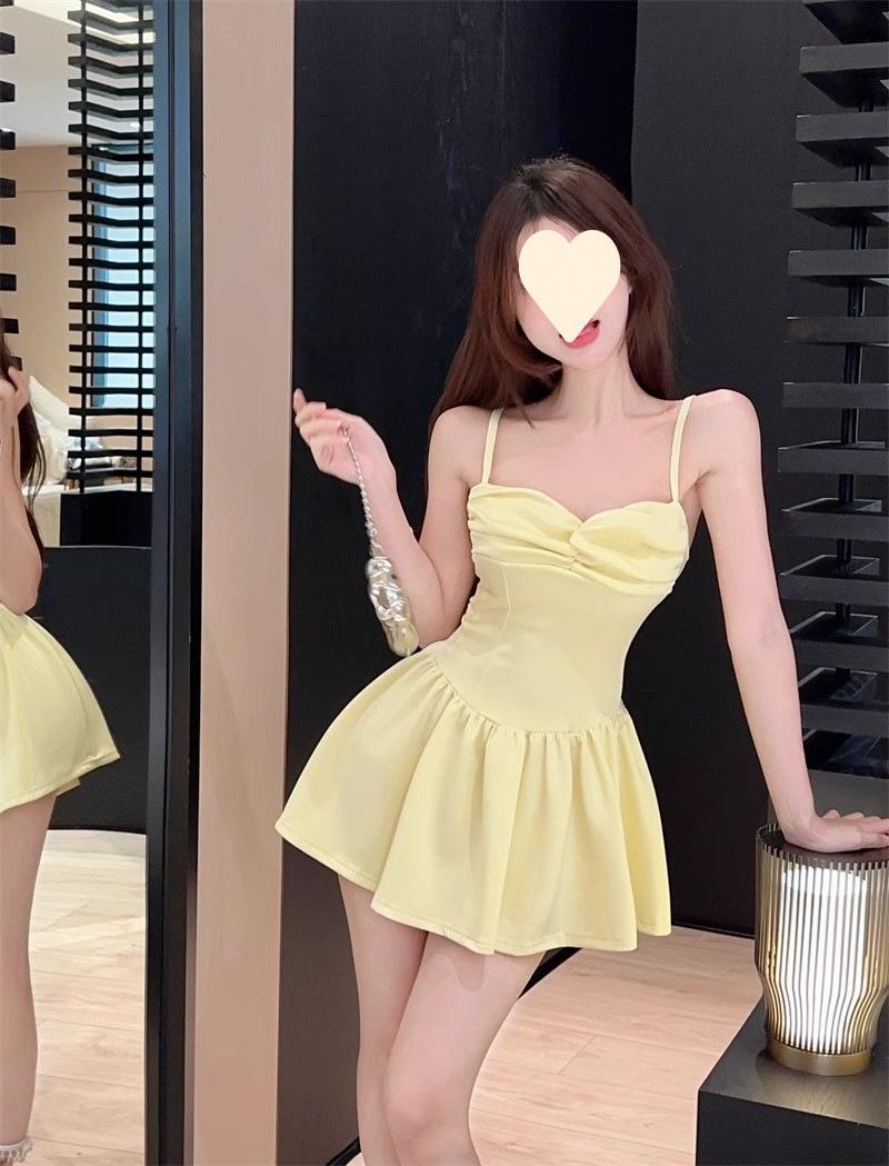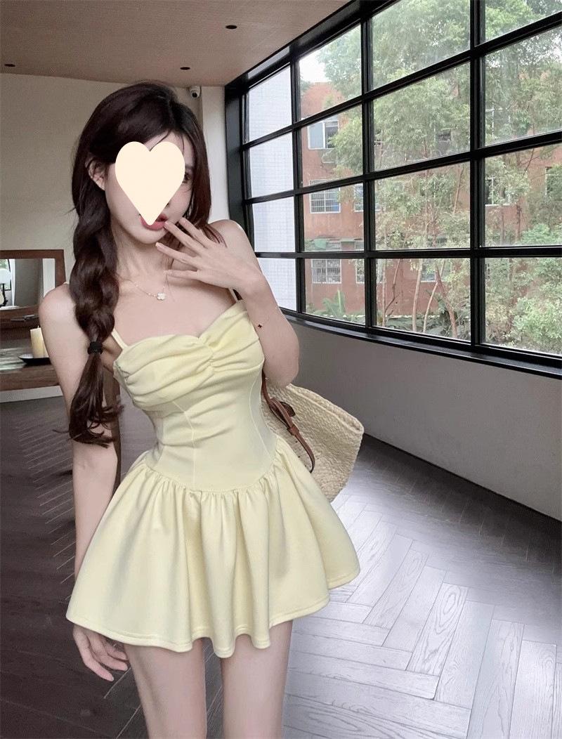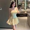 Deseo Puro Sexy Falda Plisada de Un Hombro Línea A Vestido de Verano para Mujer 2025 Nuevo Chica Caliente Cintura Adelgazante Tirantes