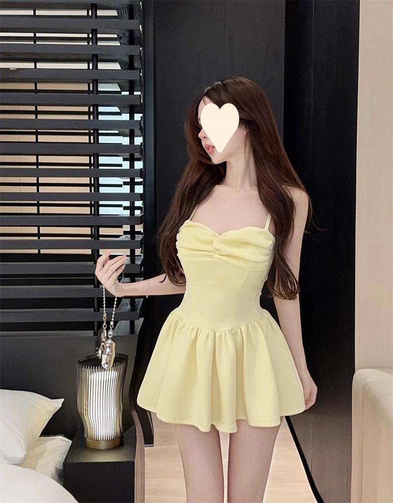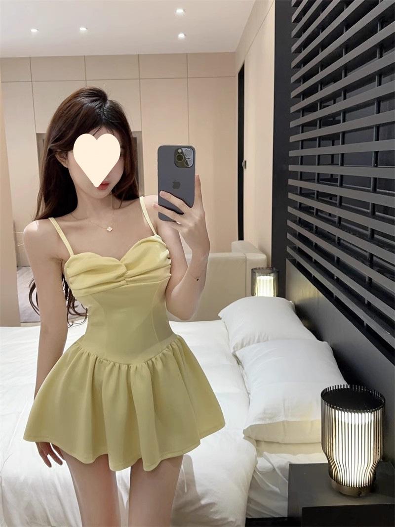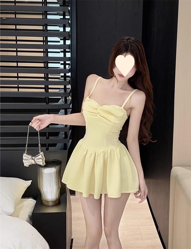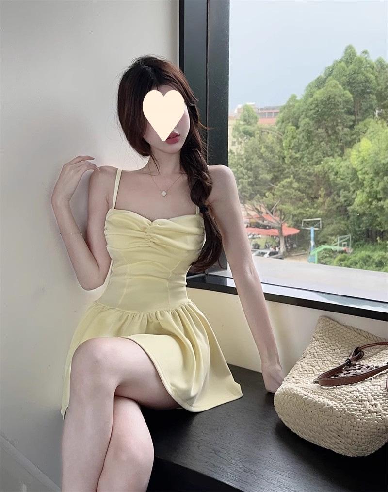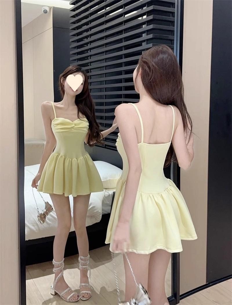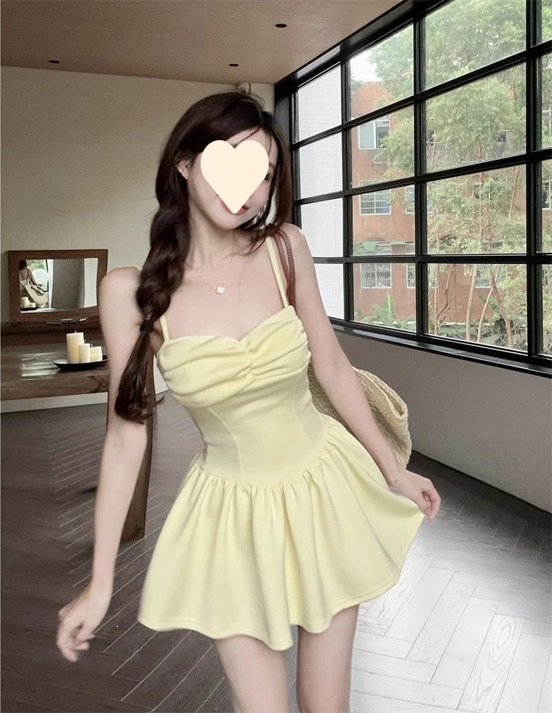 Deseo Puro Sexy Falda Plisada de Un Hombro Línea A Vestido de Verano para Mujer 2025 Nuevo Chica Caliente Cintura Adelgazante Tirantes