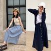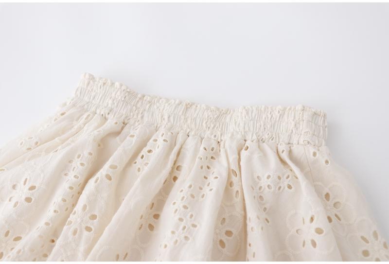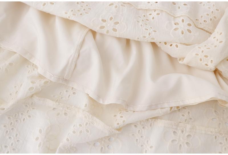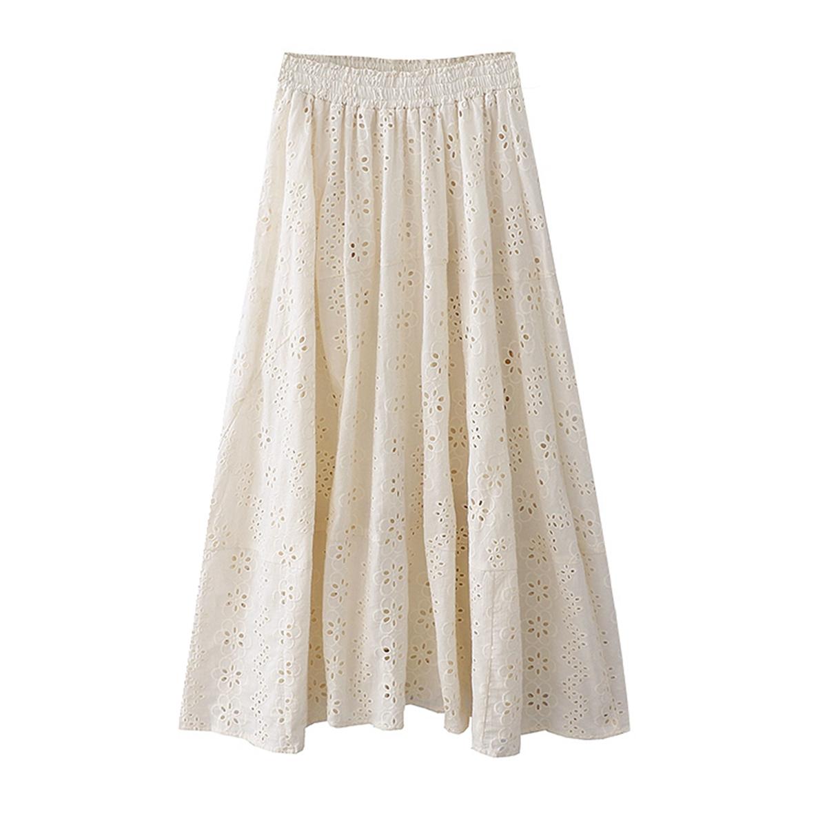 Una falda larga de vestido francés retro estilo Mori de cintura alta con bordado pesado y calado para mujer