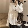 Suéter de punto hueco suelto nuevo de primavera y verano europeo para mujer 2025 verano largo nicho sin hebilla camisa cárdigan delgada para protección solar
