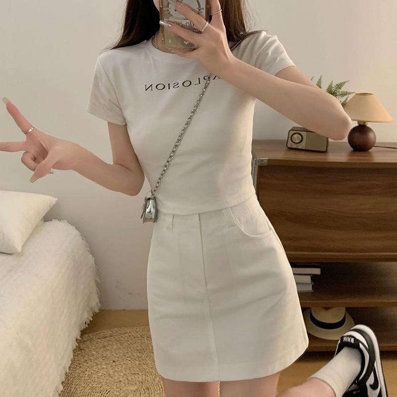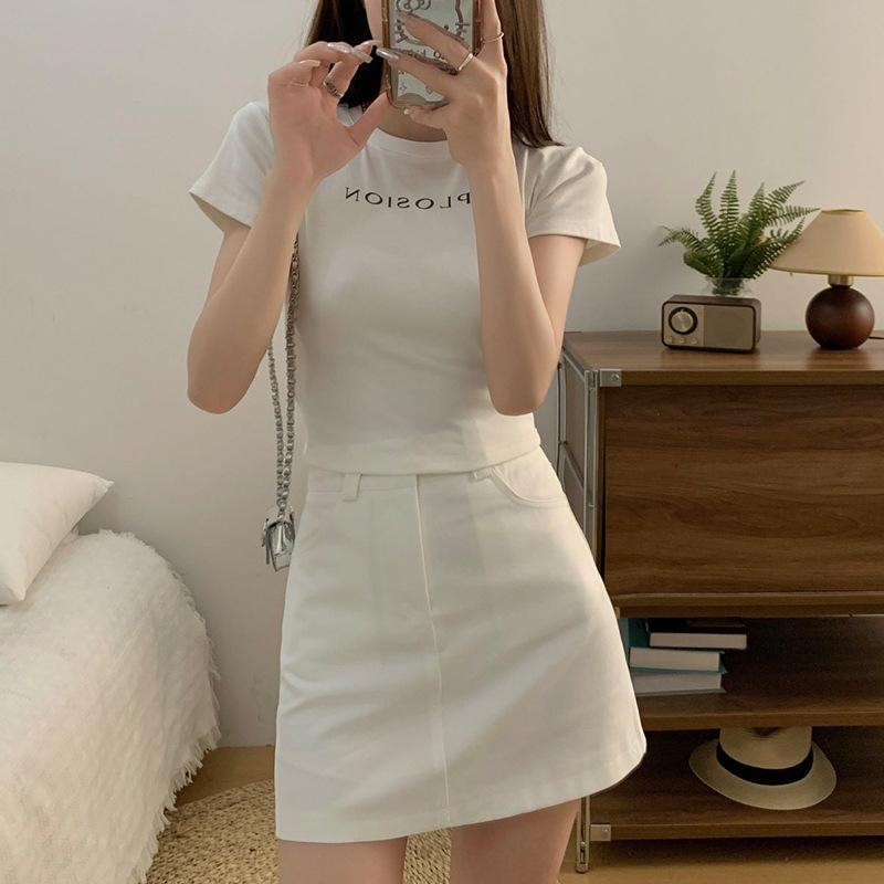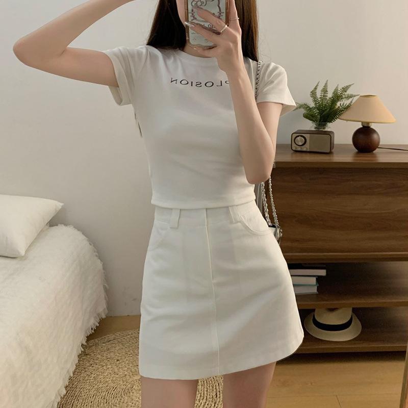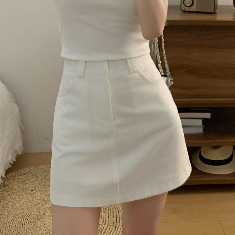 Verano 2024 Nuevo Estilo Coreano Cintura Alta Adelgazante Color Sólido Falda Corta Línea A Combinable Falda de Cadera Cinturón para Mujer