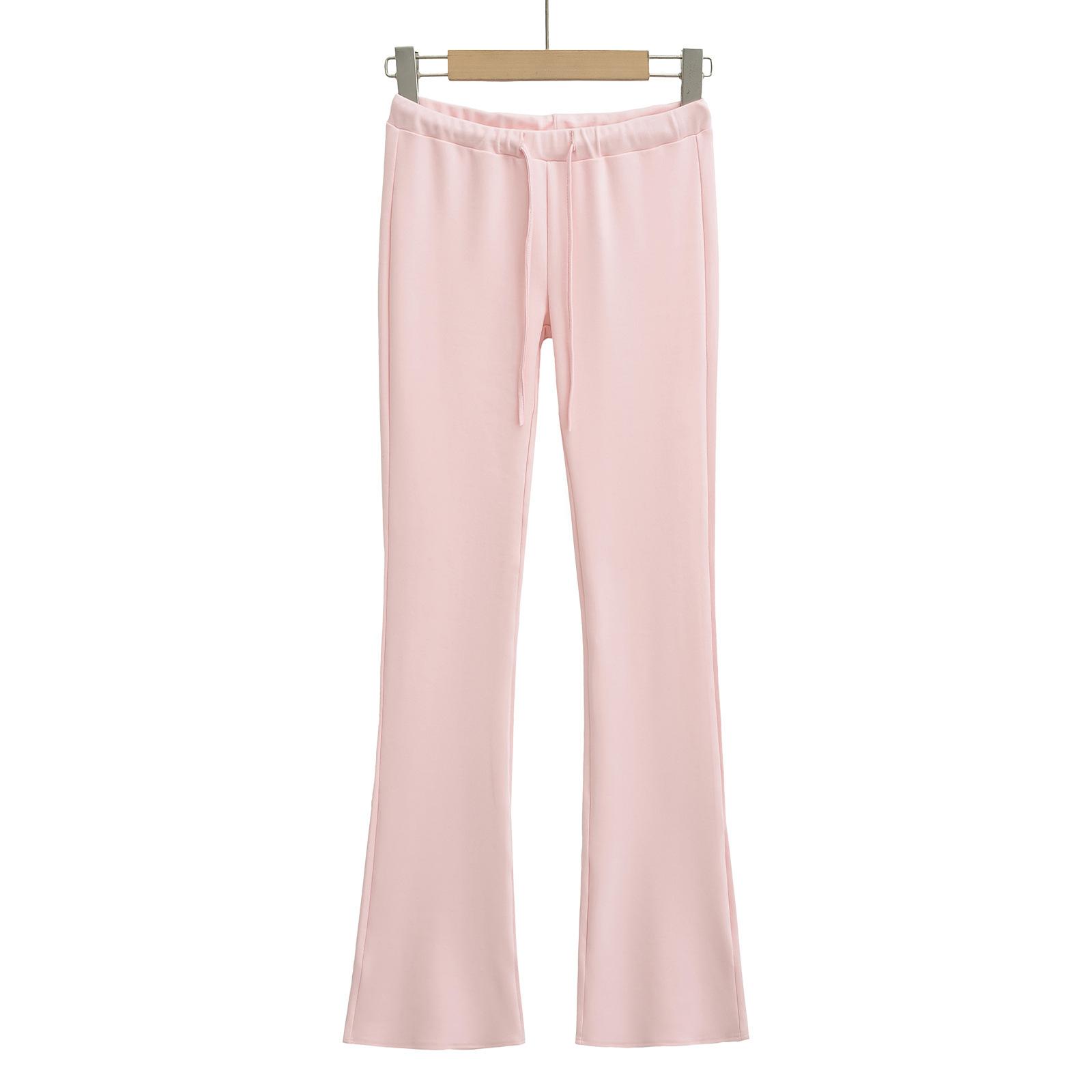 25026-2025 Pantalones Acampanados de Cintura Elástica con Cordón para Mujer Nueva Chica Caliente Estilo Europeo y Americano Pantalones Largos Versátiles Pantalones Casuales Sexys