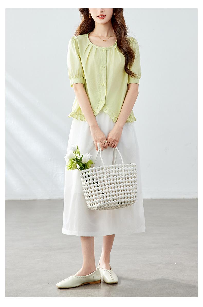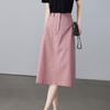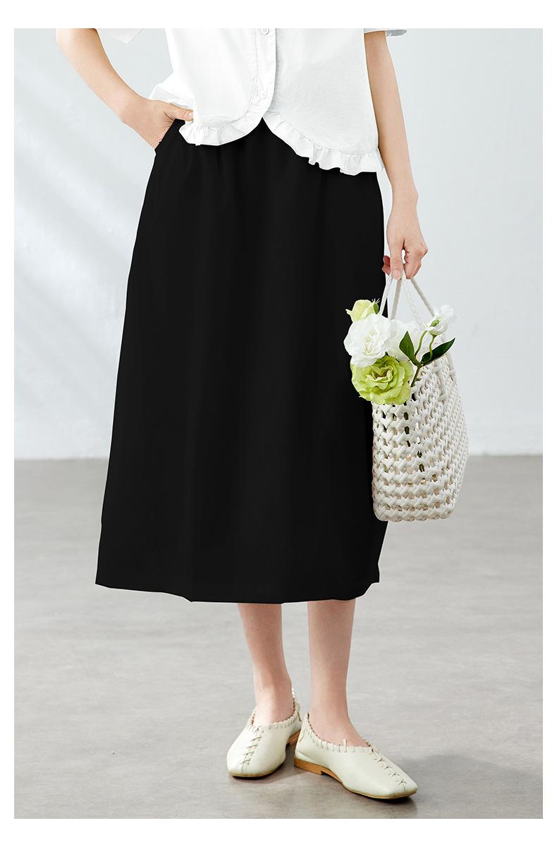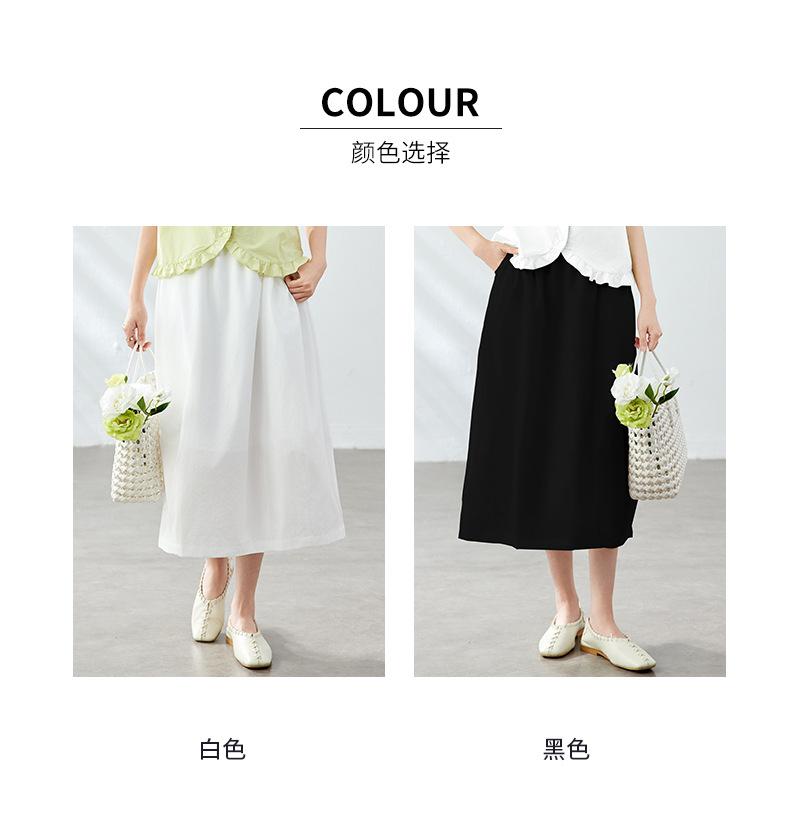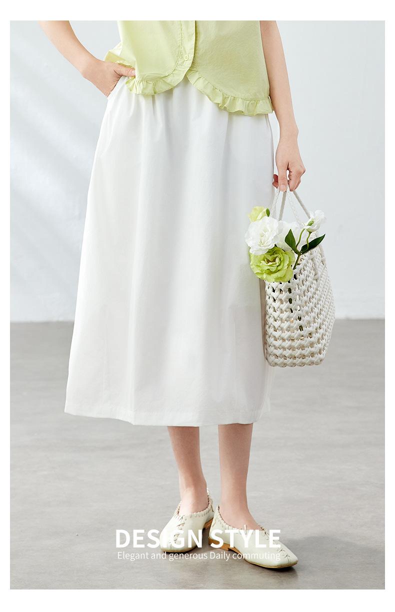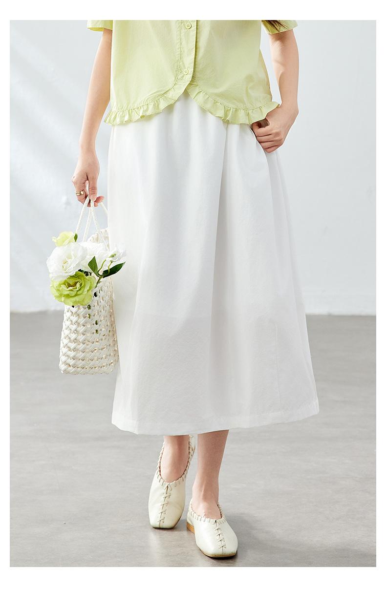 Falda Capullo de Algodón Francesa de Cintura Alta para Mujer Verano Nuevo Transpirable Dulce Suelta Falda Palabra Falda Midi Falda Línea A
