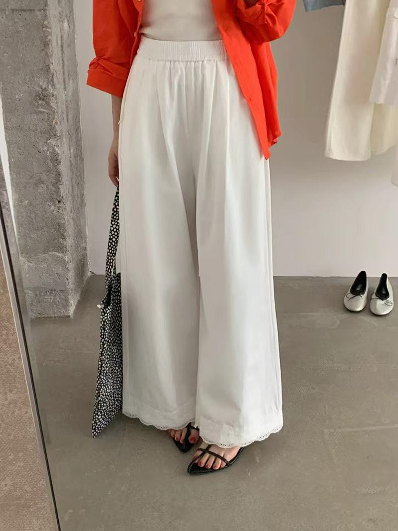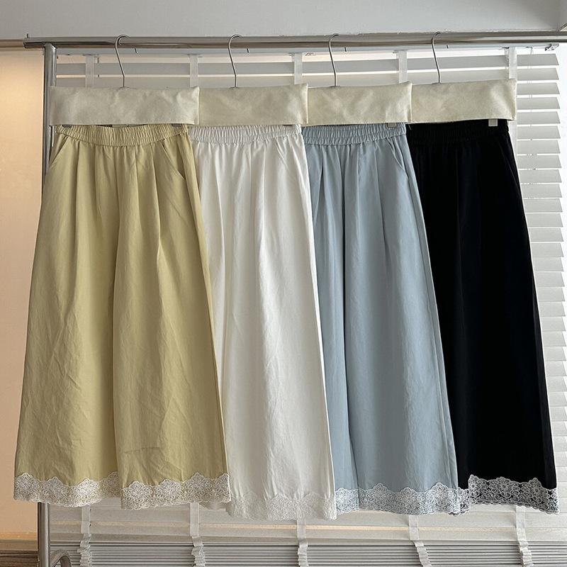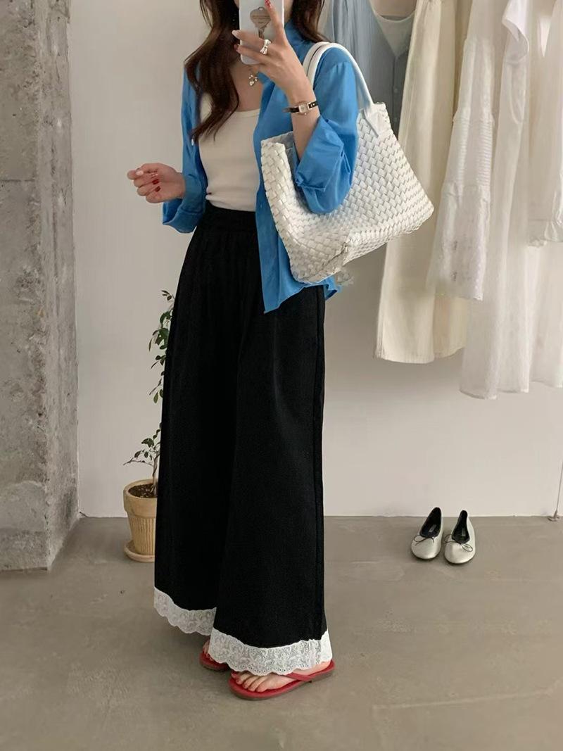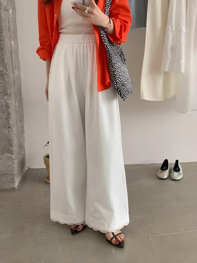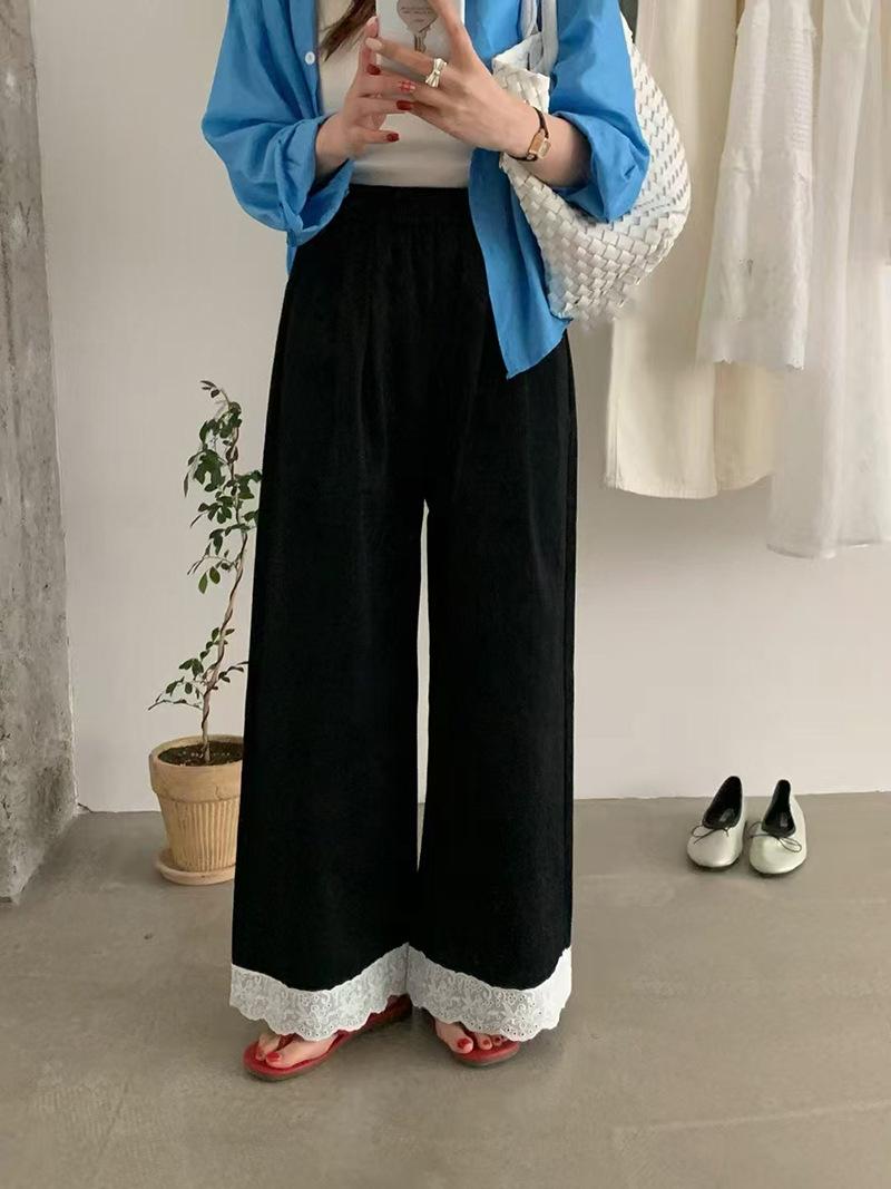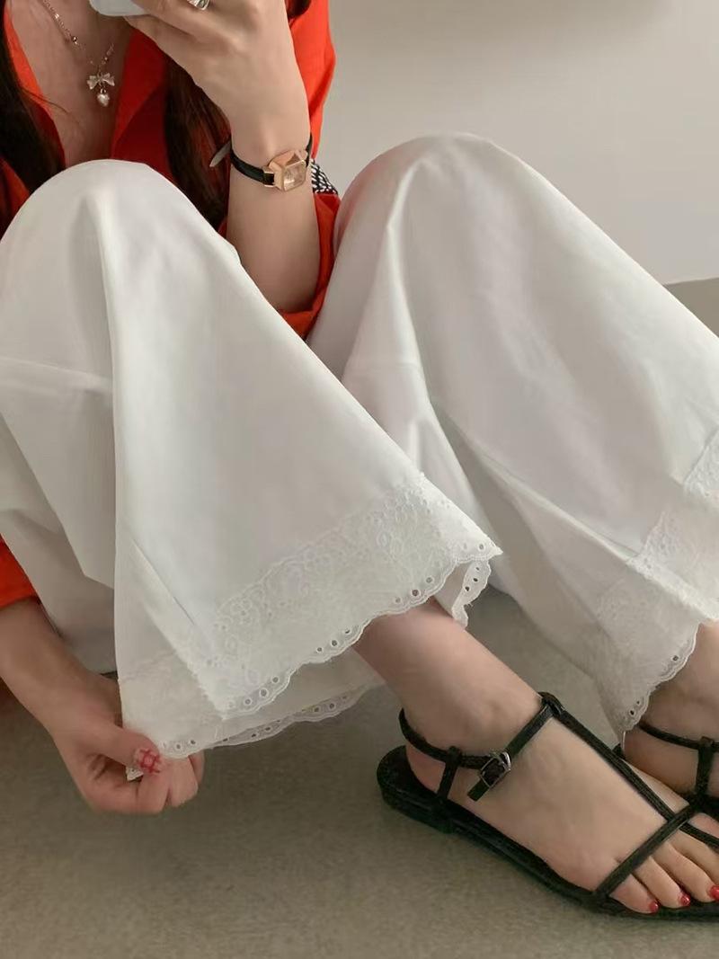 Pantalones de Encaje de Estilo Coreano de Pierna Ancha para Mujer 2025 Primavera y Verano Nuevo de Gama Alta Holgados Adelgazantes Combinan con Todo Pantalones Rectos