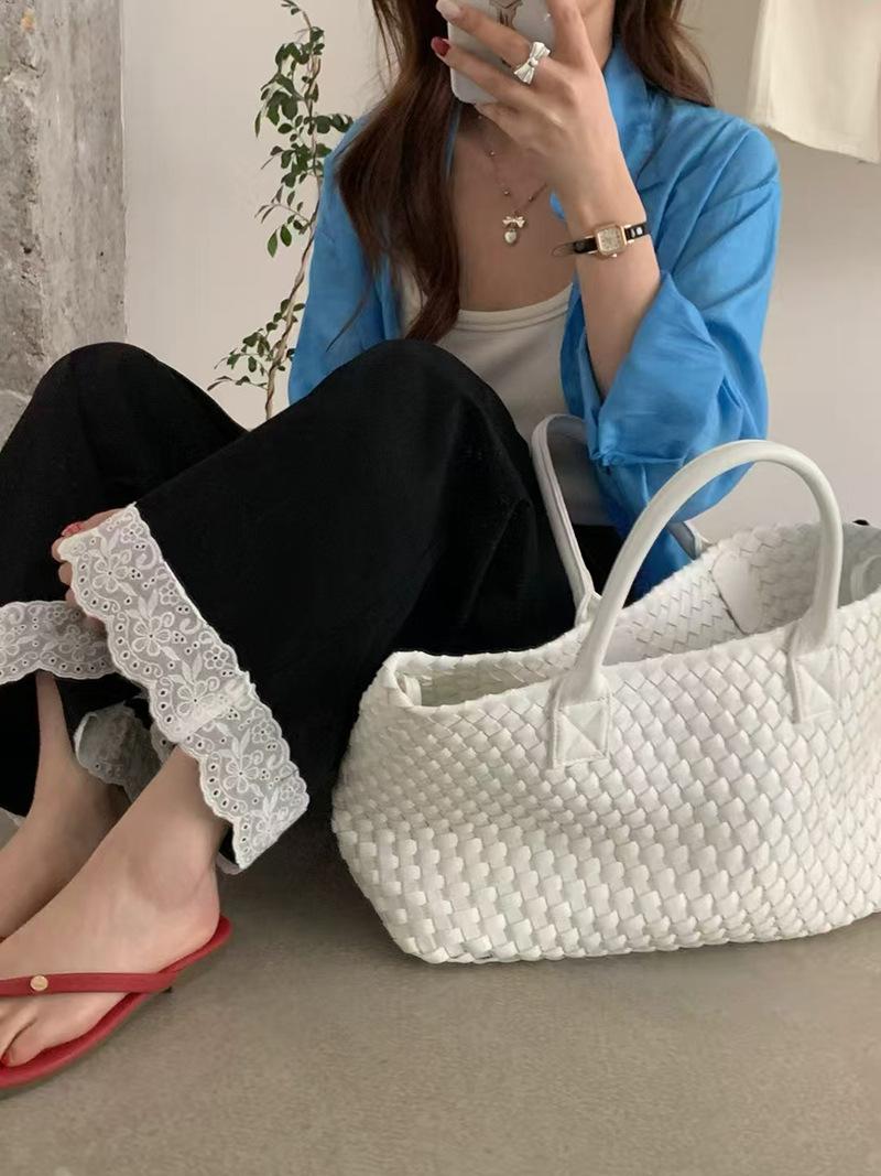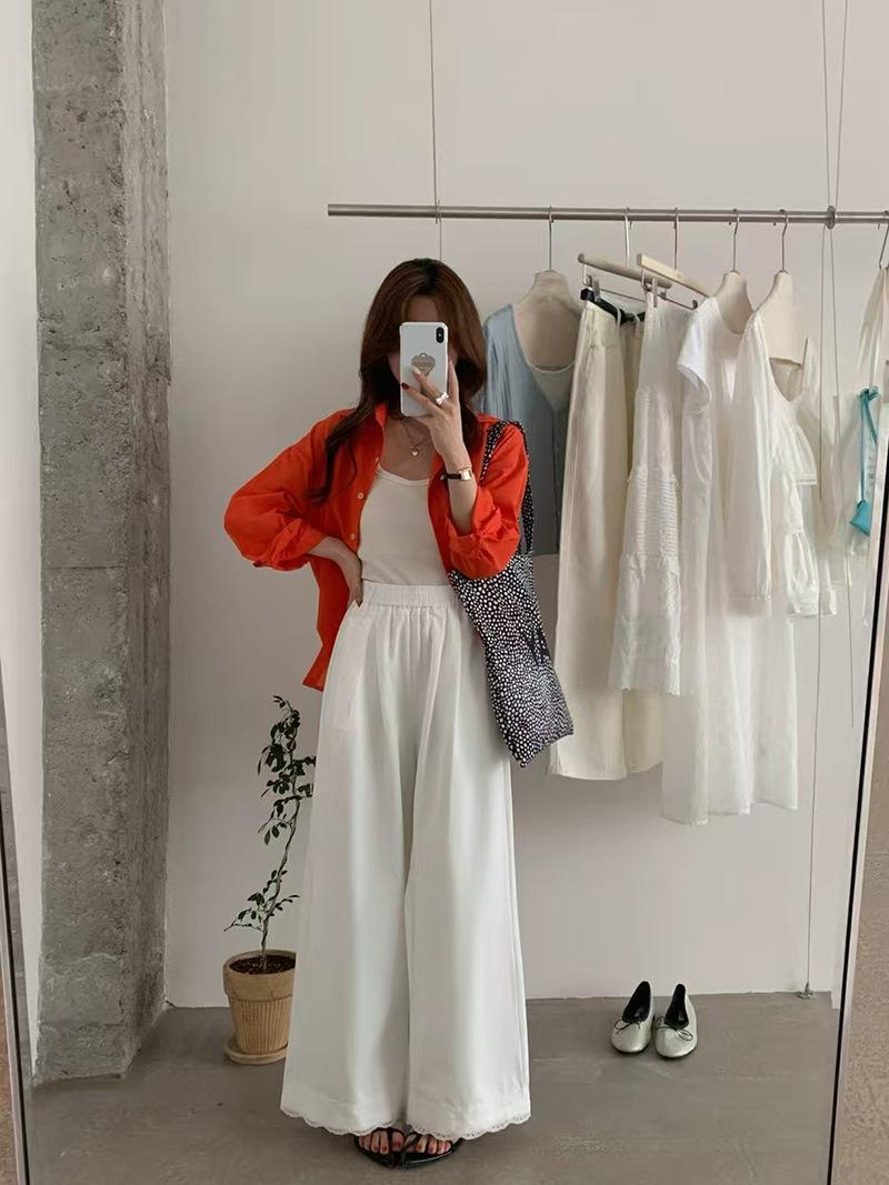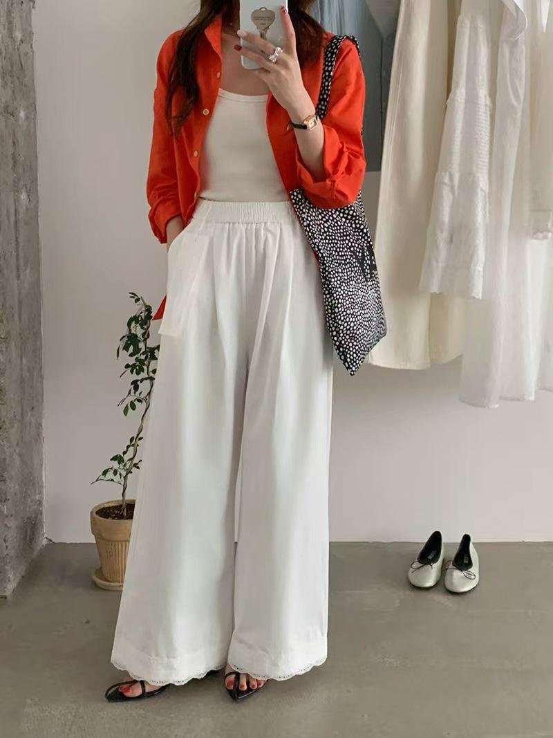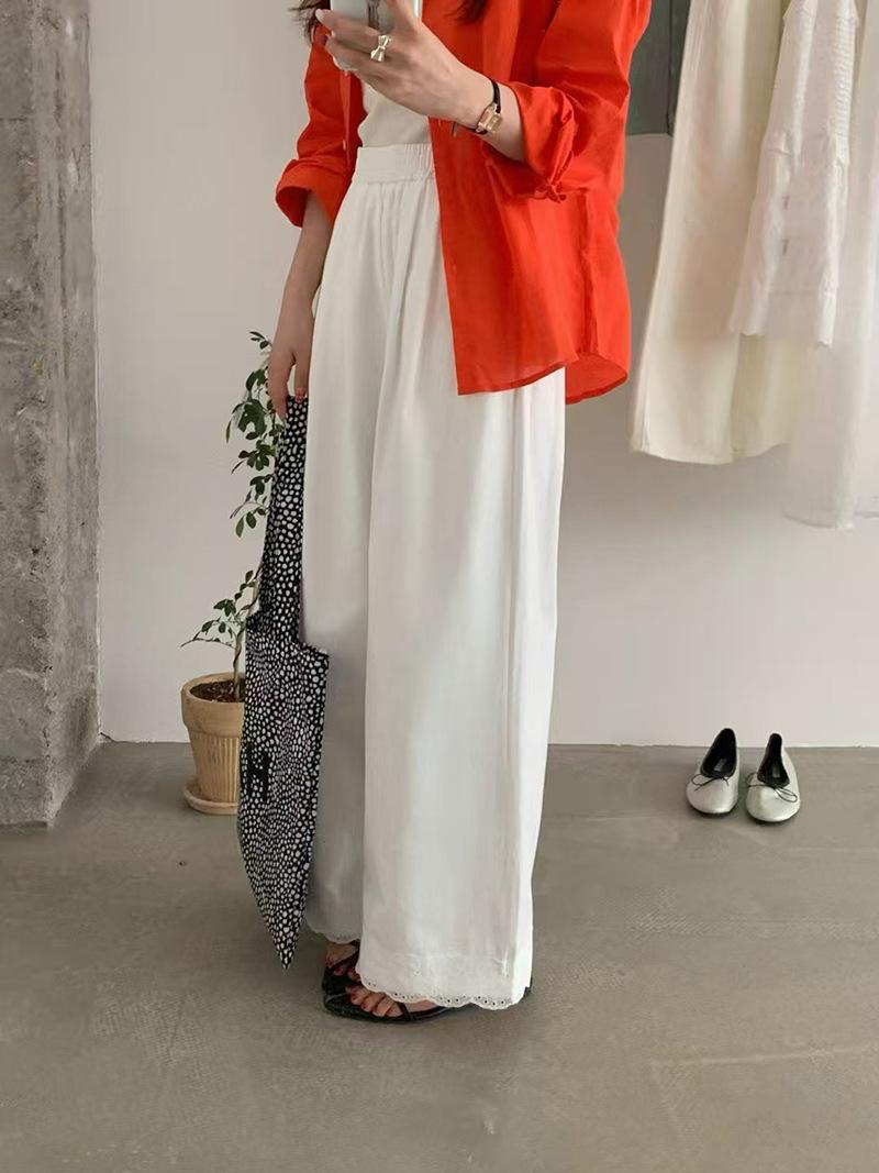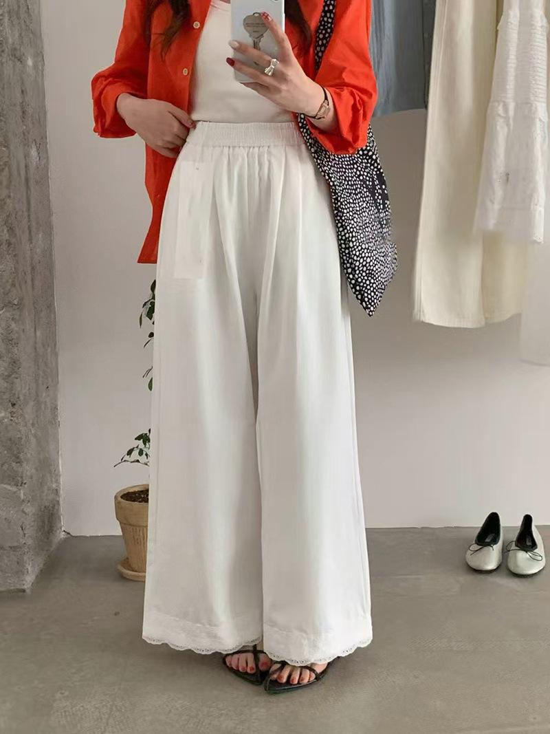 Pantalones de Encaje de Estilo Coreano de Pierna Ancha para Mujer 2025 Primavera y Verano Nuevo de Gama Alta Holgados Adelgazantes Combinan con Todo Pantalones Rectos