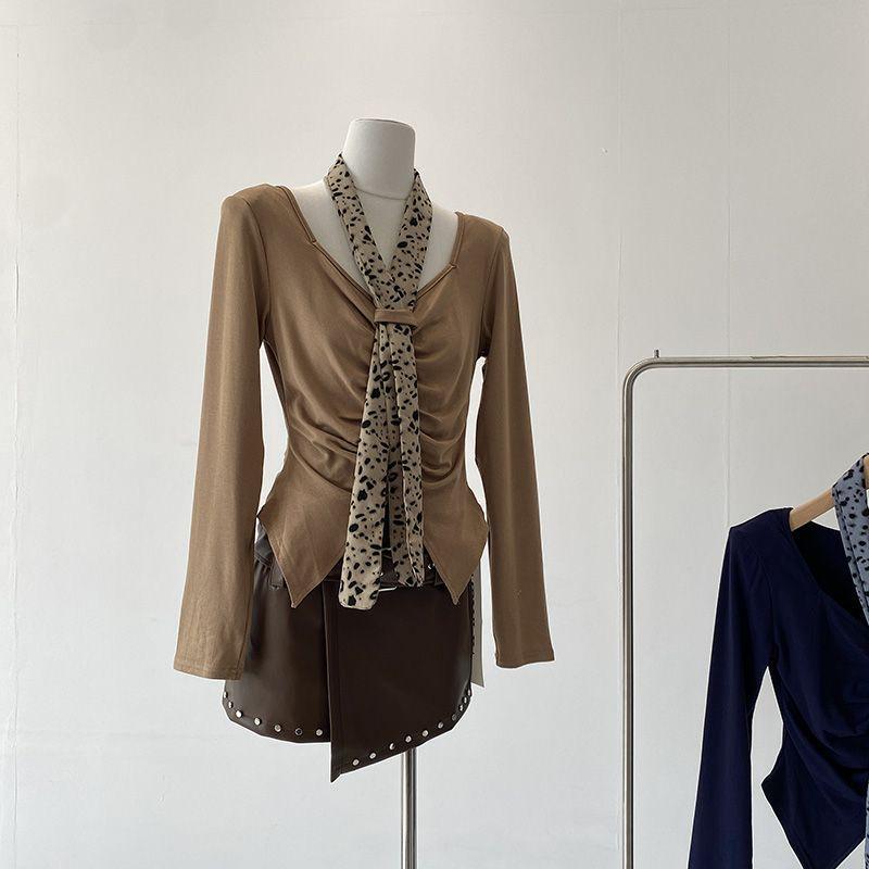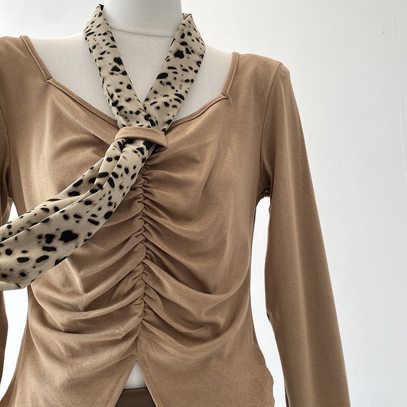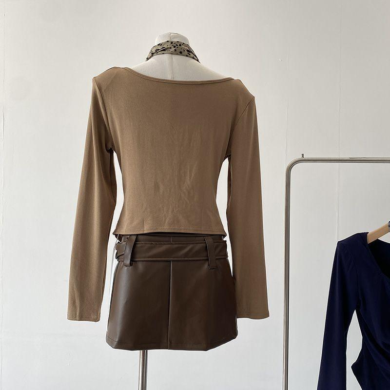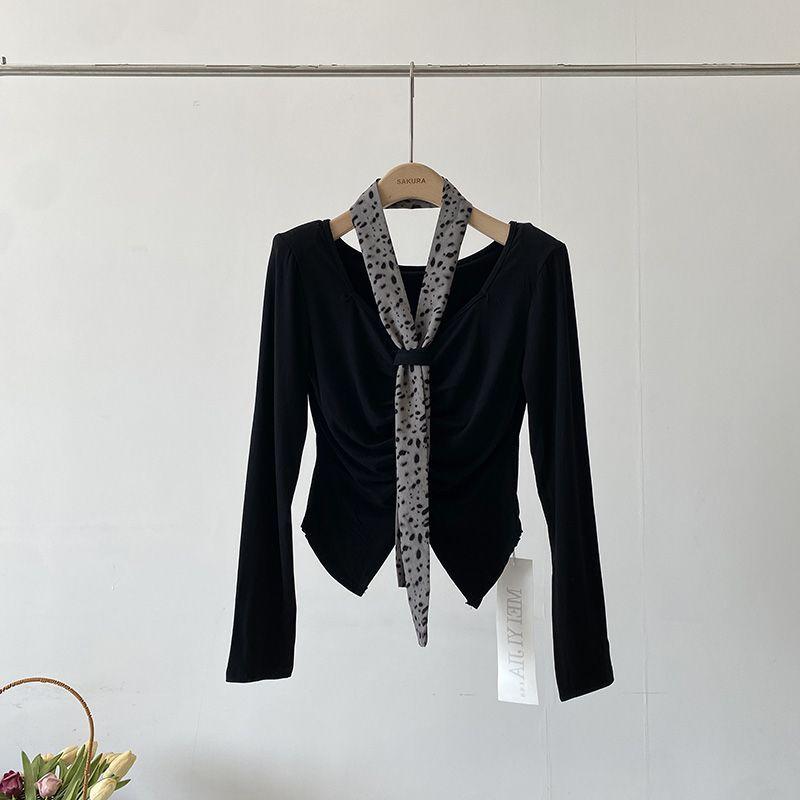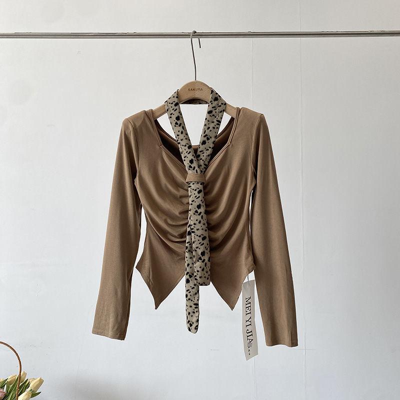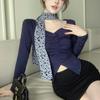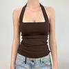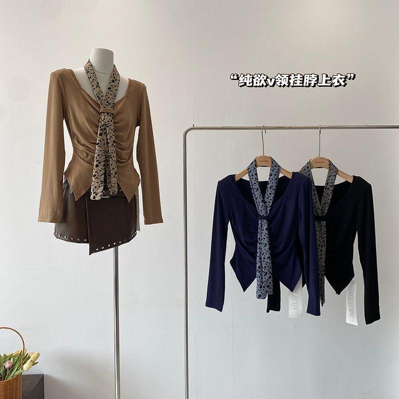 [Venta al por mayor transfronteriza] Camiseta plisada halter de manga larga 2025 Verano Estilo coreano Versátil Sexy Top casual