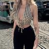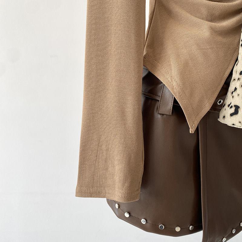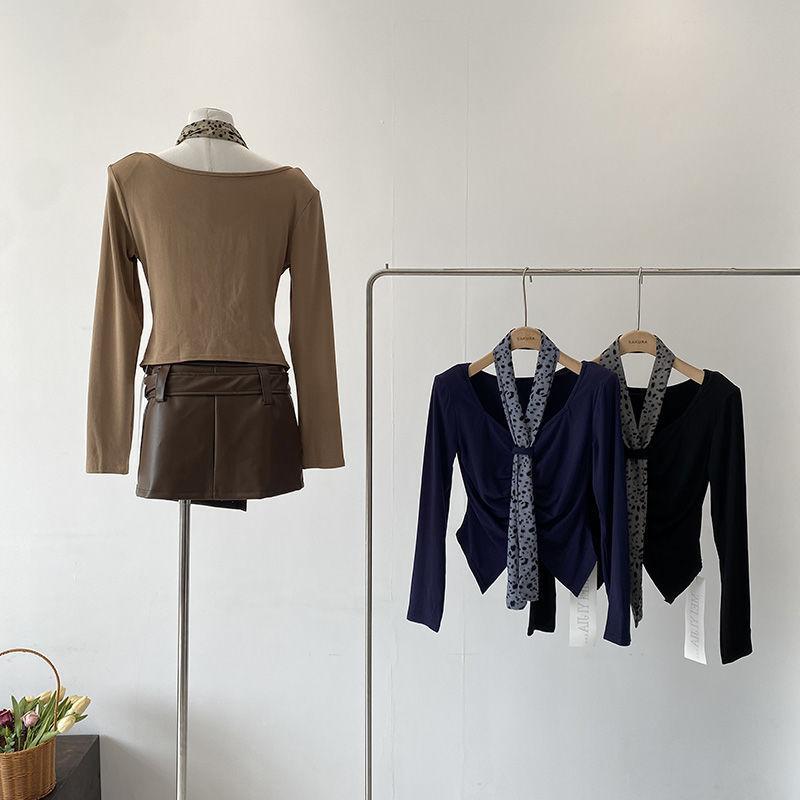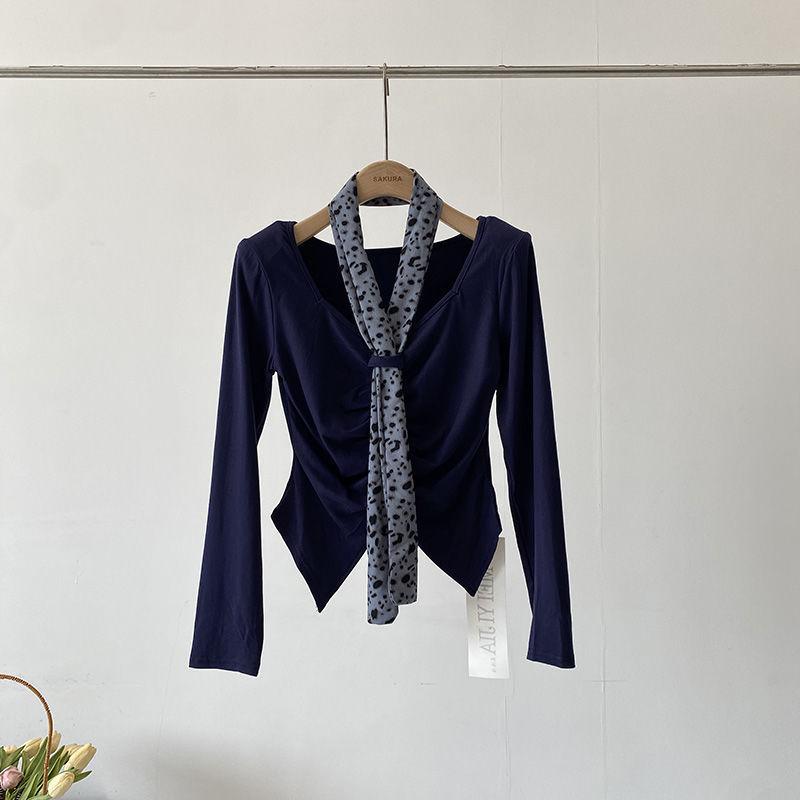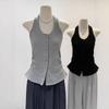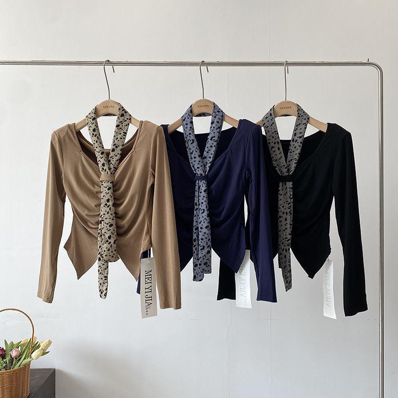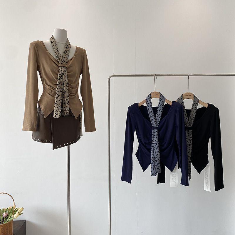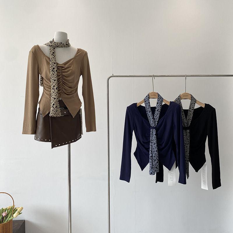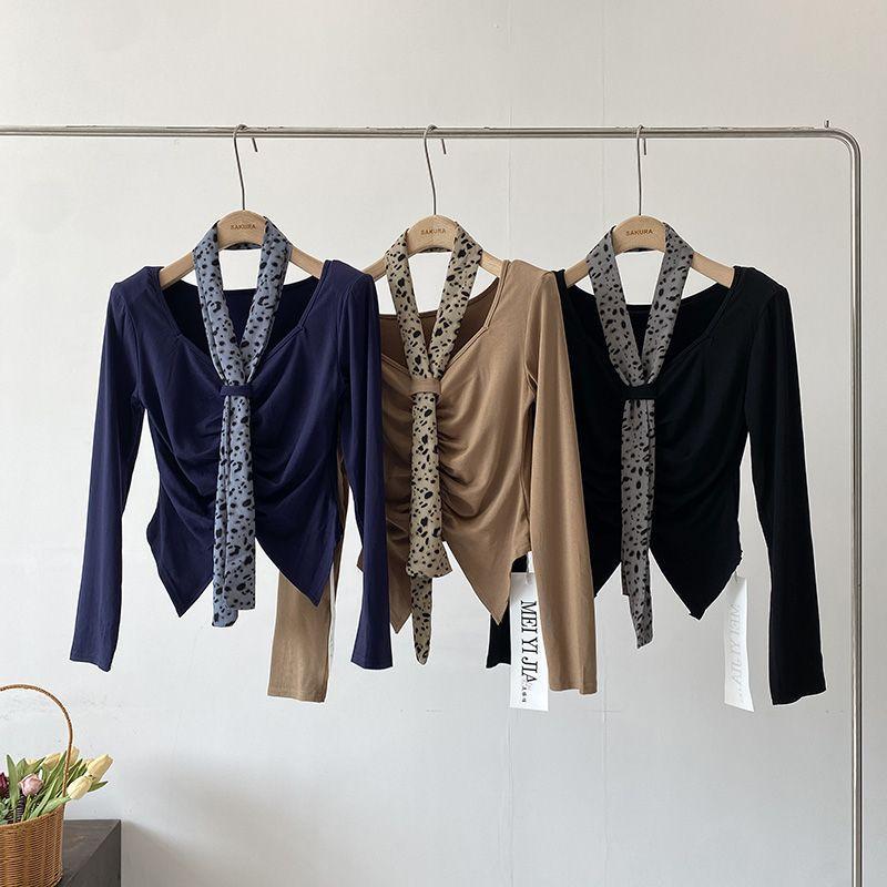 [Venta al por mayor transfronteriza] Camiseta plisada halter de manga larga 2025 Verano Estilo coreano Versátil Sexy Top casual