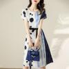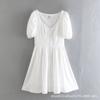 2022 Verano Nuevo Europeo y Americano Francés Retro Hao Ben Cordones Manga de Encaje Cuello en V Moda Vestido Falda Cintura Ajustada