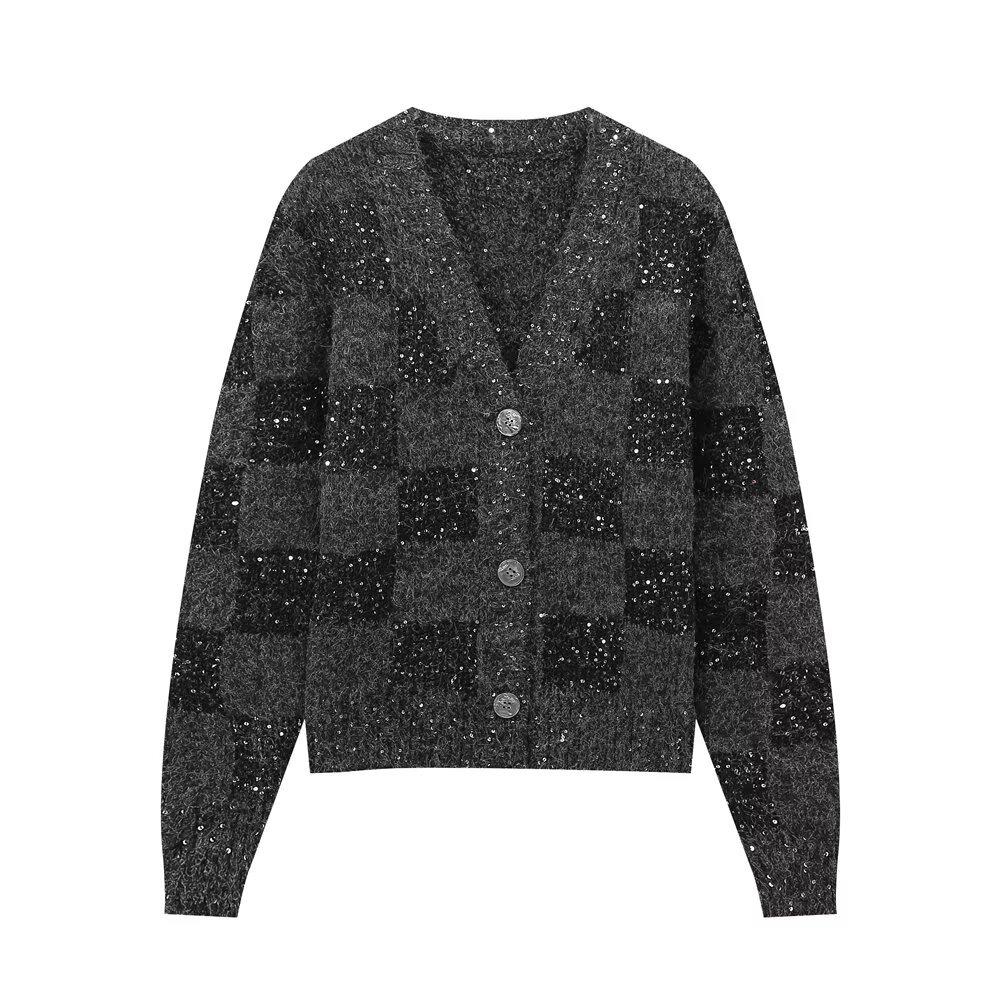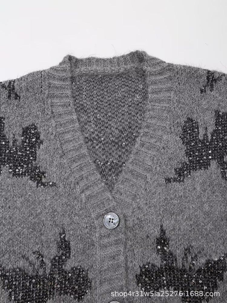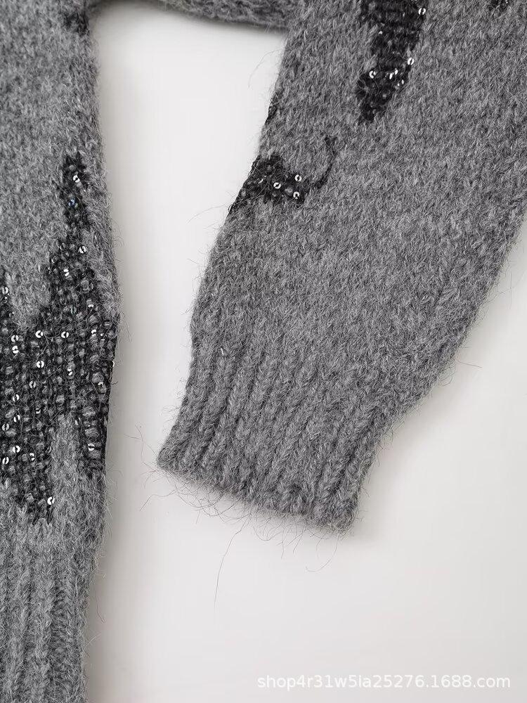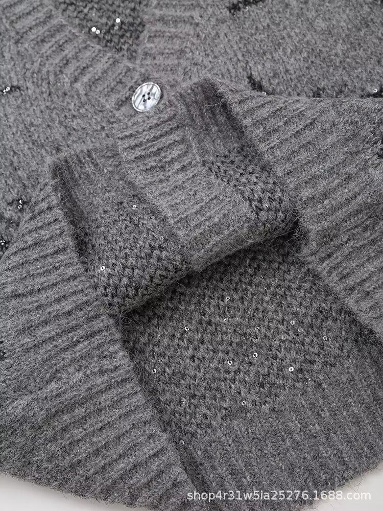 Amazon al por mayor transfronterizo europeo y americano 2024 Otoño e Invierno Nuevo Cárdigan de punto Jacquard Lentejuelas Chaqueta de mujer
