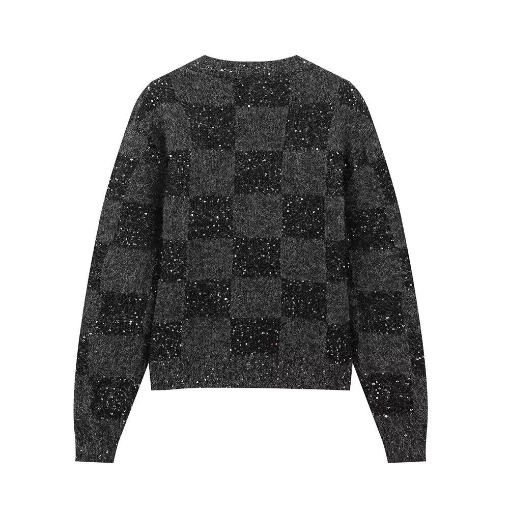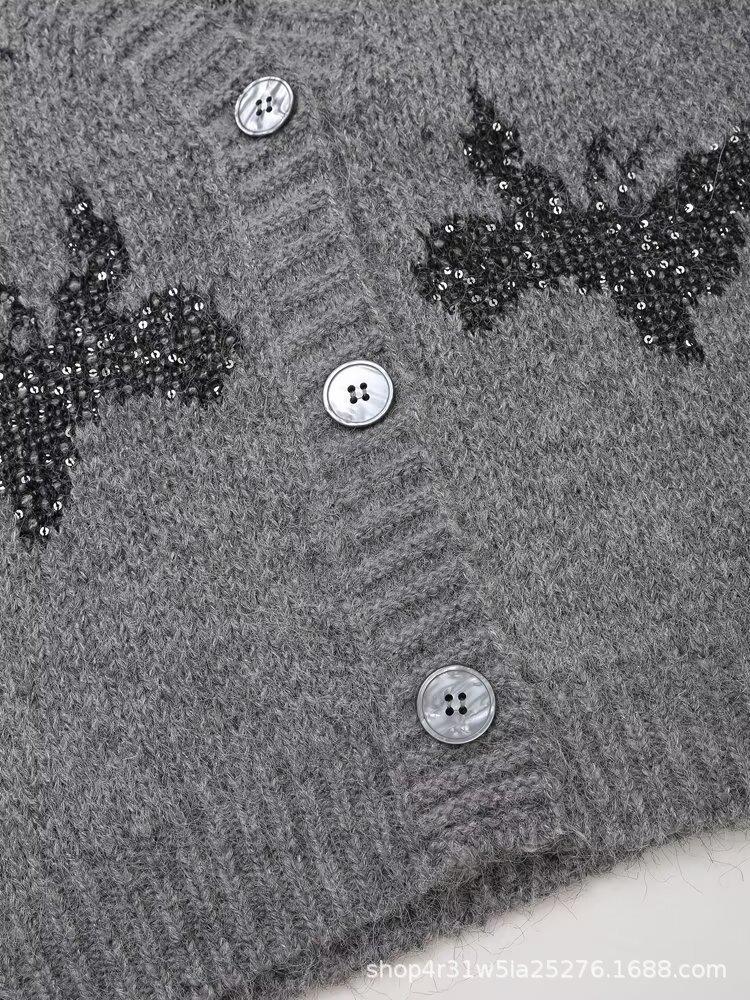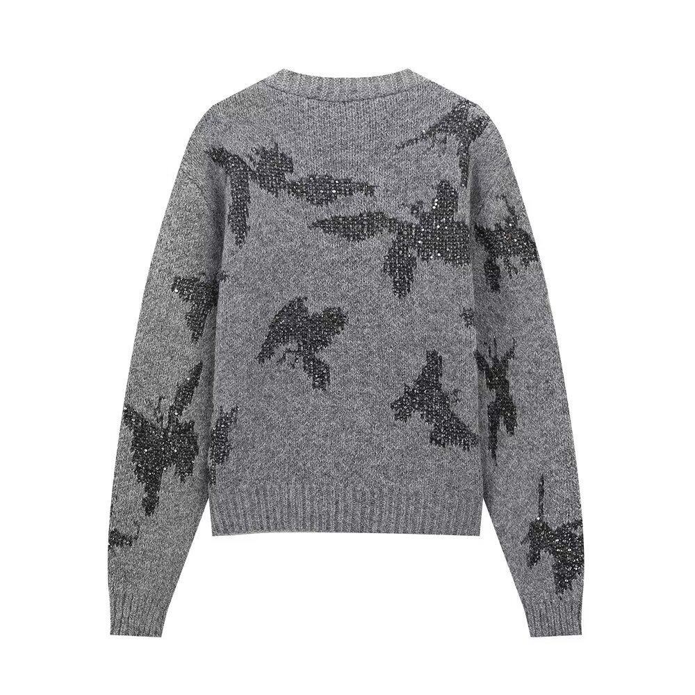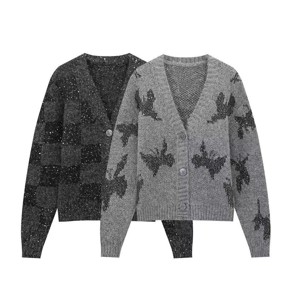 Amazon al por mayor transfronterizo europeo y americano 2024 Otoño e Invierno Nuevo Cárdigan de punto Jacquard Lentejuelas Chaqueta de mujer