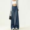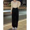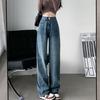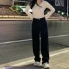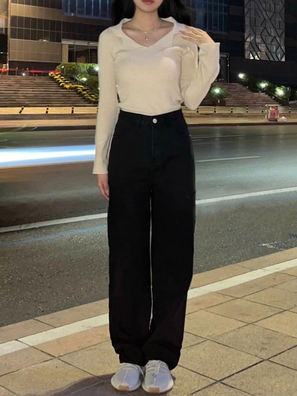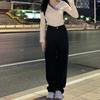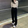 Jeans Negros Slim Look Cintura Alta para Mujer Altos Retro Holgados Pierna Ancha Primavera y Otoño Estilo Coreano Pantalones Rectos