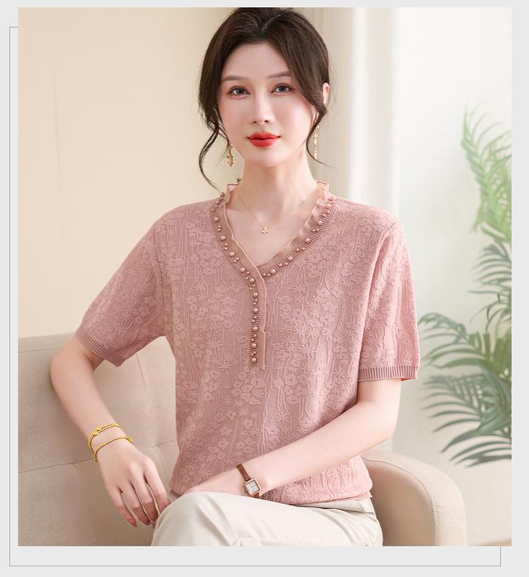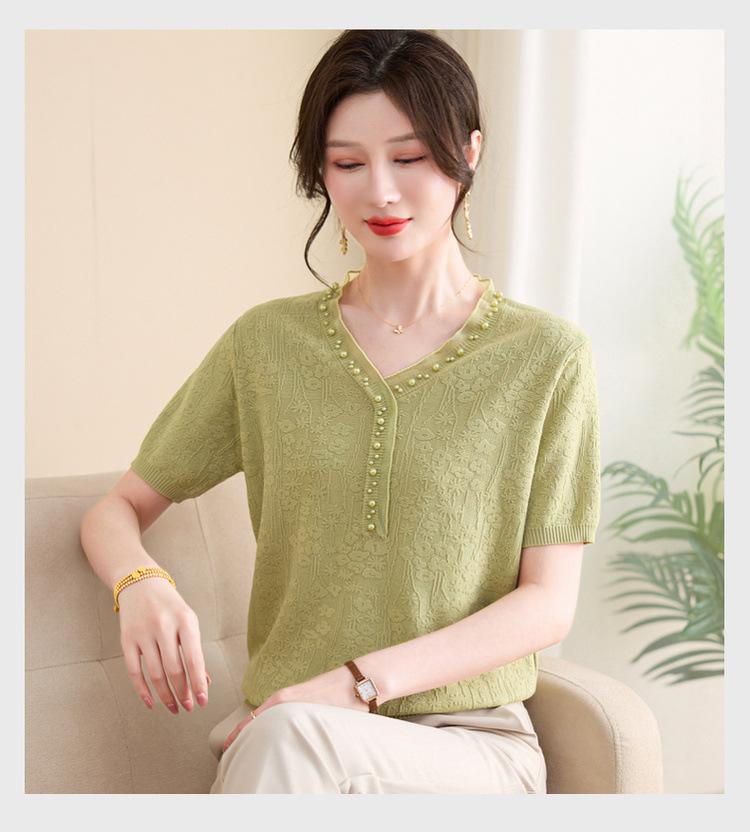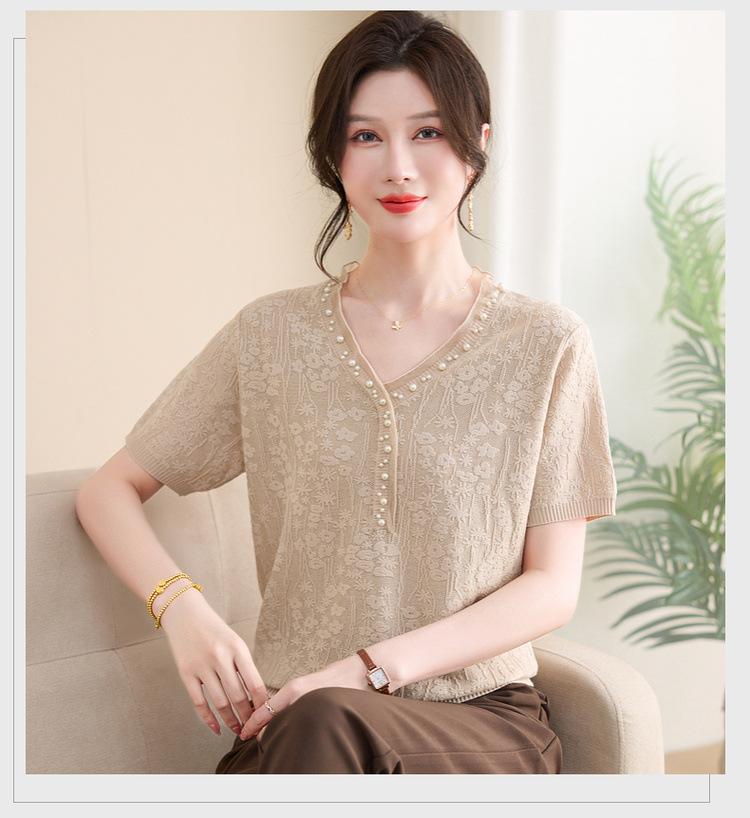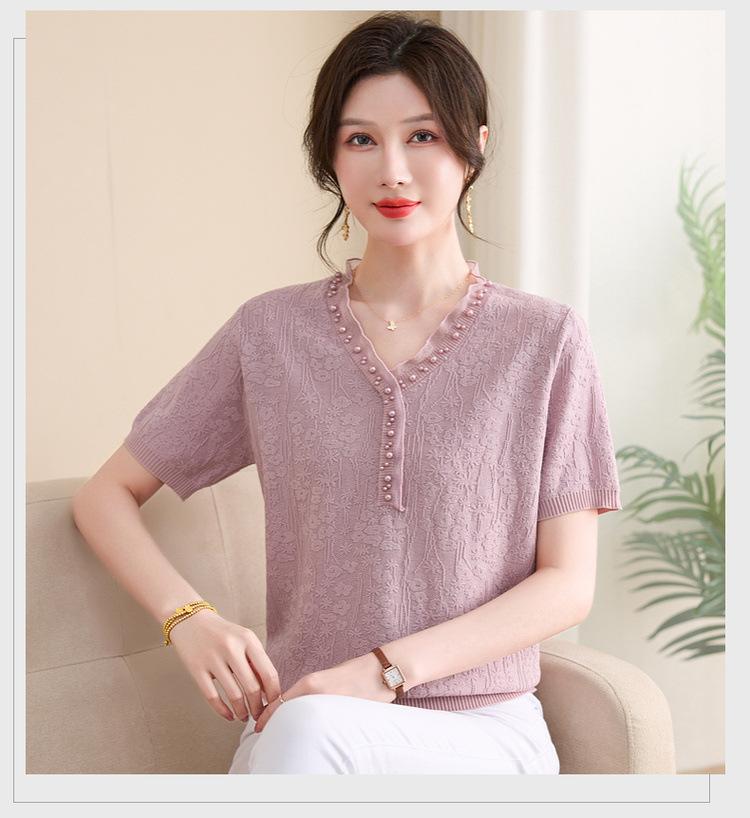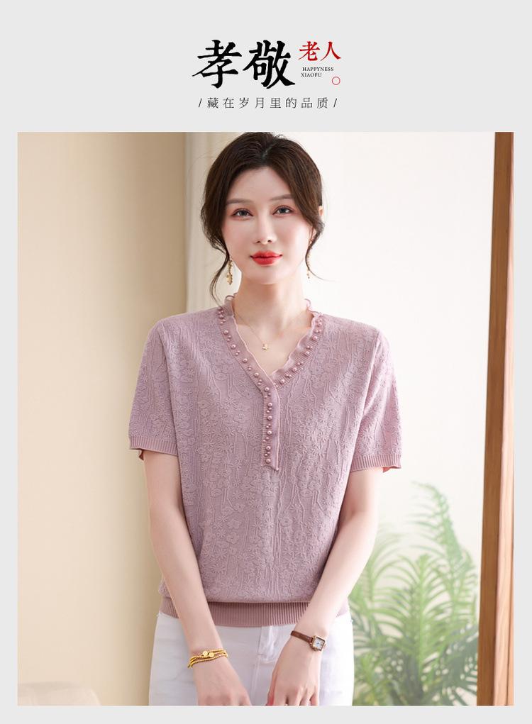 Ropa para Madre 2025 Nueva Primavera y Verano Camiseta Básica de Manga Corta para Mujeres de Mediana Edad y Mayores, Ropa Casual Elegante para el Día a Día