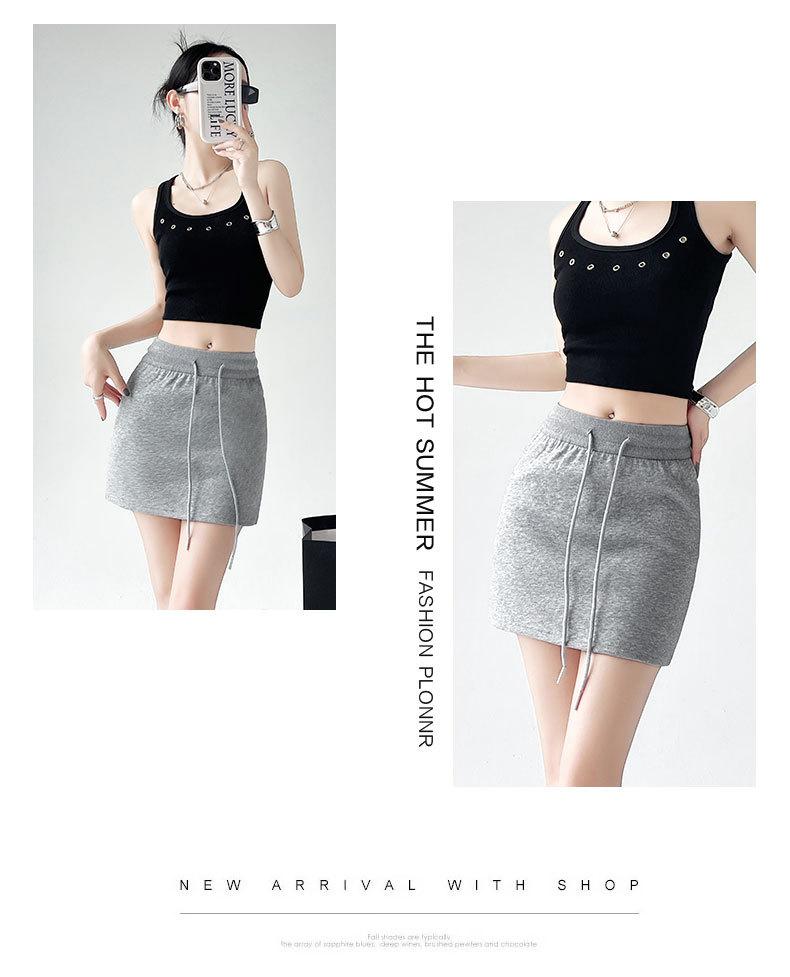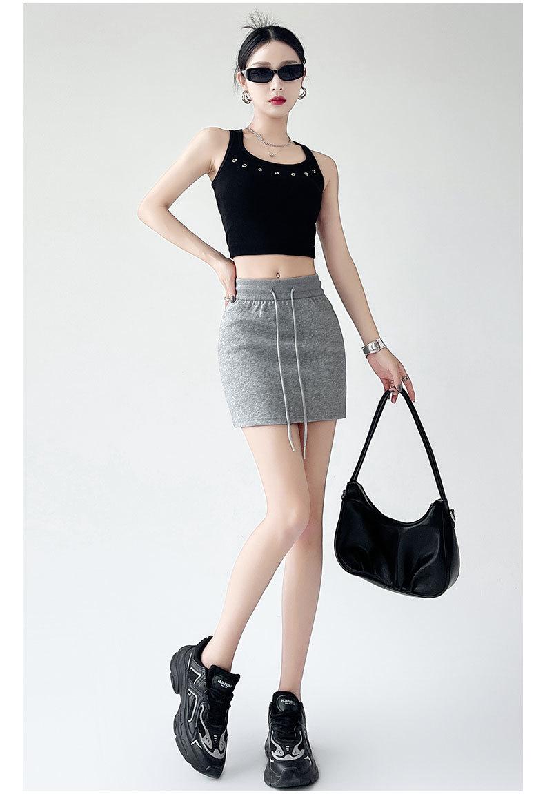 Falda Corta Deportiva de Calidad de TikTok para Mujer Verano 2025 Nueva Versátil Cintura Alta Adelgazante Línea A Hot Girl Media Longitud Ajustada al Cuerpo