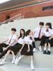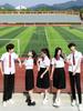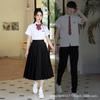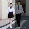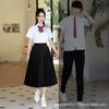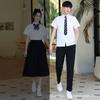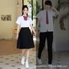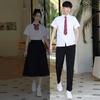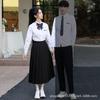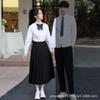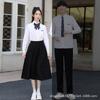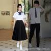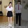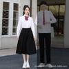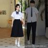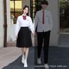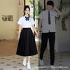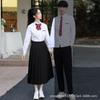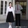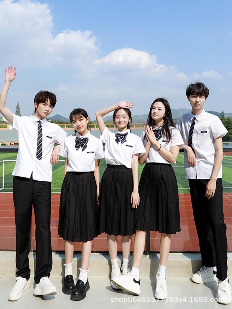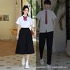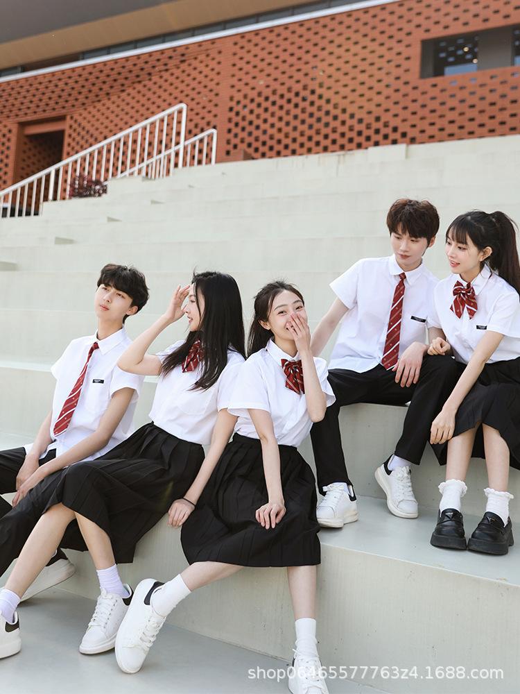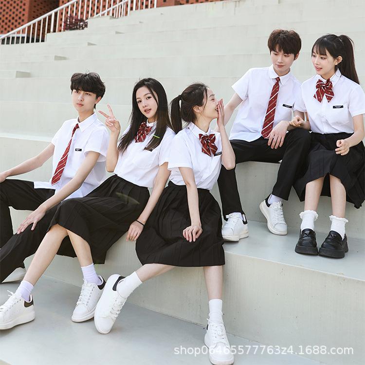 White girl's short sleeves + pleated skirt + red crown tie, White women's short sleeves + pleated midi skirt +...