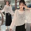 Traje estilo vacaciones para mujer, verano nuevo, dulce y suave, blusa larga con protección solar, vestido floral, conjunto de dos piezas