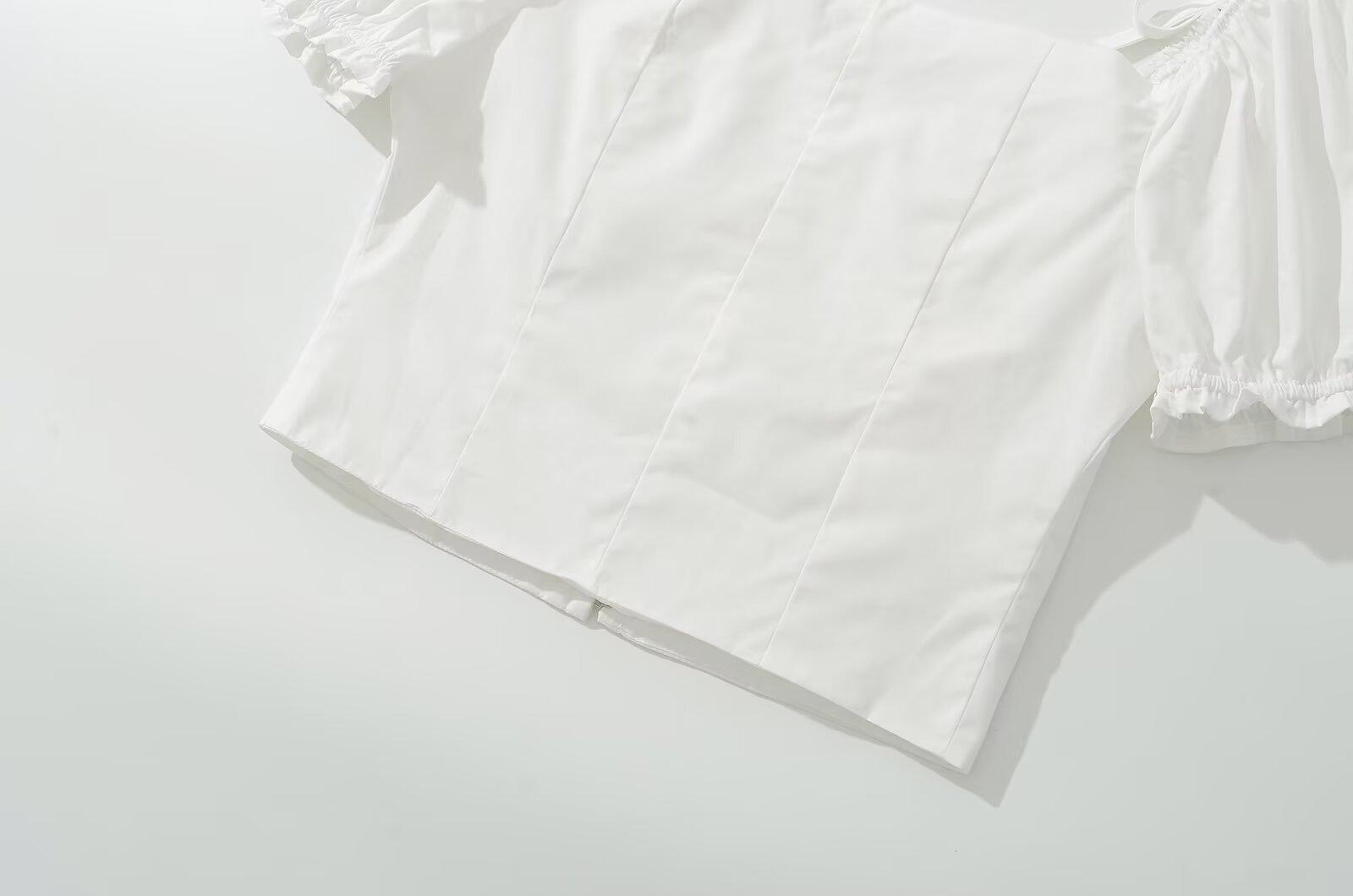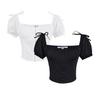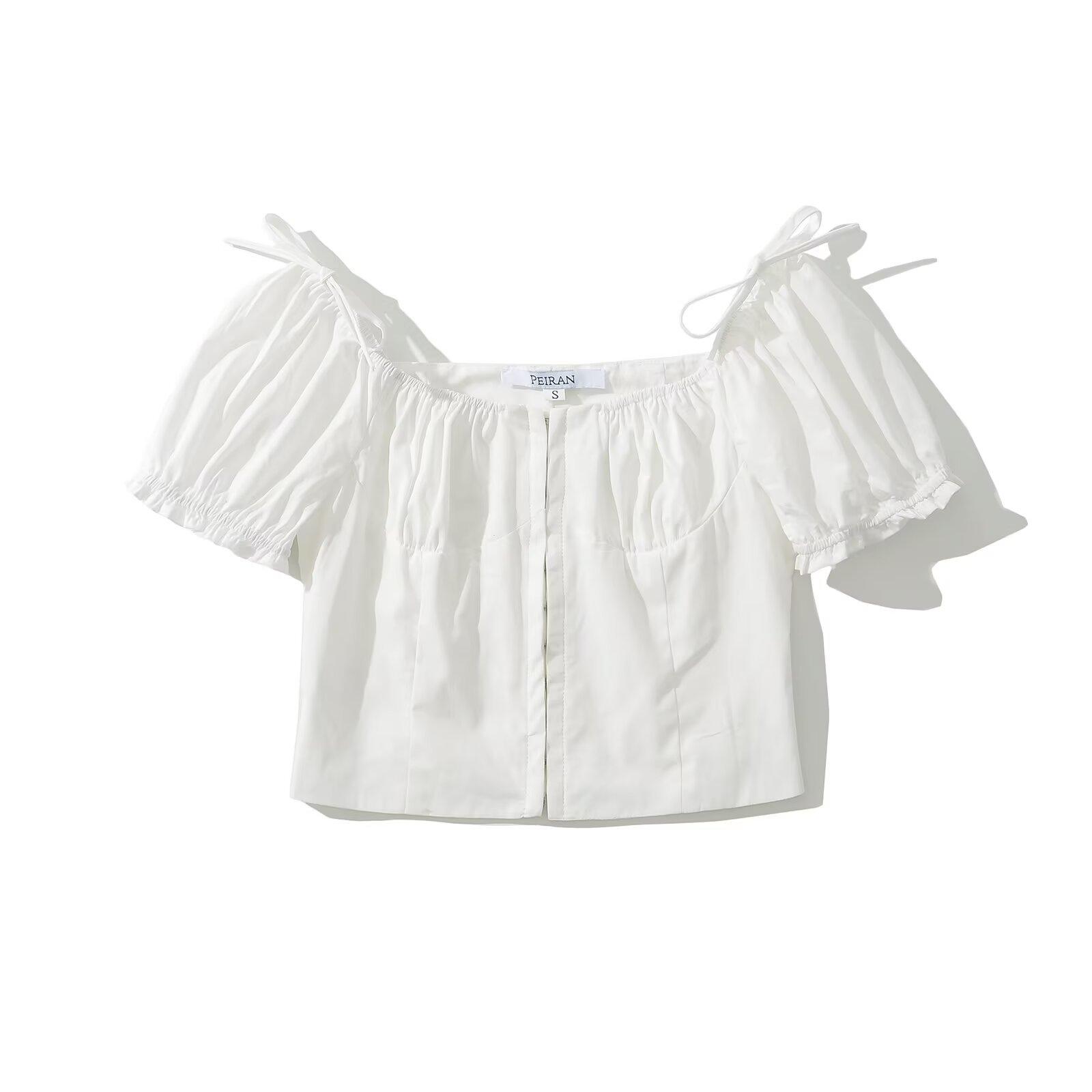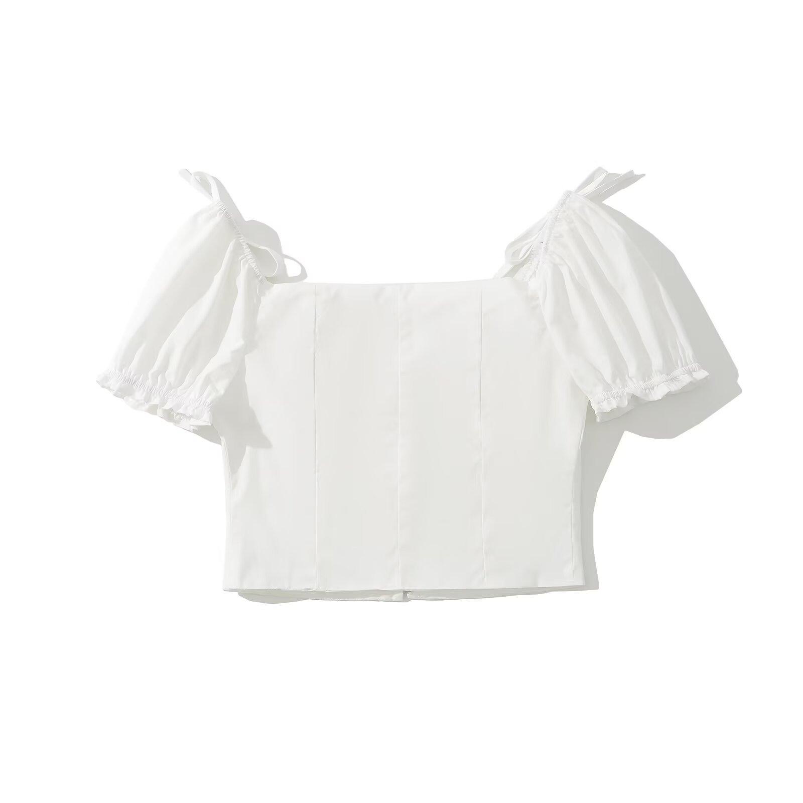 2024 Nueva Ropa de Invierno para Mujer Estilo Europeo y Americano Moda Sencilla Versátil Cuello Cuadrado Top Blanco de Manga Corta