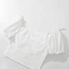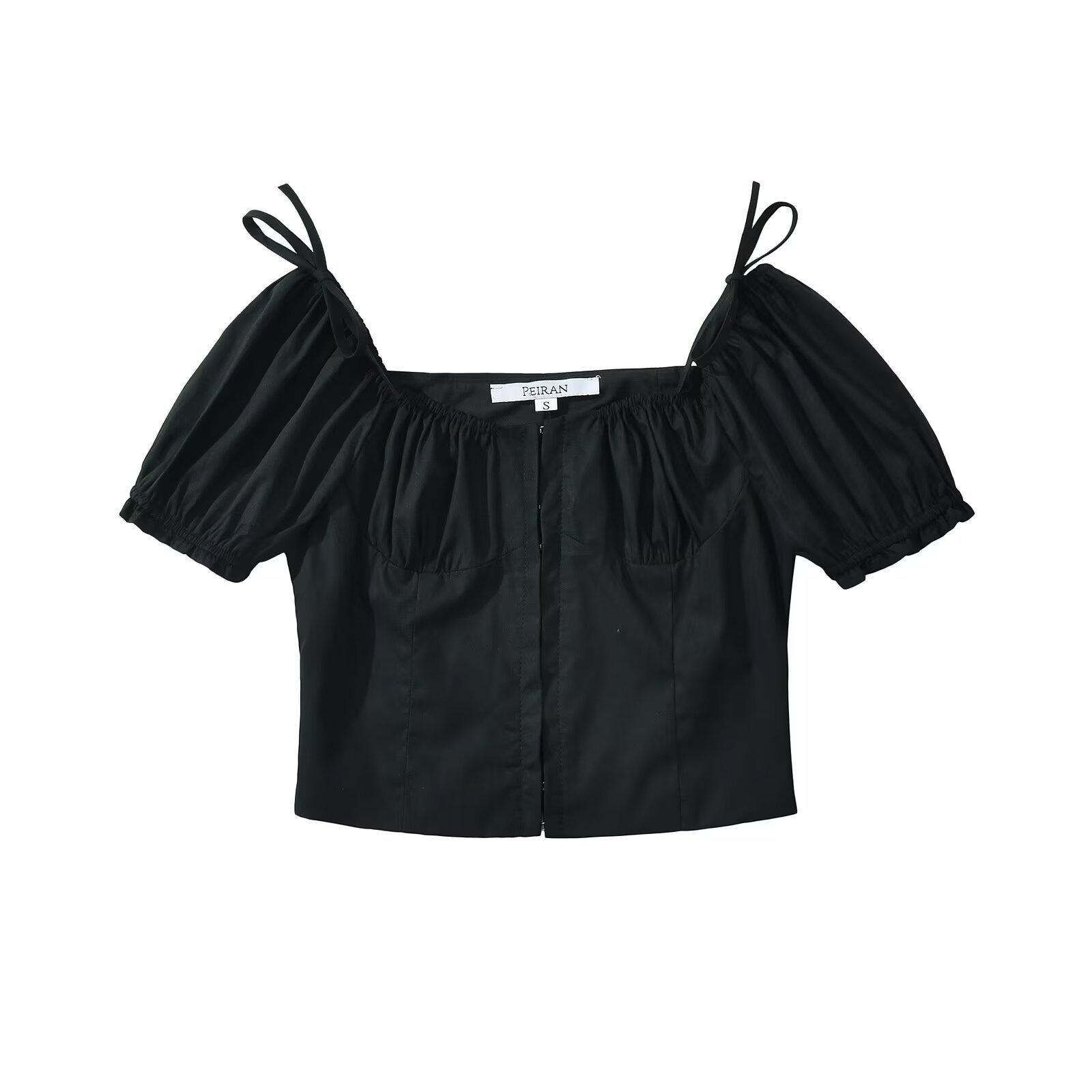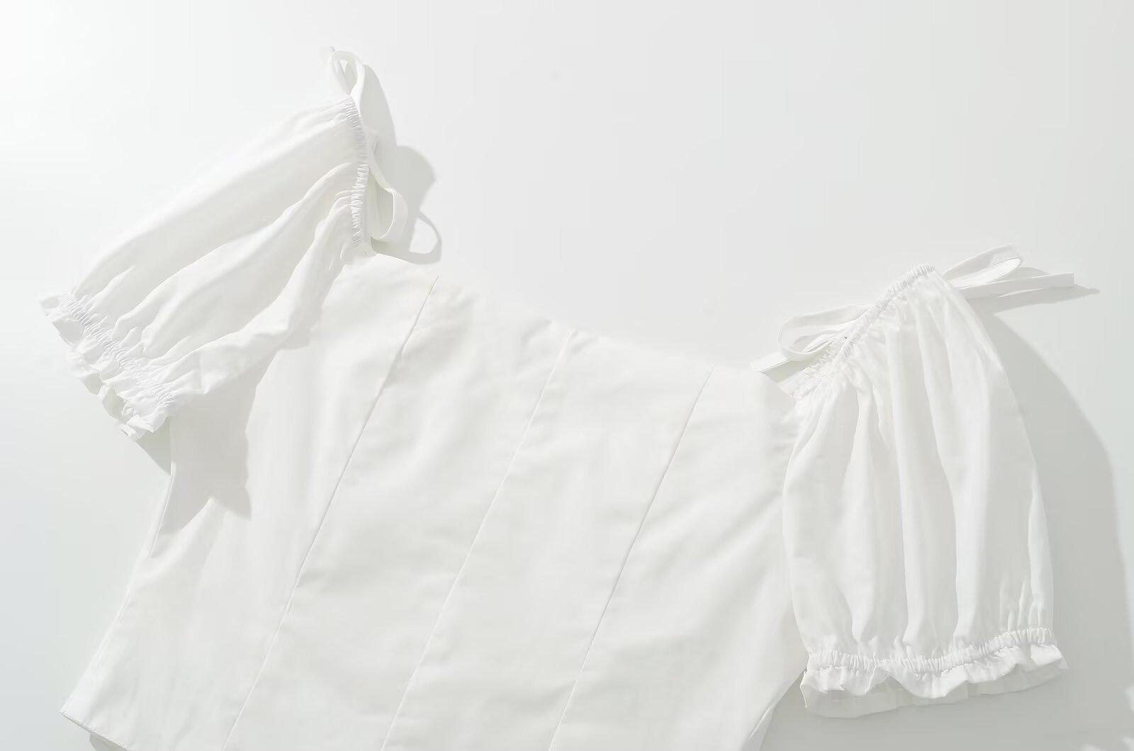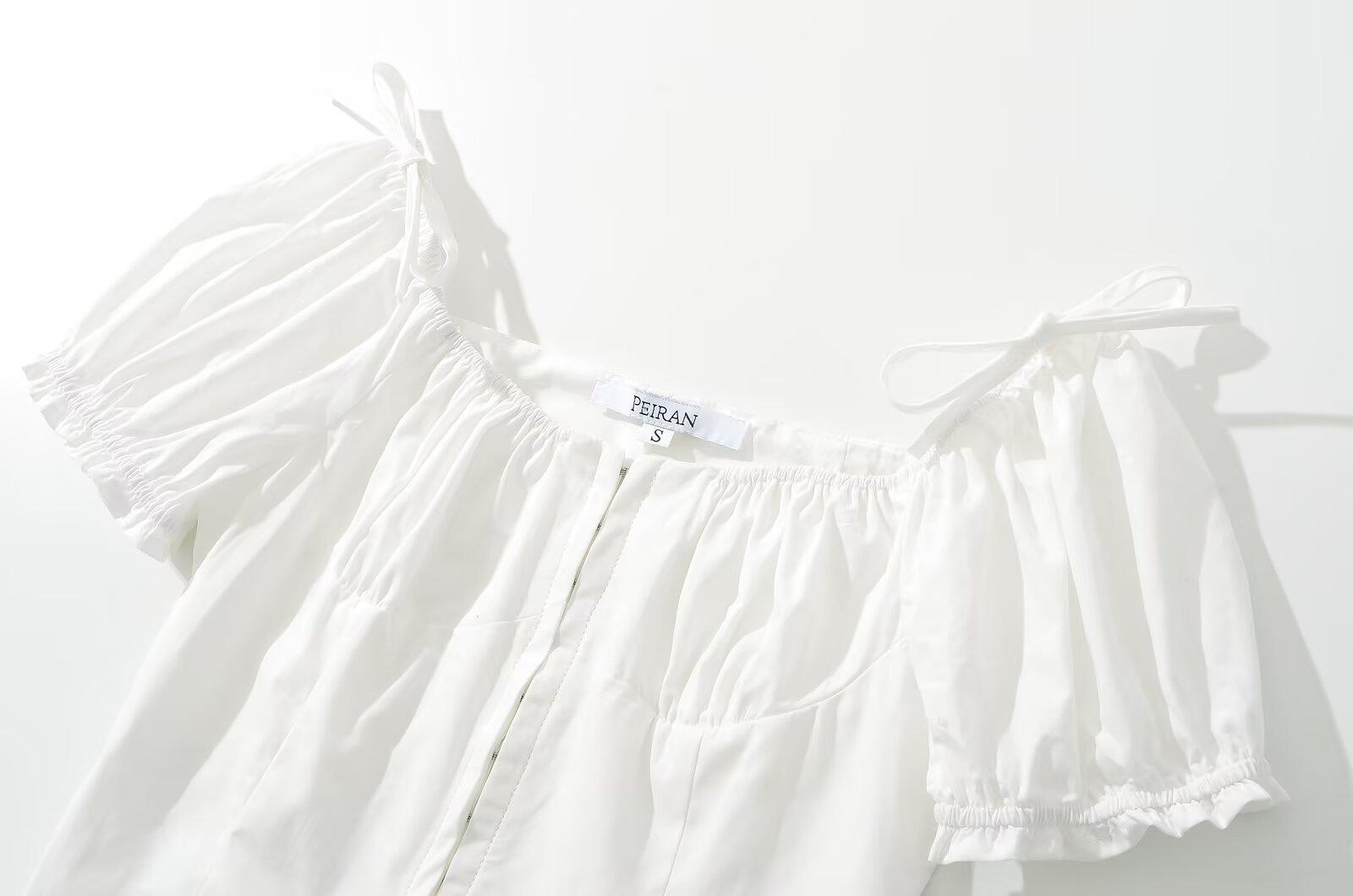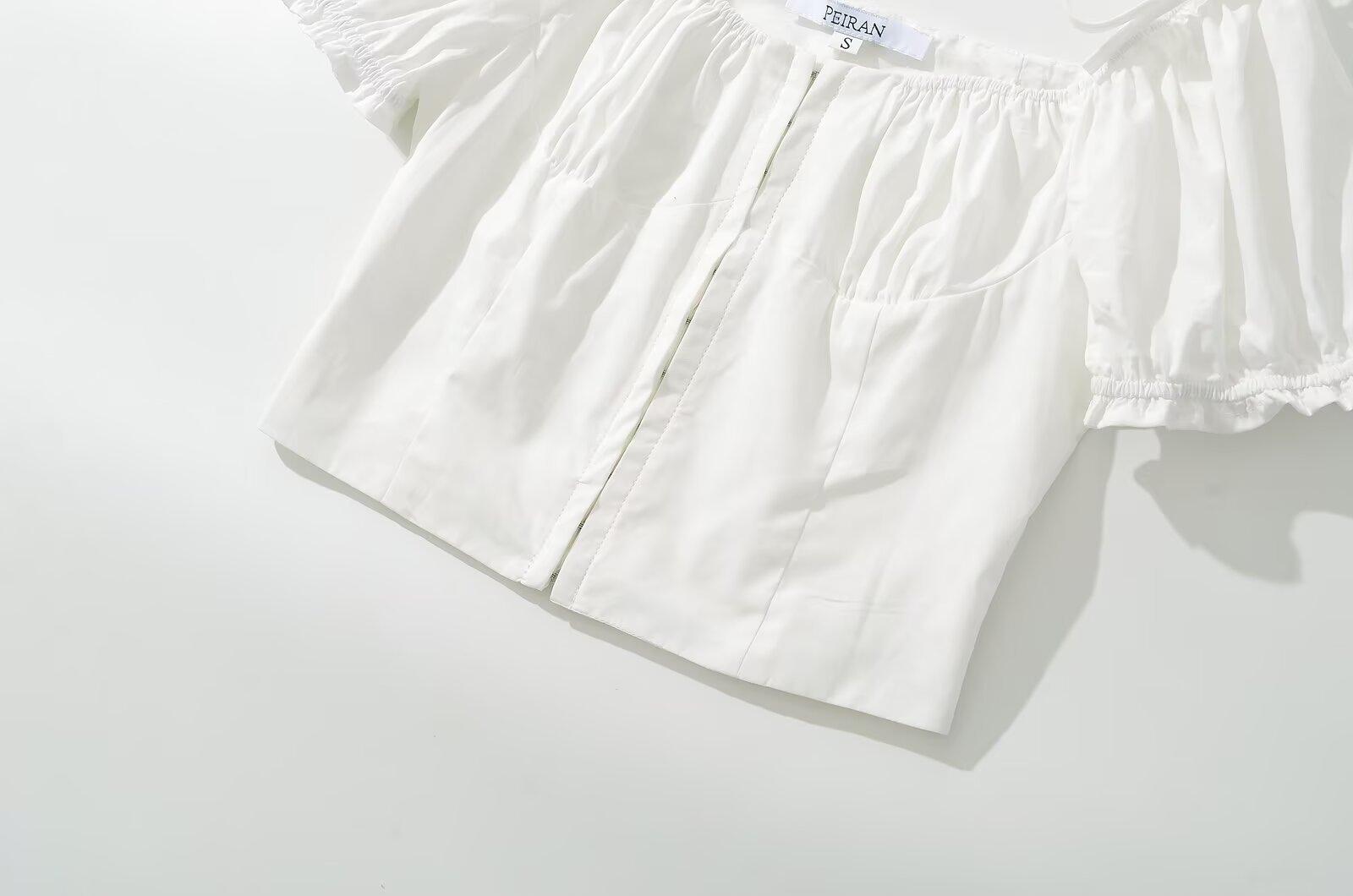 2024 Nueva Ropa de Invierno para Mujer Estilo Europeo y Americano Moda Sencilla Versátil Cuello Cuadrado Top Blanco de Manga Corta