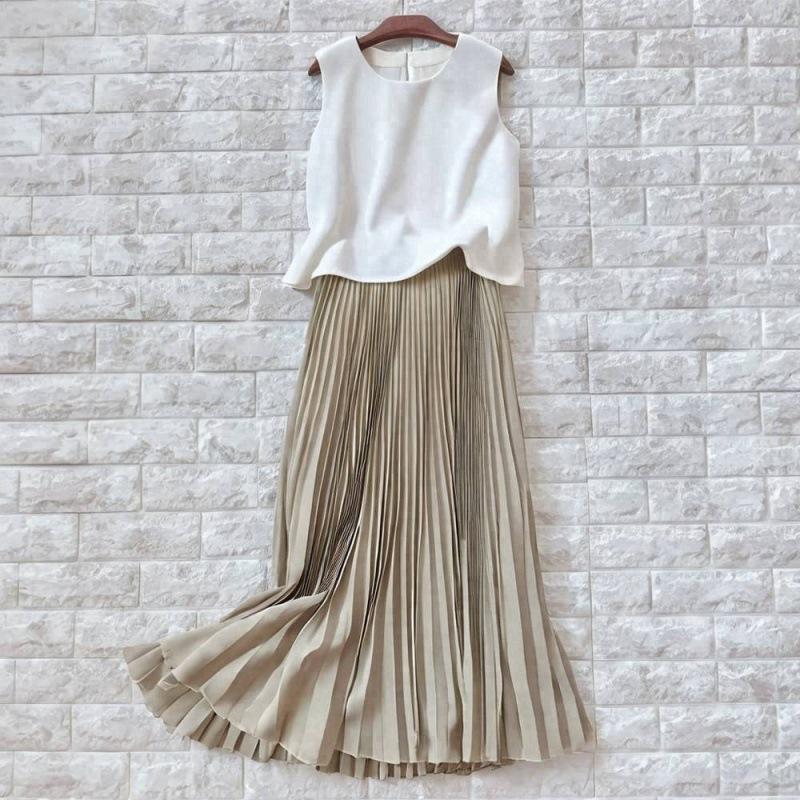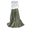 Coreano y Japonés En Stock 2025 Top sin Mangas de Cuello Redondo con Falda A-Line Plisada de Cintura Elástica Conjunto de Dos Piezas